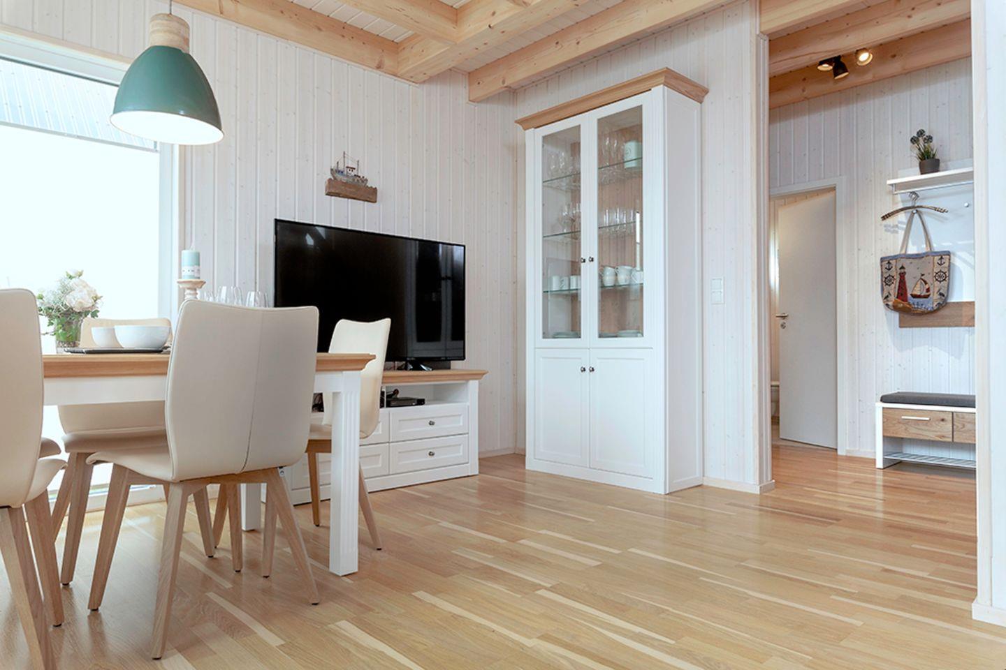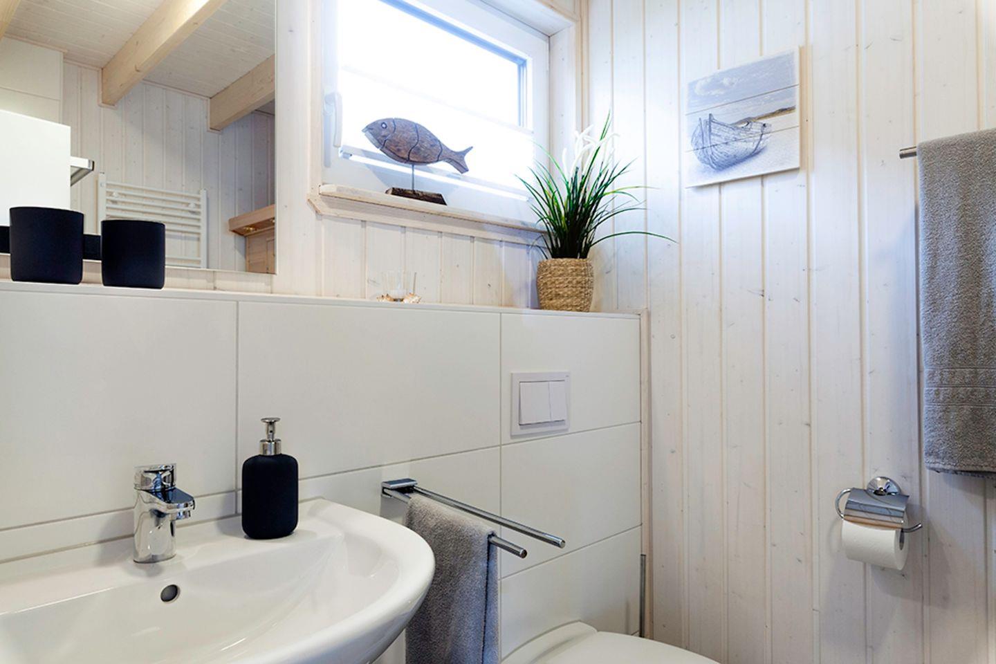Willkommen im Haus "Maranatha" in Olpenitz. Das Ferienhaus besticht durch seine hochwertige, liebevolle Einrichtung sowie der unmittelbaren Nähe zur Ostsee. Die großen Fenster sorgen für ein lichtdurchflutetes großzügiges Wohngefühl. Es verfügt über einen offenen Wohn- und Essbereich, eine Küche, zwei Schlafzimmer und zwei Bäder. Nach langen Strandspaziergängen können Sie auf dem gemütlichen Sofa vor dem Kamin entspannen und Ihre Lieblingsserie auf dem Flachbild-TV schauen. Das Sofa kann zu einer Schlafcouch (170x190cm) ausgezogen werden und eignet sich als Schlafmöglichkeit für zwei Kinder. Für die Kleinen steht ein Kinderhochstuhl bereit. Die voll ausgestattete Küche bietet alles, was Sie für einen geselligen Kochabend mit der Familie benötigen. Im ersten Obergeschoss befinden sich die zwei Schlafzimmer. Das eine ist mit einem Doppelbett (180x200cm) und einem Flachbild-TV ausgestattet, das andere verfügt über zwei Einzelbetten (je 90x200cm). Beide Schlafzimmer sind mit jeweils mit einem Kleiderschrank und Verdunkelungsmöglichkeiten ausgestattet, sodass einem erholsamen Schlaf nichts mehr im Wege steht. Ein Badezimmer befindet sich im Erdgeschoss und ist mit einer ebenerdigen Dusche und dem Highlight: einer Infrarot-Sauna ausgestattet. Hier können Sie sich an kalten Tagen aufwärmen und entspannen! Das andere Badezimmer befindet sich im Obergeschoss und bietet eine Duschwanne und einen Föhn. An sonnigen Tagen können Sie es sich auf der möblierten Terrasse gemütlich machen. In dem Strandkorb können Sie ihre Urlaubstage genießen und an lauen Sommerabenden mit der Familie die Tage auf der Terrasse ausklingen lassen. Das Ferienhaus ist für maximal vier Erwachsene und zwei Kinder vorgesehen. Ihre Fellnasen können Sie gerne mitbringen! Für Ihren PKW ist ein Stellplatz vor dem Haus zur Verfügung. Im abschließbaren Fahrradschuppen können Sie Ihre mitgebrachten oder ausgeliehenen Fahrräder sicher abstellen. Das Haus ist für 4 Erwachsene und 2 Kinder geeignet.