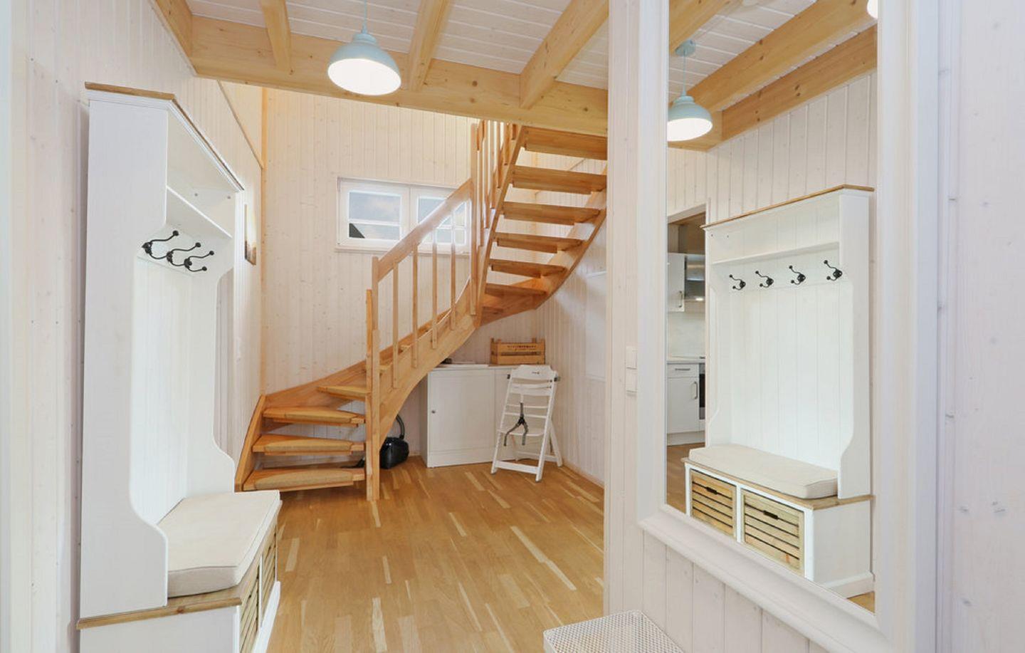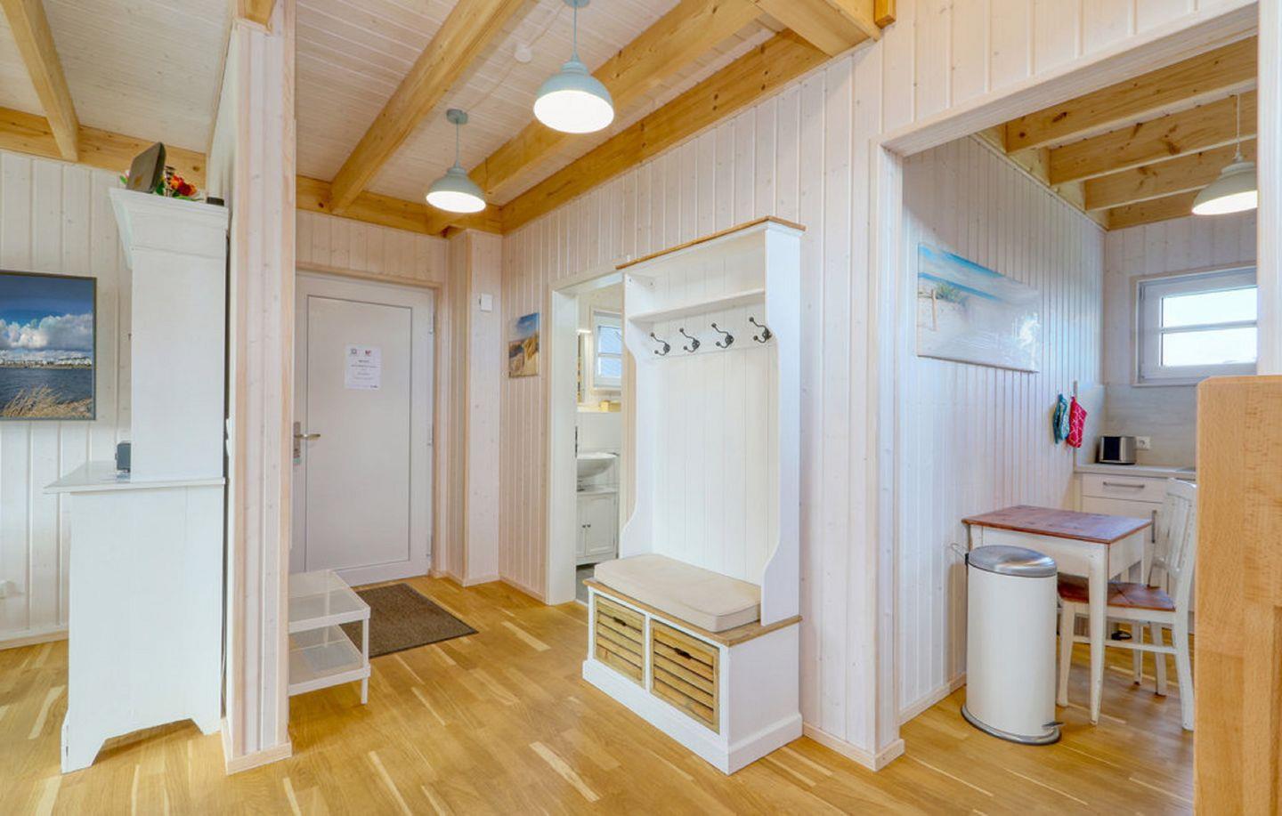 Das Haus verfügt über einen offenen Wohn- und Essbereich, eine Küche, zwei Schlafzimmer und zwei Bäder. Das Schlafsofa ist nur 1.60m breit für 2 Kinder. Die Küche ist voll ausgestattet. Die zwei Schlafzimmer bieten 1 Doppelbett und 2 Einzelbetten. Die Bäder verfügen über 1 Dusche und eine Badewanne mit Duschwand, sowie eine Infrarot-Sauna. Für Ihre PKWs stehen zwei Stellplätze vor dem Haus zur Verfügung.