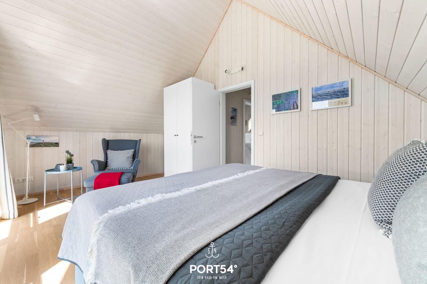 Das Haus verfügt über einen offenen Wohn- und Essbereich, eine Küche, zwei Schlafzimmer und zwei Bäder. Das Schlafsofa ist nur 1.40m breit für 2 Kinder. Die Küche ist voll ausgestattet. Die zwei Schlafzimmer bieten 1 Doppelbett und 2 Einzelbetten. Die Bäder verfügen über 1 Dusche und eine Infrarot-Sauna, sowie 1 Badewanne. Für Ihren PKW ist ein Stellplatz mit E-Ladesäule vor dem Haus. Im abschließbaren Fahrradschuppen können Sie Ihre mitgebrachten oder geliehenen Fahrräder abstellen.