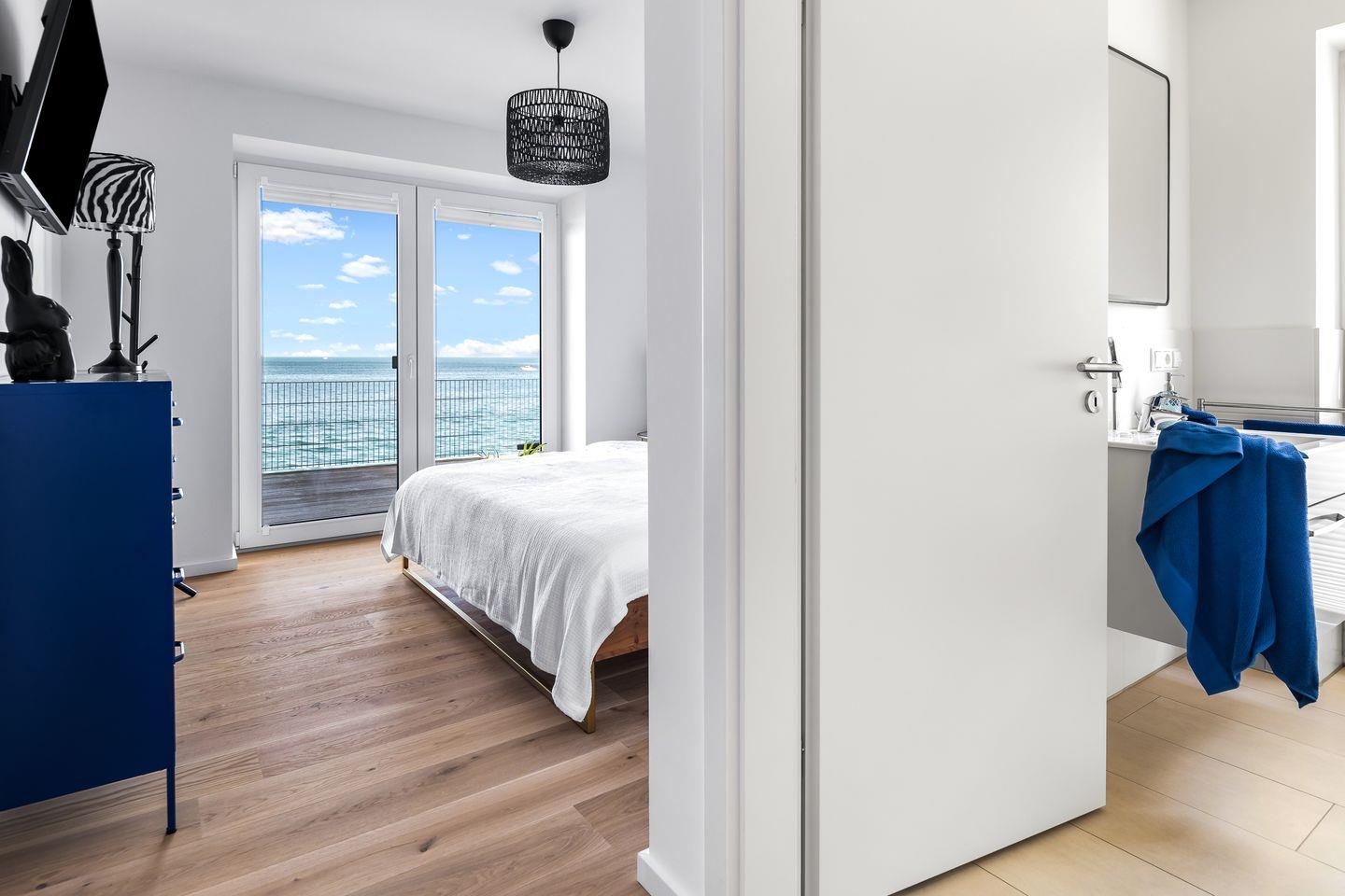 Moderne Ferienwohnung Blue Sea mit Sauna und freiem Ostseeblick, nur wenige Schritte vom Strand entfernt.