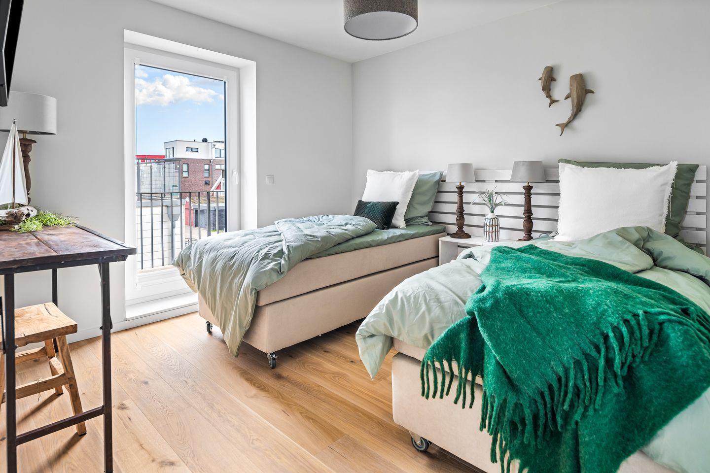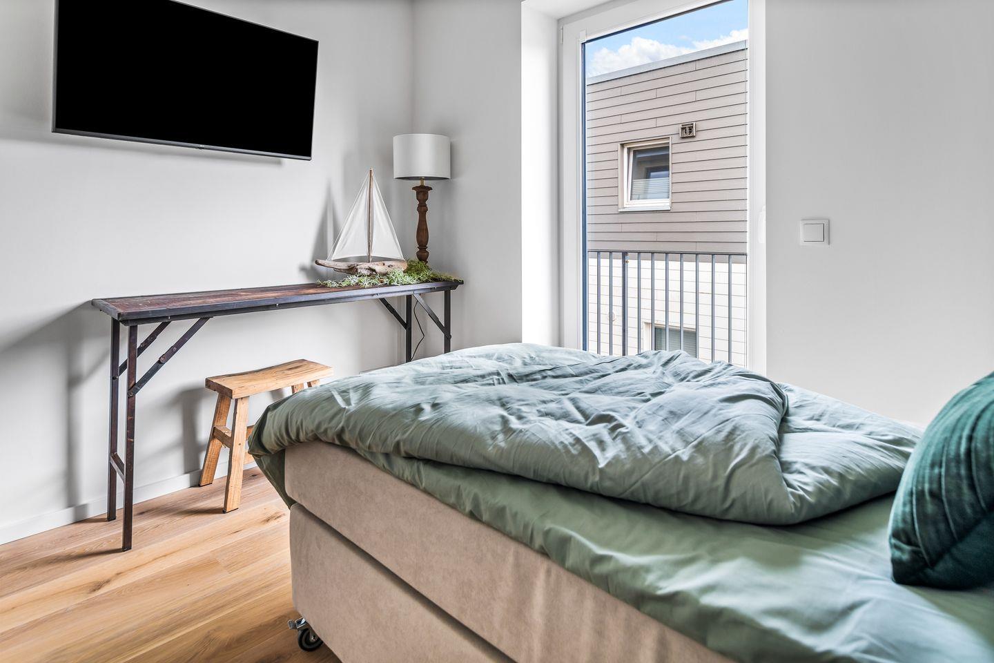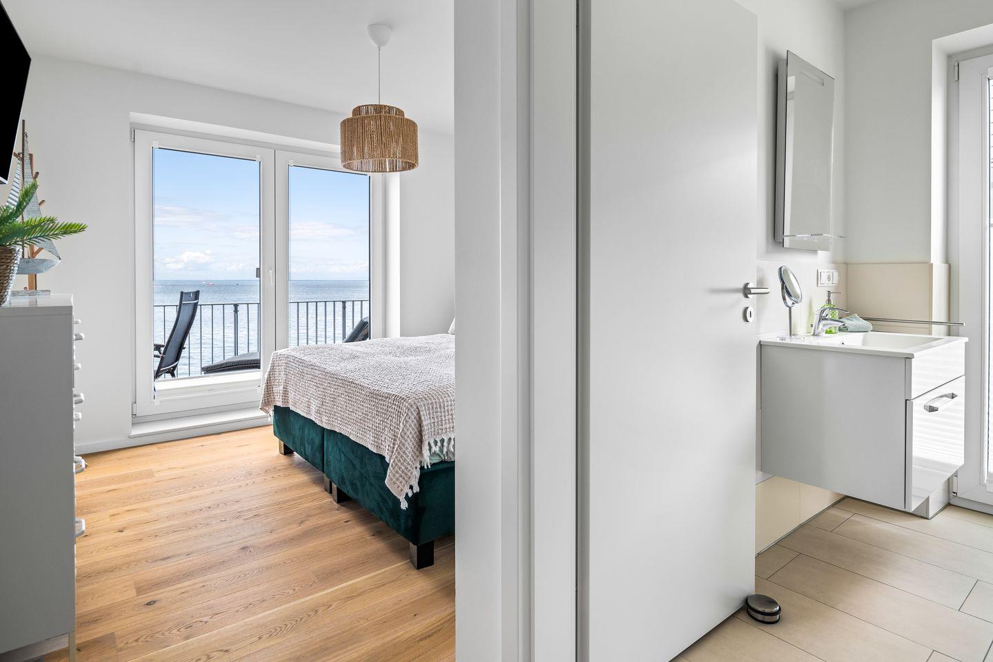 Entspannung pur nach einem Tag am nahegelegenen Strand sorgt die private finnische Sauna für wohlige Entspannung. Zwei Balkone laden zum Sonnenbaden und Entspannen ein, und ein Strandkorb sowie hochwertige Balkonmöbel bieten perfekte Bedingungen, um die maritime Atmosphäre zu genießen.
