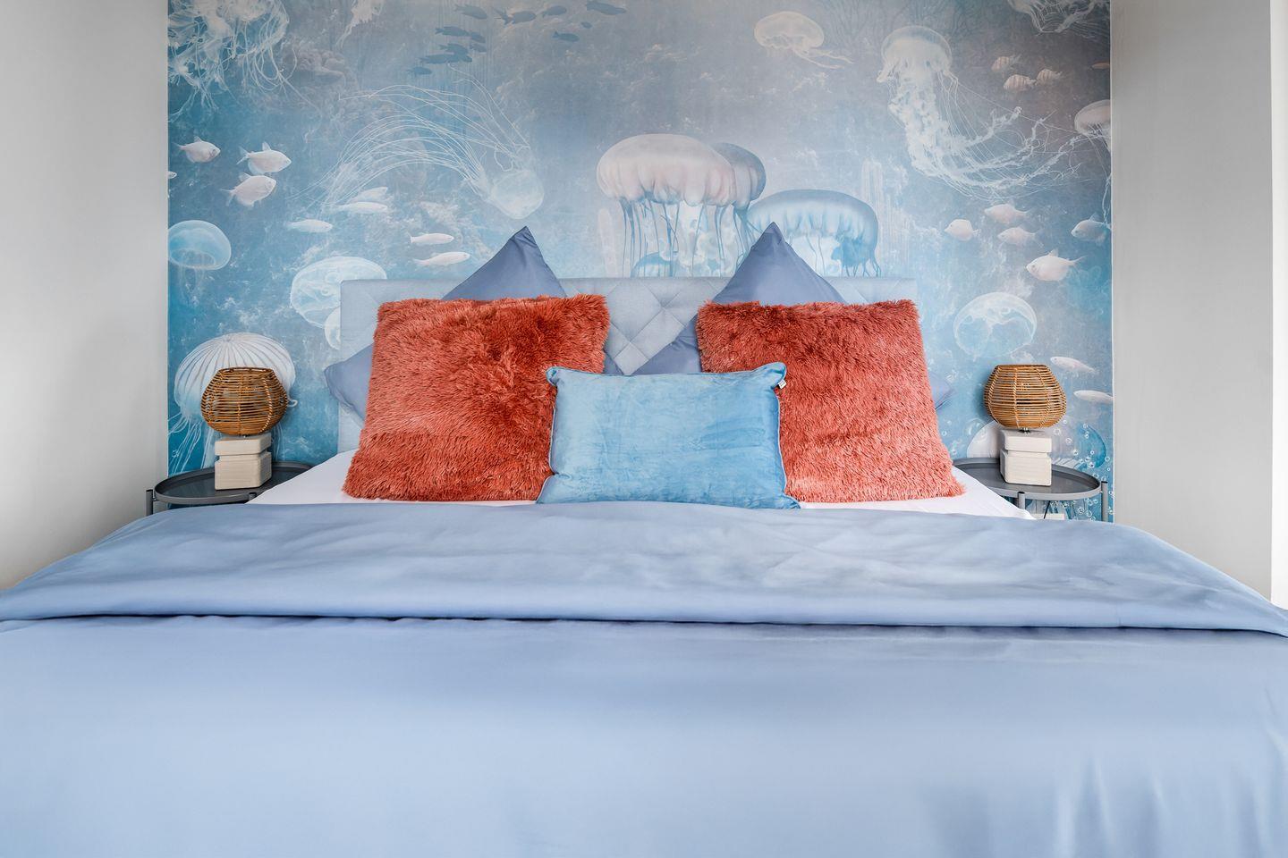 Auf 60 m² bietet "Blue Sky" eine einzigartige Atmosphäre aus modernem Loftcharme und gemütlicher Wohnlichkeit. Das offene Raumkonzept mit Schiebetüren sorgt für flexible Raumnutzung, während die voll ausgestattete Küche nahtlos in den Wohn- und Essbereich übergeht. Ein kommunikativer, runder Esstisch und eine gemütliche Sitzecke bieten ideale Voraussetzungen für entspannte Stunden mit Blick aufs Meer.