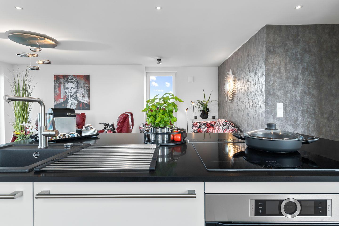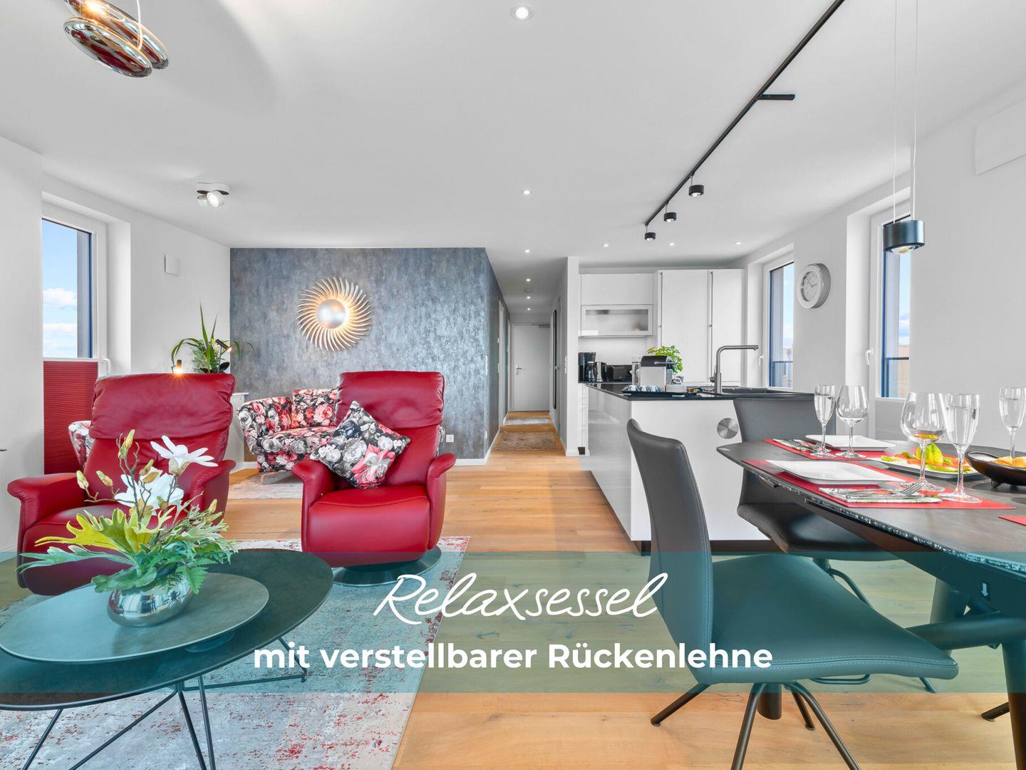 Entspannen Sie in bequemen Relax-Sesseln, genießen Sie Mahlzeiten in der gemütlichen Essecke oder zaubern Sie kulinarische Köstlichkeiten in der offenen Profiküche. Die bodentiefen Fenster bieten Ihnen einen atemberaubenden Blick auf die Ostsee, Schleimünde, Olpenitz-Strand und den Hafen.