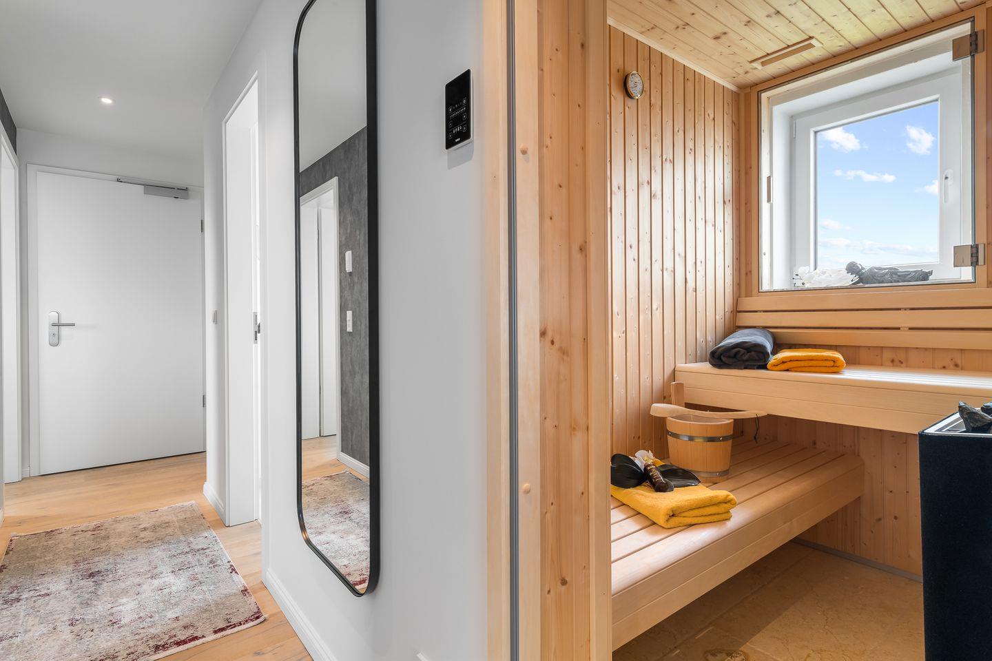 Nach einem erlebnisreichen Tag können Sie sich in der Tageslichtsauna mit Blick auf die Ostsee und den Leuchtturm von Schleimünde entspannen. Eine vielfältige Auswahl an Büchern und Spielen steht ebenfalls zur Verfügung.