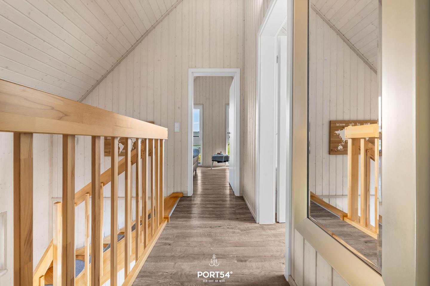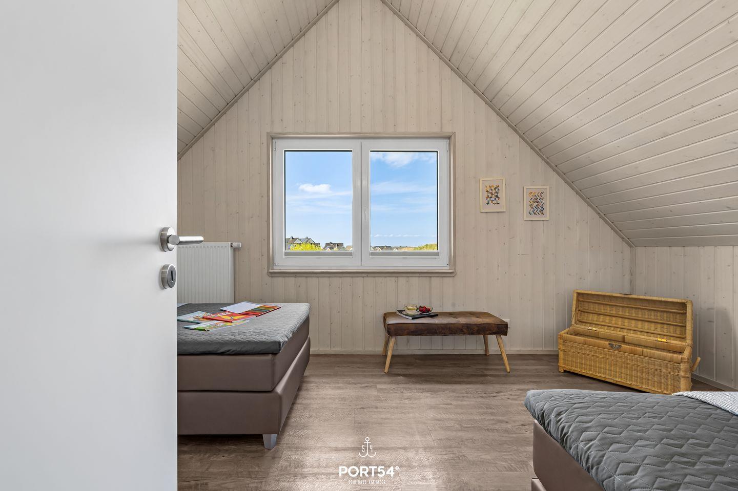 Im Obergeschoss befinden sich zwei Schlafzimmer. Eines der beiden Zimmer bietet Dir ein gemütliches Boxspringbett (180x200 cm) und einen Schrank, das zweite Schlafzimmer ist mit zwei Boxspringbetten (je 100x200 cm) sowie ebenfalls einem Schrank ausgestattet. Beide Zimmer verfügen über Insektenschutz und Verdunkelungsmöglichkeiten, sodass einem erholsamen Schlaf nichts mehr im Wege steht.
