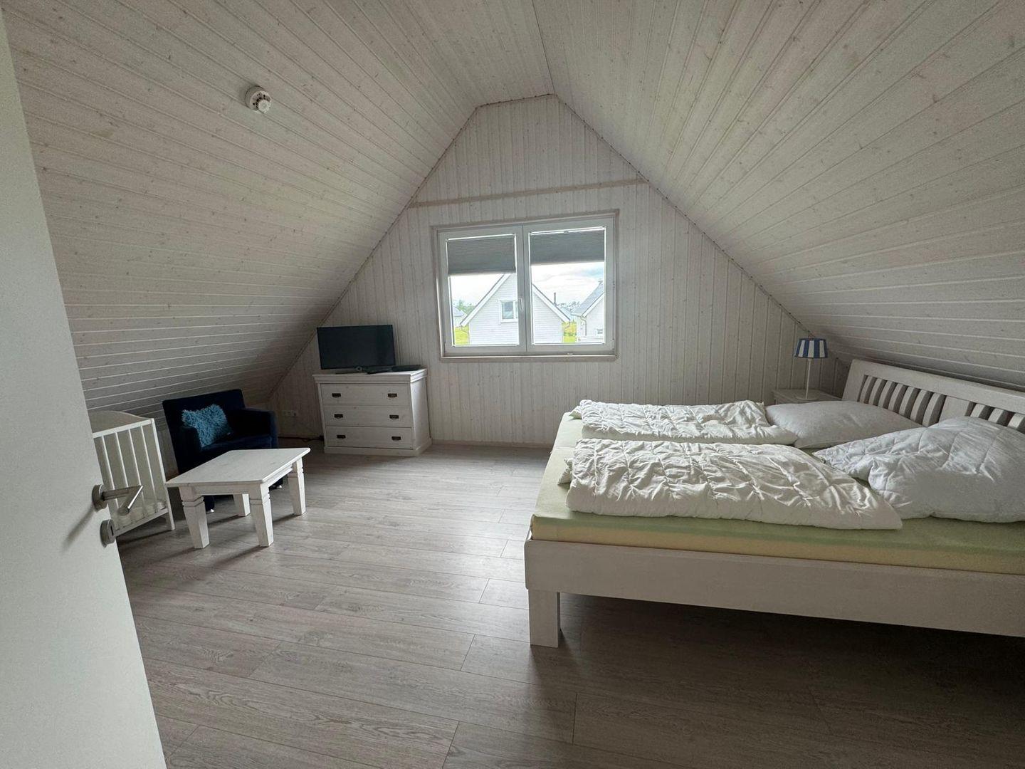 Das Haus verfügt über einen offenen Wohn- und Essbereich mit Kamin und einer voll ausgestatteteten Küchenzeile, drei Schlafzimmer und zwei Bäder. Die Küche ist voll ausgestattet. Die drei Schlafzimmer bieten zwei Doppelbetten und zwei Einzelbetten. Das Schlafsofa ermöglicht zwei weitere Schlafplätze. Die Bäder sind mit einer Dusche, einer Badewanne und einer Infrarot-Sauna ausgestattet. Ihre Fellnasen können Sie gerne mitbringen! Für Ihre PKW stehen zwei Stellplätze vor dem Haus zur Verfügung.
