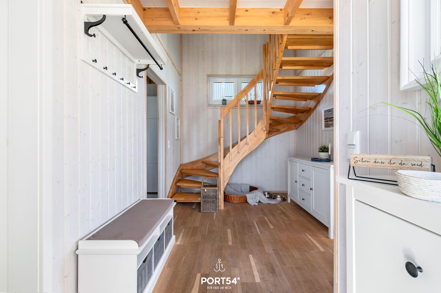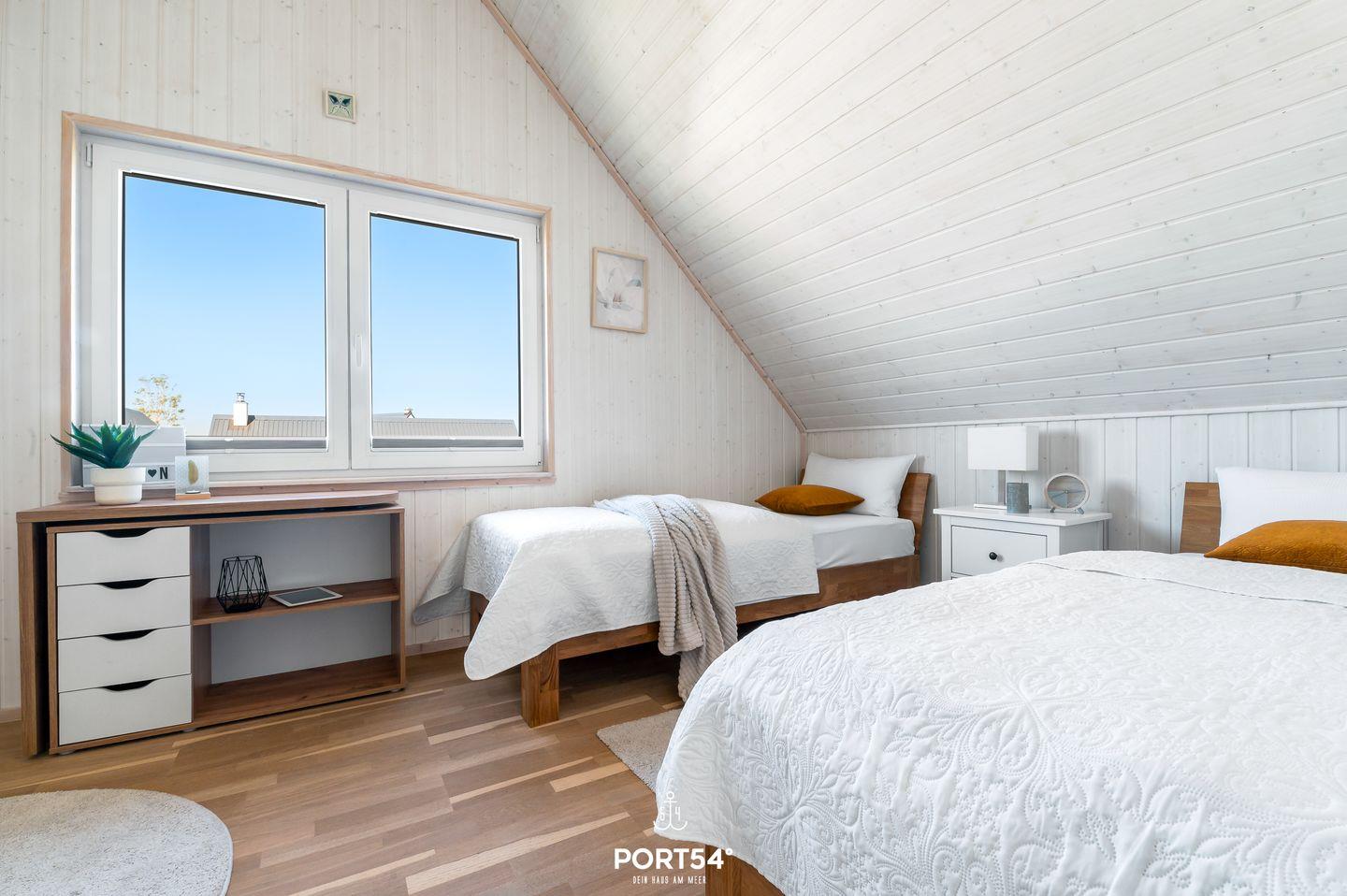 Herzlich willkommen im "Ahoi Skipper"! Das Haus verfügt über einen offenen Wohn- und Essbereich, eine Küche, zwei Schlafzimmer und zwei Bäder. Es besticht durch seine Lage im Grünen und der Nähe zur Ostsee. Die großen Fenster sorgen für ein lichtdurchflutetes, großzügiges Wohngefühl. Nach langen Strandspaziergängen können Sie auf dem gemütlichen Sofa vor dem Kamin entspannen und Ihre Lieblingsserie auf dem Flachbild-TV schauen. Das Sofa kann zu einer Schlafcouch (200x200cm) ausgezogen werden und so ergibt sich ein weiterer Schlafplatz. Für die Kleinen steht ein Kinderhochstuhl bereit. Die Küche bietet alles, was Sie für einen geselligen Kochabend mit der Familie benötigen. Im ersten Obergeschoss befinden sich die zwei Schlafzimmer: Das eine ist mit einem Doppelbett (180x200cm) und einem Flachbild-TV ausgestattet, das andere verfügt über zwei Einzelbetten (je 90x200cm). Hier steht Ihnen ein Schlafsofa (90x200cm) zur Verfügung. Bei Bedarf lässt sich die Schublade des Schlafsofas heraus ziehen und bietet eine weitere Schlafmöglichkeit (ebenfalls 90x200cm). Für erholsame Nächte sind beide Schlafzimmer mit Verdunkelungsmöglichkeiten ausgestattet. Ein Badezimmer befindet sich im Erdgeschoss und ist mit einer ebenerdigen Dusche, WC, einer Handtuchheizung und dem Highlight, einer Infrarot-Sauna. Hier können Sie sich an kalten Tagen aufwärmen und entspannen. Ein weiteres Badezimmer im ersten Obergeschoss bietet eine Duschwanne, ebenfalls eine Handtuchheizung und einen Föhn. An sonnigen Tagen können Sie es sich auf der möblierten Terrasse gemütlich machen. Sie können so Ihre Urlaubstage genießen und an lauen Sommerabenden mit der Familie die Tage auf der Terrasse ausklingen lassen. Ihre Fellnasen gehören zur Familie und sind bei uns nicht nur geduldet, sondern herzlich Willkommen. Für Ihren PKW steht ein Stellplatz vor dem Haus zur Verfügung. Das Haus wird für 4 Erwachsene und 2 Kinder angeboten