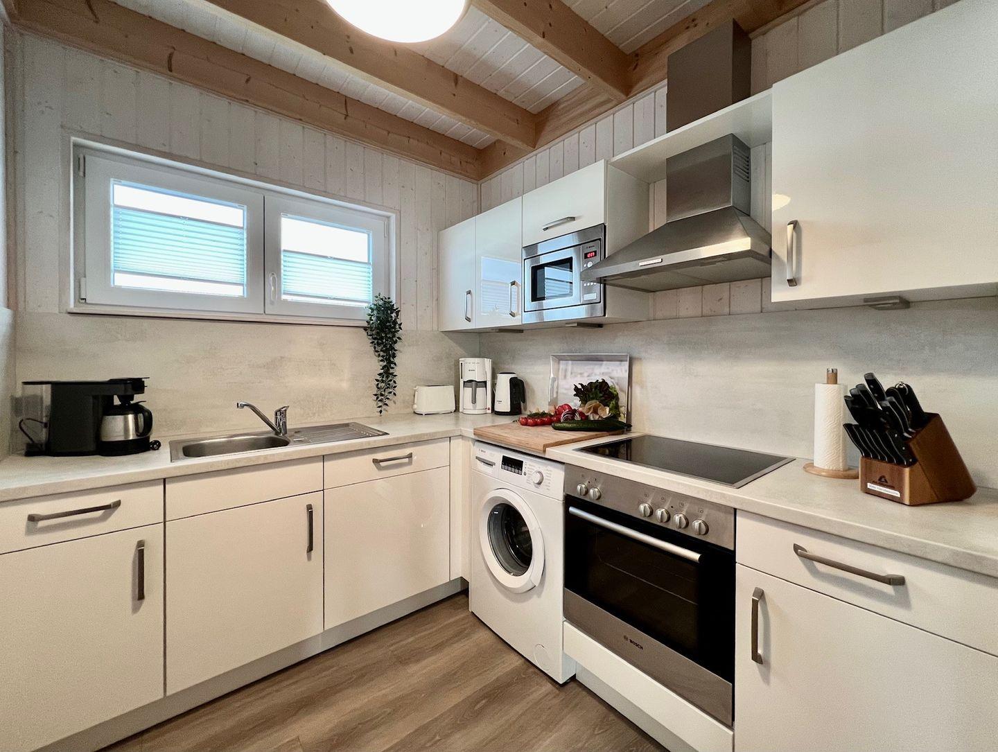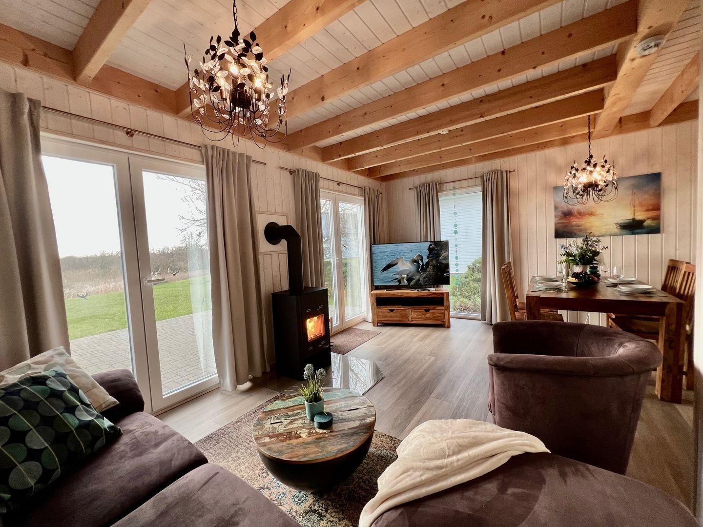 Die großen Fenster sorgen für ein lichtdurchflutetes, großzügiges Wohngefühl. Im Wohnbereich kannst Du es Dir auf dem Sofa gemütlich machen, ein gutes Buch lesen oder auf dem Flachbild-TV Deine Lieblingsserie schauen. Die Couch lässt sich mit wenigen Handgriffen zu einem Schlafsofa umfunktionieren, sodass ein weiterer Schlafplatz für ein Kind geschaffen werden kann. An kühlen Abenden verbreitet der Kamin eine wohlige Wärme.
