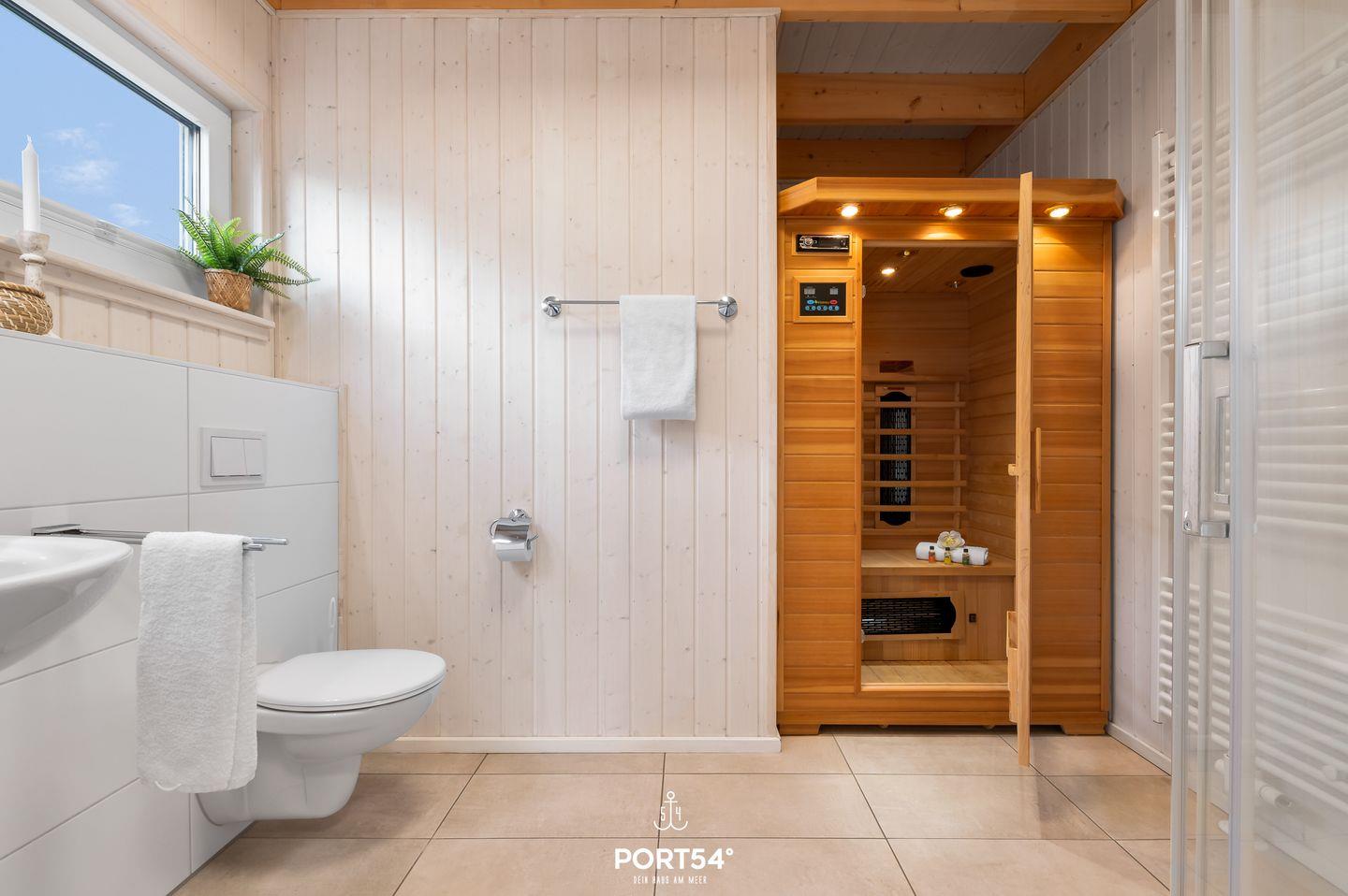 Die Küche bietet alles, um Dich und Deine Familie kulinarisch zu verwöhnen. Ein Bad rundet das Erdgeschoss ab. Das Badezimmer verfügt über ein Fenster mit Sichtschutz, eine Dusche, eine Handtuchheizung und als besonderes Highlight eine Infrarotkabine. Hier kannst Du Dich nach langen Strandspaziergängen aufwärmen und entspannen.