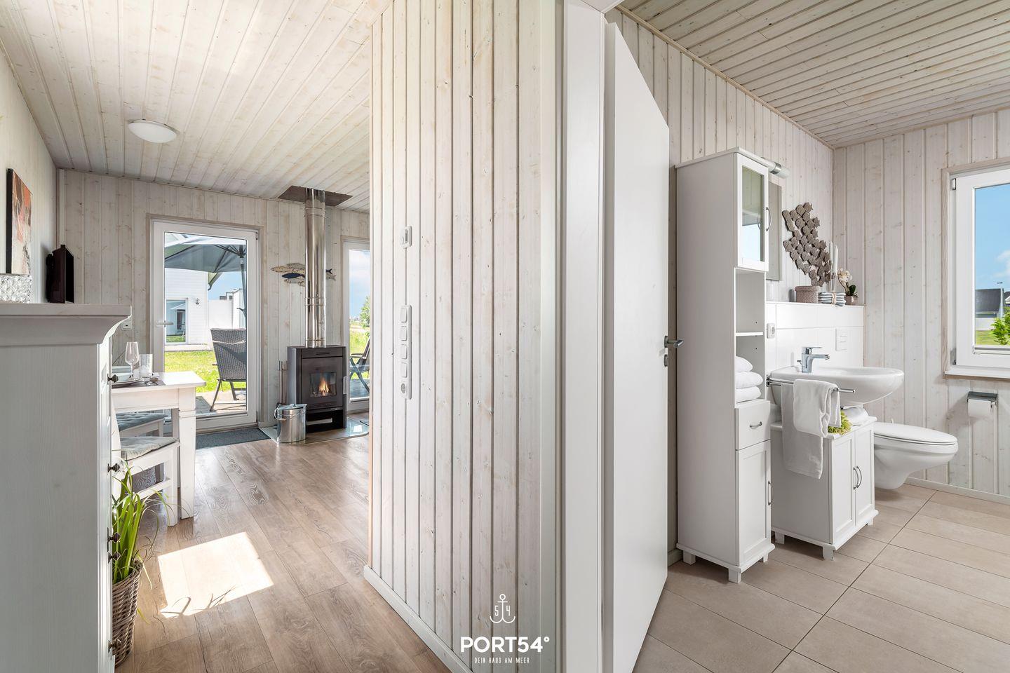 Herzlich Willkommen in Ihrem Ferienhaus "Lilleby" in Olpenitz. Ihr freistehendes, 50m² großes Haus besticht durch seine Lage im Grünen und der Nähe zur Ostsee. Es verfügt über einen offenen Wohn- und Essbereich, ein Bad und ein Schlafzimmer. Genießen Sie die Abende im gemütlich eingerichteten Wohnbereich vor dem Kamin mit einem guten Buch oder schauen Sie Ihre Lieblingsserie auf dem Flachbild-TV. Die vollausgestattete Küchenecke lässt keine Wünsche offen. Hier können Sie sich nicht nur kulinarisch verwöhnen, durch den vorhandenen Soda-Streamer können Sie auch Ihre Getränke selbst zubereiten. Das Schlafzimmer ist mit einem gemütlichen Boxspringbett (180x200cm), einem Kleiderschrank sowie einer Kommode ausgestattet. Die Fenster verfügen über eine Verdunkelungsmöglichkeit. Einem erholsamen Schlaf steht somit nichts im Wege. Das Bad bietet eine große ebenerdige Dusche, ein WC, ein Waschbecken und als Highlight, eine Infrarotkabine. Hier können Sie sich nach langen Strandspaziergängen aufwärmen und entspannen. Laue Sommerabende können Sie auf der möblierten Terrasse genießen. Ein Holzkohlegrill steht zur Verfügung, sodass Sie gern einen gemütlichen Grillabend ausrichten können. Für Ihre mitgebrachten oder beim Tourguide gemieteten Räder steht ein abschließbarer Schuppen zur Verfügung. Auch für Ihren PKW gibt es einen Parkplatz direkt vor dem Haus. Das Ferienhaus ist für 2 Personen geeignet.