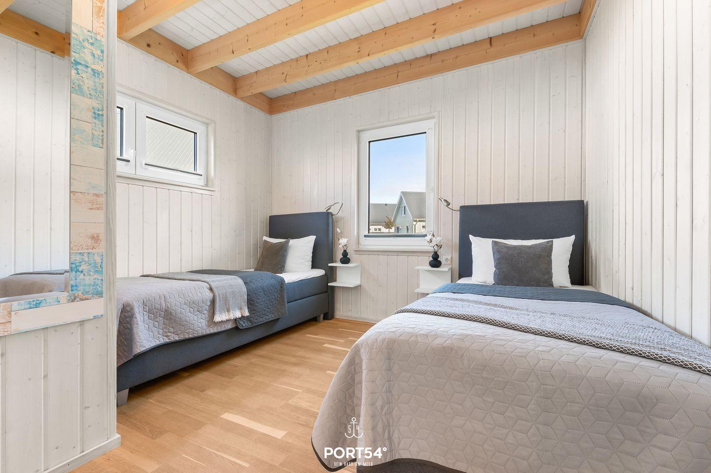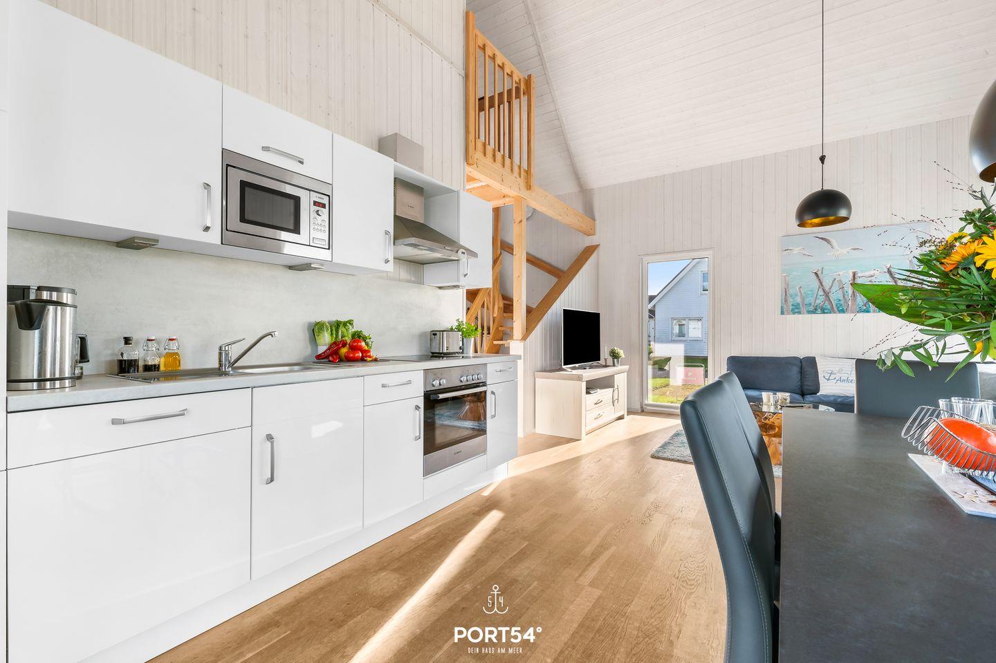 Willkommen in Ihrem perfekten Rückzugsort! Dieses freistehende Ferienhaus "Strandräuber" mit einer großzügigen Fläche von 98m² bietet Ihnen alles, was Sie für einen unvergesslichen Aufenthalt benötigen. Die offene, loftartige Bauweise schafft eine einladende Atmosphäre, in der sich Wohn- und Küchenbereich harmonisch verbinden. Große Fenster bis zum Boden lassen viel Tageslicht herein und bieten einen herrlichen Blick auf die Umgebung. Die voll ausgestattete Küchenzeile lässt keine Wünsche offen: Hier finden Sie u.a. eine Spülmaschine, Mikrowelle und ein modernes Ceranfeld, ideal für die Zubereitung köstlicher Mahlzeiten. Das Haus verfügt über drei komfortable Schlafzimmer, die Platz für bis zu sechs Personen bieten. Das erste Schlafzimmer im Erdgeschoss ist mit einem gemütlichen Boxspring-Doppelbett (180x200cm) ausgestattet, während das zweite Schlafzimmer zwei Einzelbetten (je 90x200cm) bietet. Ein drittes Schlafzimmer finden Sie im Obergeschoss. Hier werden Ihnen zwei gemütliche Einzelbetten (90x200cm), ein Schreibtisch und ein Sessel geboten. Alle Schlafzimmer sind mit Schränken, Verdunkelungsmöglichkeiten und Insektenschutz ausgestattet, sodass Sie erholsame Nächte genießen können. Zwei moderne Bäder sorgen für zusätzlichen Komfort. Im Untergeschoss erwartet Sie ein Bad mit Waschmaschine, Badewanne, Handtuchheizung und Infrarot-Sauna – perfekt für entspannende Wellness-Momente. Das Badezimmer im Obergeschoss bietet eine Dusche, ein WC und einen Handtuchheizkörper. Für Ihre mitgebrachten oder im Tourguide geliehenen Fahrräder steht ein abschließbarer Fahrradschuppen zur Verfügung, sodass Sie Ihre mitgebrachten oder im Tourguide gemieteten Fahrräder sicher unterstellen können. Die westlich ausgerichtete Terrasse lädt mit gemütlichen Outdoormöbeln, einem Holzkohlegrill und einem Sonnenschirm zum Verweilen im Freien ein – ideal für gesellige Abende mit Familie und Freunden. Zwei Parkplätze direkt vor dem Haus runden das Angebot ab. Genießen Sie Ihren Aufenthalt in diesem modernen Ferienhaus, das Ihnen alle Annehmlichkeiten für einen entspannten Urlaub bietet!