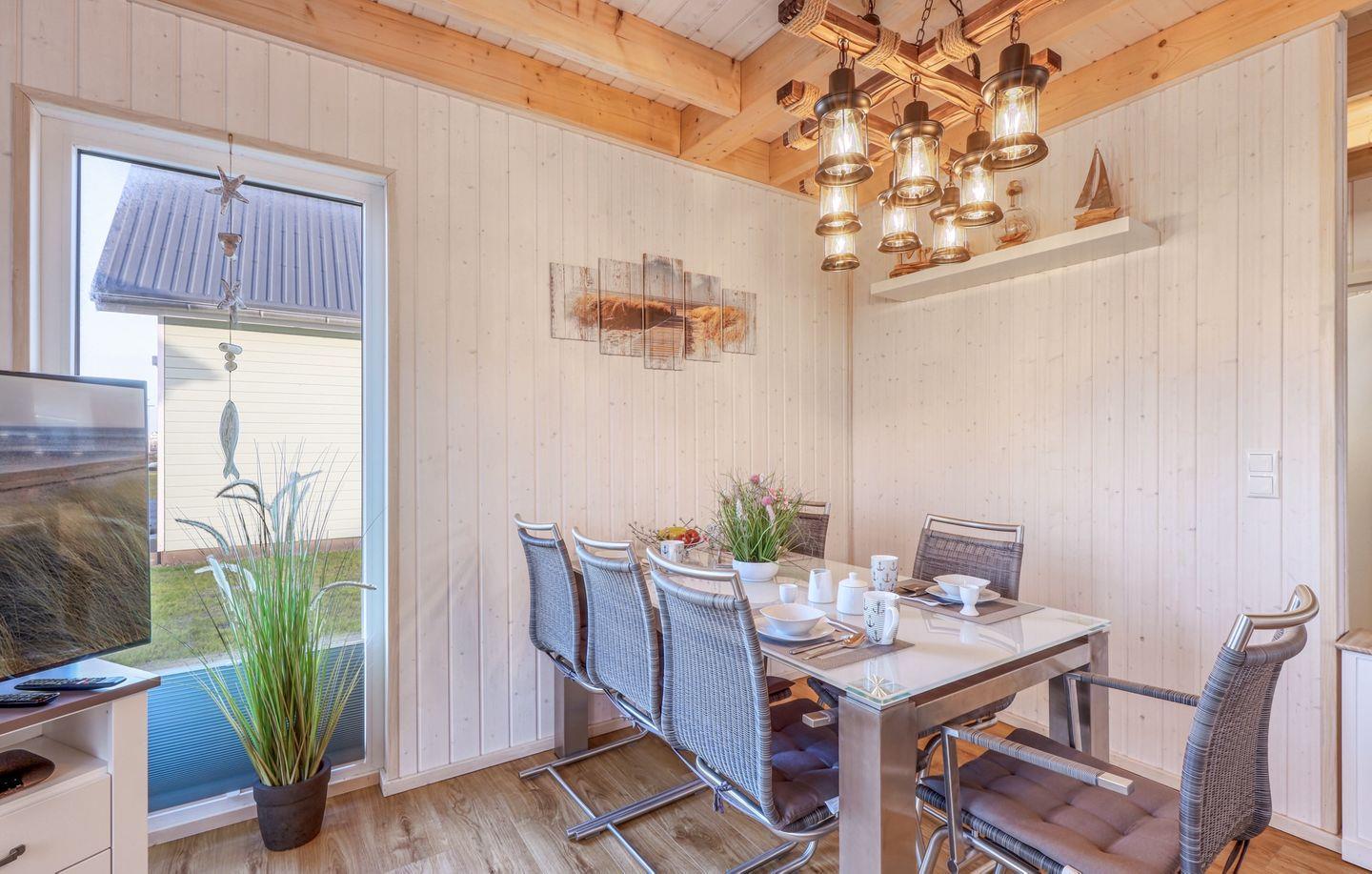 Willkommen in Deinem freistehenden 80 m² großen Ferienhaus. Das Haus verfügt über einen großen Wohn- und Essbereich, eine vollausgestattete Küche, 2 Bäder und 2 Schlafzimmer. Eines davon bietet ein gemütliches Doppelbett (180x200 cm), das weitere 2 Einzelbetten (90x200 cm). Ein Bad bietet eine Dusche und eine Infrarotkabine, das andere Bad ist mit einer Badewanne ausgestattet. Die Terrasse ist möbliert. Vor dem Haus steht Dir ein Parkplatz zur Verfügung.