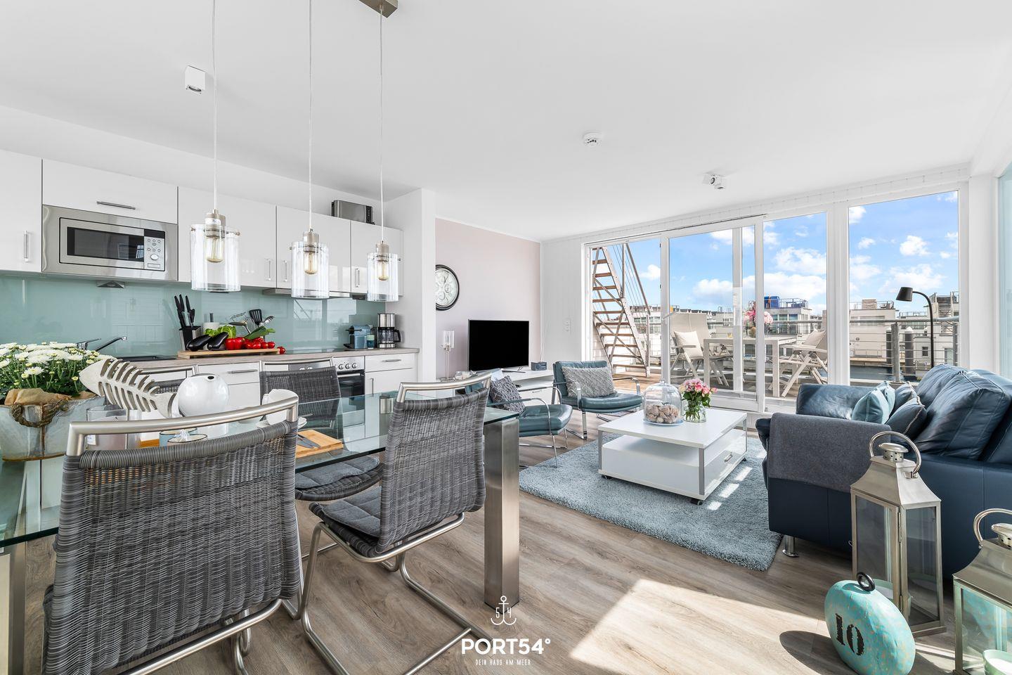 Das schwimmende Ferienhaus "Achtern Diek" für bis zu 4 Personen bietet eine Dachterrasse mit 360°-Panoramablick über die Schlei, Ostsee und das Hafenbecken des OstseeResorts Olpenitz. Im Innen gibt es einen hellen Wohn- und Essbereich mit Flachbildfernseher und eine voll ausgestattete Küche. Das Bad bietet eine Dusche und eine finnische-Sauna sorgt für Wellness. Die Schlafzimmer verfügen über ein Doppelbett und zwei Einzelbetten.