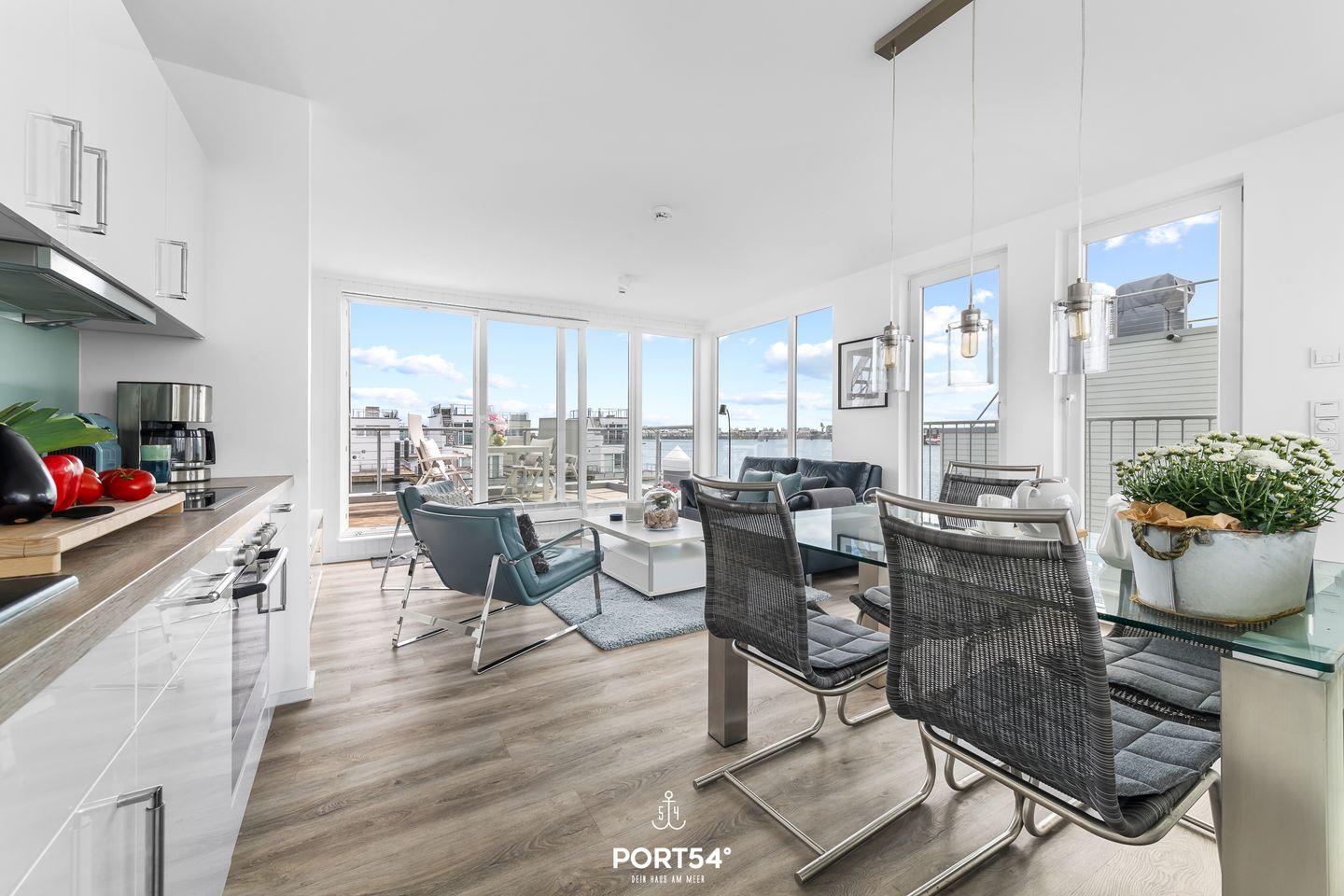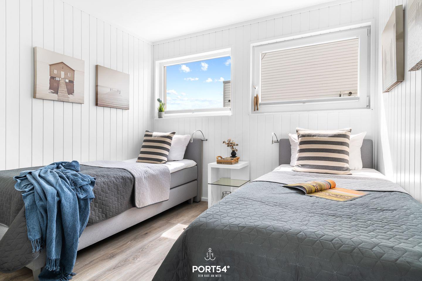 Willkommen in Ihrem schwimmenden Ferienhaus in Olpenitz – ein einzigartiges Refugium für 4 Personen mit direktem Blick auf die Hafeneinfahrt und die Ostsee. Genießen Sie den Luxus und Komfort dieses exklusiven Domizils, das Ihnen ein unvergessliches Urlaubserlebnis auf dem Wasser bietet. Das modern gestaltete Ferienhaus verfügt über bodentiefe Fensterfronten, die für ein lichtdurchflutetes Ambiente und spektakuläre Ausblicke sorgen. Im Erdgeschoss befinden sich zwei gemütliche Schlafzimmer – eines mit komfortablem Doppelbett, das andere mit zwei Einzelbetten. Das Badezimmer überzeugt mit einer bodengleichen Dusche, einer großen Spiegelfront und stilvoller Ausstattung. Für erholsame Stunden steht Ihnen eine finnische Sauna zur Verfügung. Im Obergeschoss erwartet Sie die bestens ausgestattete Küche mit Essbereich, offen gestaltet zum großzügigen Wohnbereich mit gemütlicher Sofalandschaft. Drei Terrassen laden zum Verweilen ein, darunter eine beeindruckende 30m² große Dachterrasse mit 360-Grad-Schleiblick. Für kulinarische Genüsse sorgt ein Weber Elektrogrill, während der exklusive Bootsliegeplatz Wassersportlern und Bootsbesitzern besonderen Komfort bietet. Zusätzliche Sitzgelegenheiten sind durch zwei extra Bänke sowie eine spezielle „Sundowner Bank“ am Eingang gegeben. Technische Highlights wie dimmbare Beleuchtung, Telekom Home Entertainment und ein Internetradio runden das Angebot ab. Zwei Außenstellplätze stehen Ihnen während Ihres Aufenthalts zur Verfügung.