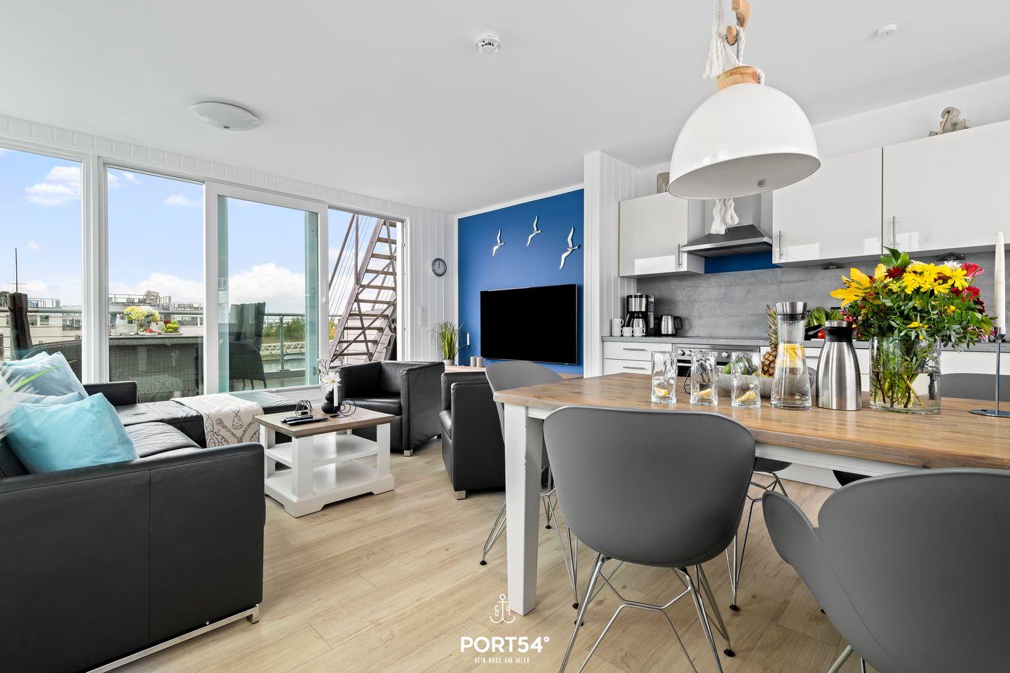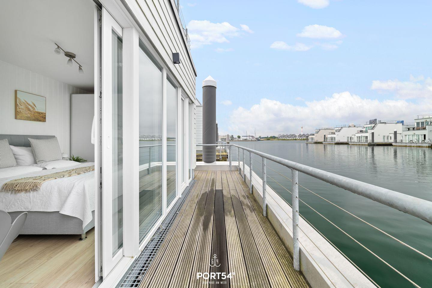 Erleben Sie das schwimmende Ferienhaus Ankerlicht mit Sauna, Dachterrasse und 360° Wasserblick an der Ostsee.