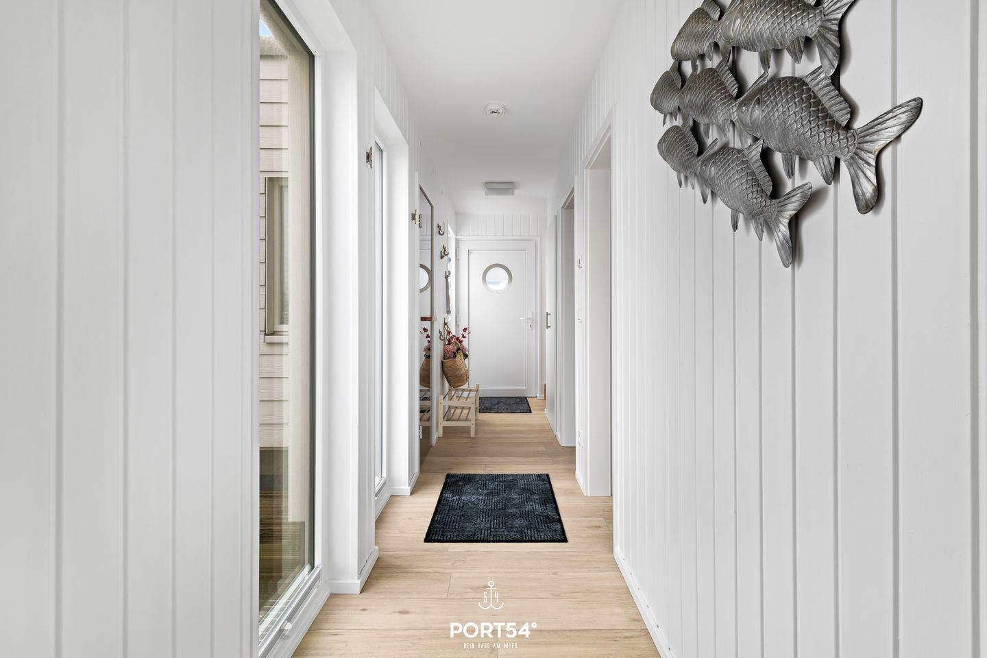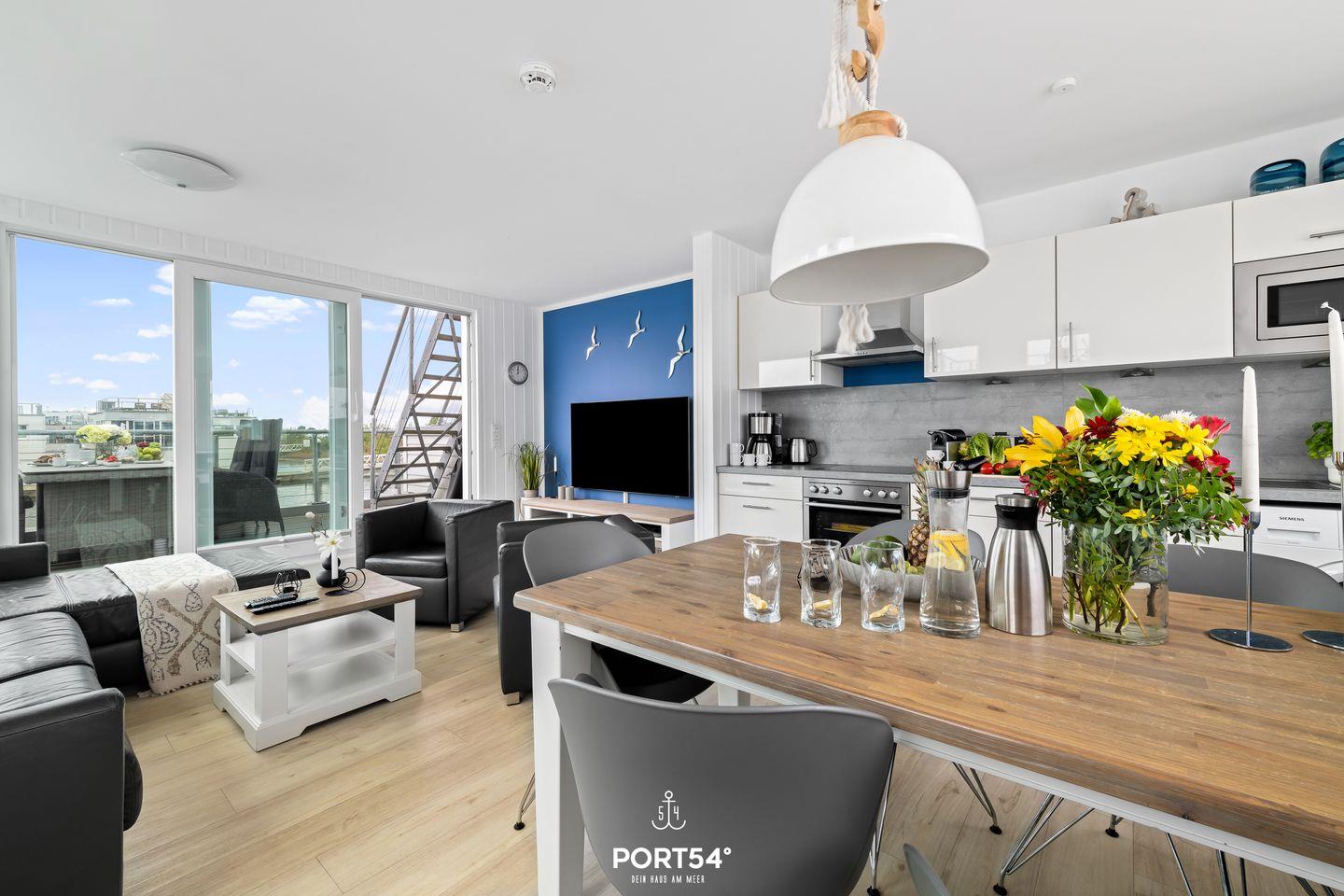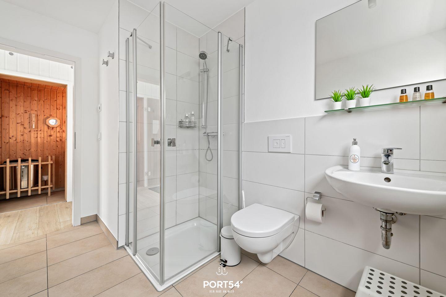 Das schwimmende Ferienhaus "Ankerlicht" in Olpenitz bietet auf großzügigen 97m² ein exklusives Urlaubserlebnis direkt an der Ostsee. Das Haus besticht durch seinen modernen Stil und eine hochwertige Ausstattung, die keine Wünsche offen lässt. Der offene Wohn- und Essbereich ist der perfekte Ort, um gemeinsame Stunden zu verbringen. Ausgestattet mit einem gemütlichen Sofa und einem Flachbild-TV, lädt der Wohnbereich zum Entspannen ein. Der angrenzende Essbereich bietet Platz für ausgedehnte Mahlzeiten, die in der voll ausgestatteten Küche zubereitet werden können. Die zwei komfortablen Schlafzimmer befinden sich im Erdgeschoss des schwimmenden Hauses. Das erste Schlafzimmer ist mit einem luxuriösen Boxspring-Doppelbett (180x200cm) ausgestattet, das für einen erholsamen Schlaf sorgt. Im zweiten Schlafzimmer befinden sich zwei Boxspring-Einzelbetten (90x200cm), die ebenfalls hohen Schlafkomfort bieten. Beide Schlafzimmer sind zudem mit Verdunkelungsmöglichkeiten und mit eigenen TV-Geräten versehen, sodass Sie auch hier beste Unterhaltung genießen können. Das Badezimmer sorgt mit der bodengleichen Dusche für höchsten Komfort und ist besonders angenehm nach einem Tag am Strand. Ein besonderes Highlight ist die finnische Sauna. Diese Sauna bietet Ihnen die Möglichkeit, ganz privat und ohne Einschränkungen ein wohltuendes Saunabad zu genießen. Das Ferienhaus "Ankerlicht" bietet Ihnen gleich zwei Terrassen - doch das Highlight ist zweifellos die großzügige Dachterrasse, die einen unvergleichlichen Blick auf das Wasser bietet. Diese private Oase ist der perfekte Ort, um die Ruhe und Schönheit der Umgebung in vollen Zügen zu genießen. Ausgestattet mit einem gemütlichen Strandkorb, lädt die Dachterrasse dazu ein, sich zurückzulehnen und den Alltag hinter sich zu lassen. Hier können Sie morgens bei einer Tasse Kaffee den Sonnenaufgang über dem Meer bewundern oder abends bei einem Glas Wein den Tag entspannt ausklingen lassen. Der Panorama-Wasserblick, den Sie von hier aus haben, ist einfach atemberaubend und lässt Sie die Weite und Freiheit der Ostsee spüren. Für unsere kleinen Gäste halten wir ein Kinderreisebett, einen Hochstuhl, einen Kindertritthocker, ein Treppenschutzgitter im 1. Obergeschoss und zwei Schwimmwesten bereit. Auch ein Bollerwagen für Ihre Strandausflüge steht bereit. Für Ihren PKW befindet sich vor der Steg-Anlage ein kostenloser Stellplatz, alternativ können Sie auch mit Ihrem Boot anreisen und dies am Haus vertäuen.
