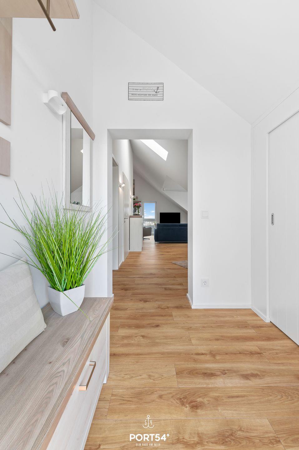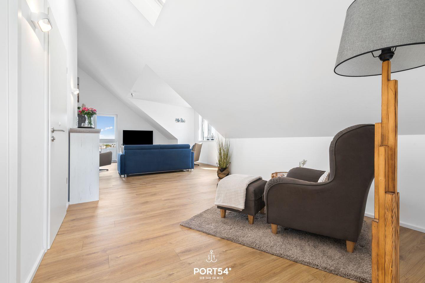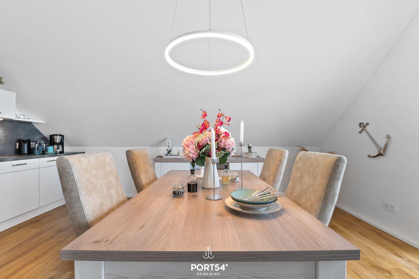 Genießen Sie in der Ferienwohnung "Hafenperle" einen unvergesslichen Panorama-Blick über das Hafenbecken von Olpenitz, den Yachthafen von Maasholm und die Schlei! Auf knapp 90m² bietet sie Ihnen ein Schlafzimmer mit einem Doppelbett, einen offenen Wohn-/Essbereich, eine Küche, sowie ein bequemes Schlafsofa. Das großzügige Bad verfügt über eine ebenerdige Dusche. Das Highlight ist der Balkon, auf dem Sie die Sonnenaufgänge genießen können. Ein kostenfreier Parkplatz befindet sich vor dem Haus.