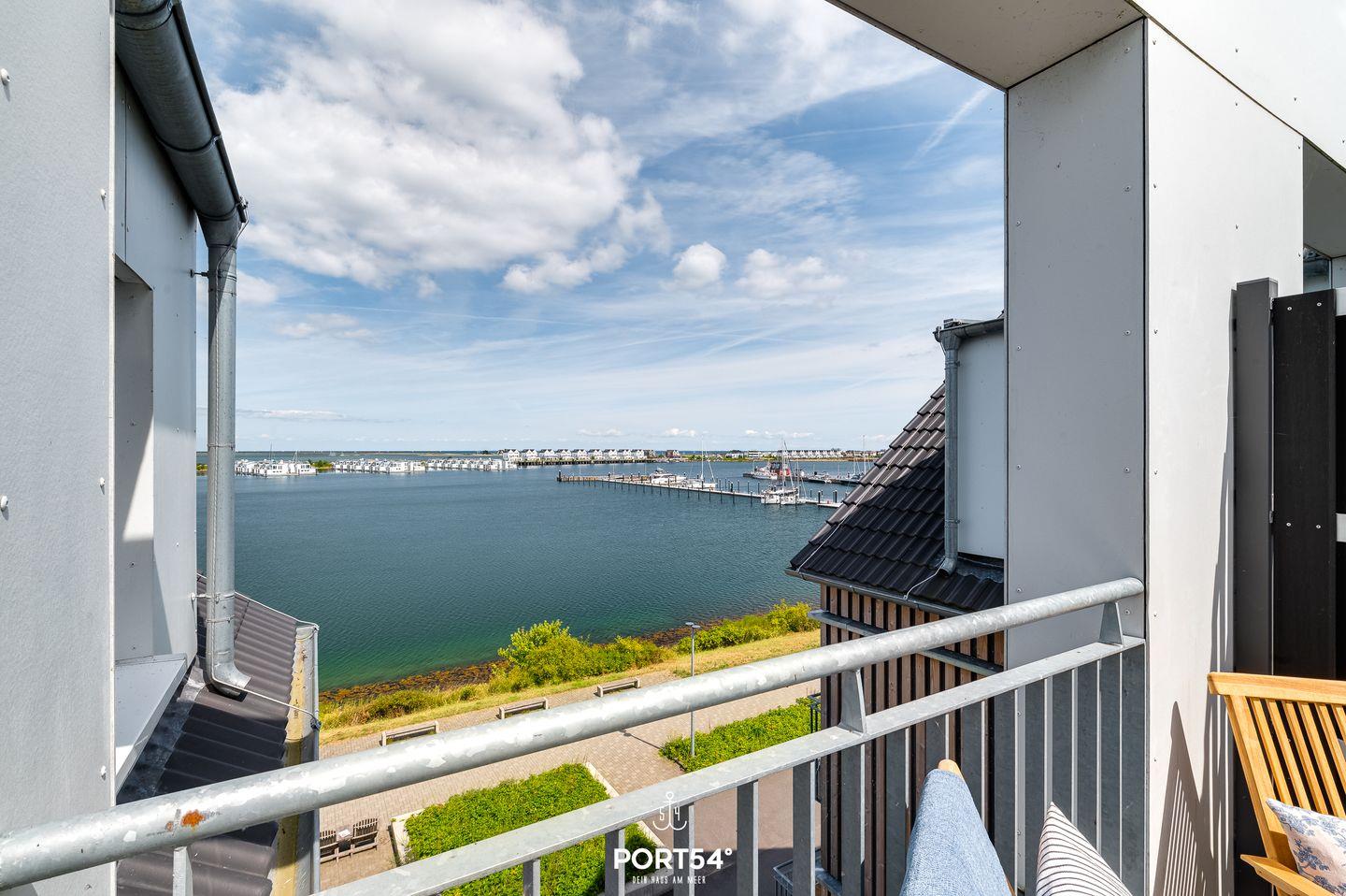 Hafenperle - 1.Reihe am Wasser mit Hafenblick, Fahrstuhl, 2 Balkone, Strandkorb