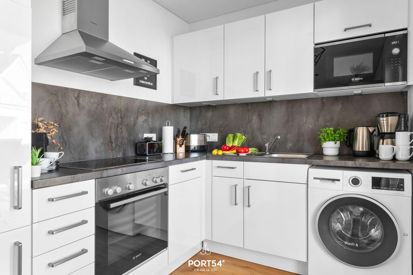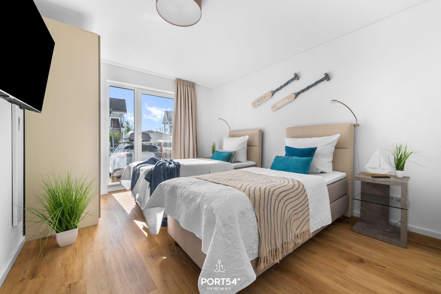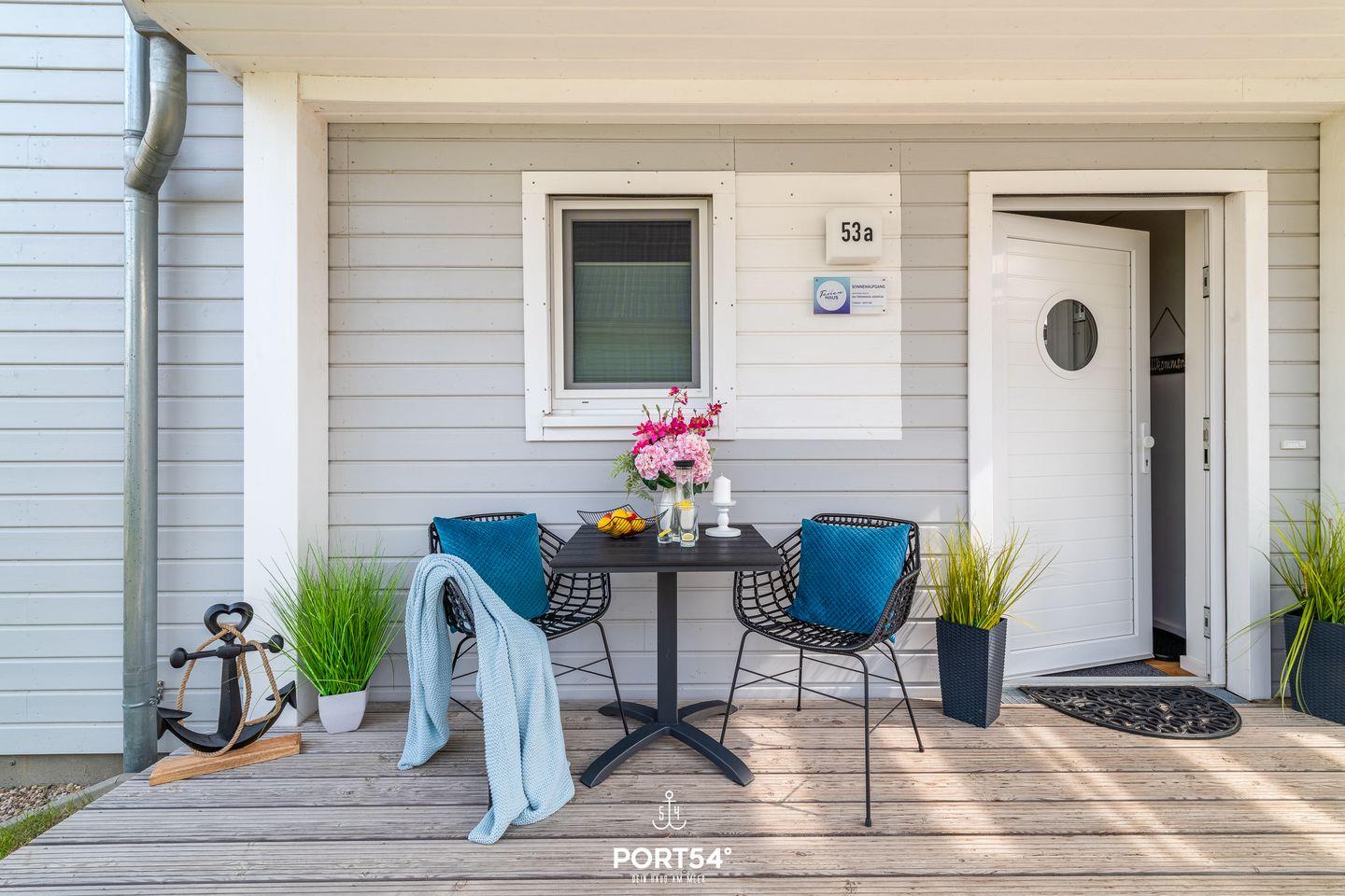 Willkommen in der Unterkunft "Sonnenaufgang" im OstseeResort Olpenitz für bis zu 6 Personen! Im lichtdurchfluteten Wohnzimmer mit angrenzender, offener Küche, zwei Schlafzimmern und einem Badezimmer bietet die Wohnung "Sonnenaufgang" alles, was man für einen Ostseeurlaub braucht. Im Wohnzimmer lädt ein gemütliches Sofa, sowie ein Flachbild-TV zu geselligen Abenden ein. Genießen Sie bei kälteren Temperaturen, oder durchgefroren von langen Strandspaziergängen die wohlige Wärme des Kamins. Die voll ausgestattete Küche lässt gemütliche, gemeinsame Kochabende im Urlaub zu einem Erlebnis werden. In einem der beiden Schlafzimmern finden Sie ein Boxspringbett(180x200cm) und im anderen zwei Einzelbetten (90x200cm) vor. Beide Schlafzimmer bieten für eine gute Nachtruhe Verdunklungsmöglichkeiten, sowie fürs nächtliche Entertainment einen Flachbild-TV. Für die kleinsten Gäste stehen ein Hochstuhl und ein Reisebettchen zur Verfügung. Das Badezimmer verfügt über eine ebenerdige Dusche. Ein Föhn steht ebenfalls für Sie bereit. Gemütliche Gartenmöbel und ein Elektro-Grill runden laue Sommerabende ab. Genießen Sie einen geselligen Grillabend mit der ganzen Familie. Dank des Wäsche-Trockners steht auch längeren Aufenthalten nichts im Wege. Ihren PKW können Sie direkt vor der Unterkunft parken. Für Ihre mitgebrachten oder geliehenen Fahrräder haben wir einen abschließbaren Schuppen.