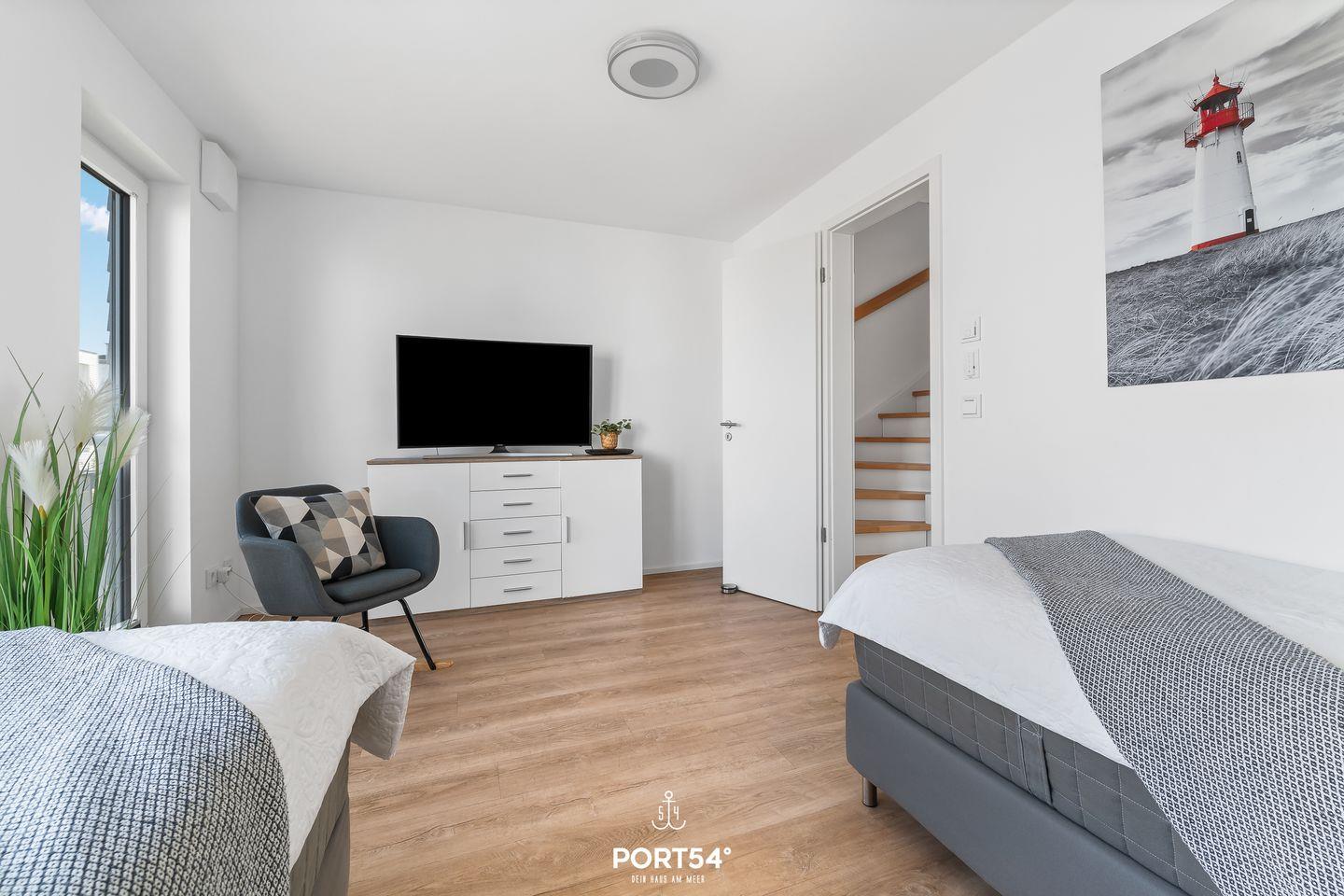 Willkommen in dem luxuriösen, frisch sanierten Ferienhaus "Saltkrokan" in Olpenitz, Ihrem perfekten Urlaubsdomizil, das Luxus und Naturerlebnis harmonisch vereint. Dieses atemberaubende Ferienhaus erstreckt sich über großzügige 146m² und drei Ebenen und bietet Platz für bis zu 6 Personen. Jede Ebene verfügt über einen eigenen Außenbereich, der Ihnen unvergleichliche Ausblicke auf das Wasser schenkt. Von drei Terrassen und einem Balkon aus, die in alle Himmelsrichtungen zeigen und bei der Sanierung ebenfalls erneuert wurden, erleben Sie die ganze Schönheit der Natur. Stellen Sie sich vor, wie die Sonne im Osten über dem Segelhafen aufgeht und Ihnen einen goldenen Start in den Tag beschert. Abends können Sie auf der Westterrasse den spektakulären Sonnenuntergang über der Schlei genießen. Der absolute Höhepunkt ist die Dachterrasse mit Lounge Bereich, die Ihnen einen atemberaubenden 360-Grad-Panoramablick auf das glitzernde Wasser bietet – ein wahrhaft himmlischer Ort, um die Seele baumeln zu lassen. Im Inneren des Ferienhauses erwartet Sie purer Luxus: Fußbodenheizung und ein knisternder Kamin sorgen für wohlige Wärme und Gemütlichkeit, egal zu welcher Jahreszeit. Nach einem ereignisreichen Tag können Sie in der Whirlwanne oder in der privaten finnischen Sauna herrlich entspannen – ein perfekter Rückzugsort für entspannte Wellnessmomente. Ein zusätzliches Duschbad finden Sie im 2. Obergeschoss. Im Erdgeschoss finden Sie zudem ein praktisches Gäste-WC. Im 1. Obergeschoss finden Sie zwei Schlafzimmer: eines mit einem großzügigen Boxspring-Doppelbett (180x200cm) und ein weiteres mit zwei Boxspring-Einzelbetten (90x200cm), die sich bei Bedarf zusammenstellen lassen. Das dritte Schlafzimmer, im 2. Obergeschoss, bietet ebenfalls ein komfortables Boxspring-Doppelbettbett (180x200cm) und einen zusätzlichen Schreibtisch – ideal für jene, die auch im Urlaub etwas arbeiten möchten. Jedes der drei Schlafzimmer ist mit modernen Smart-TVs und praktischen Fliegengittern ausgestattet. Aus den Schlafzimmern mit den Doppelbetten haben Sie jeweils aus einer großen Fensterfront einen traumhaften Blick auf das Wasser. Auch für die kleinen Gäste ist gesorgt: ein Kinderreisebett, ein Kinderhochstuhl, ein Kinderhocker und einige Spiele für drinnen und draußen stehen bereit, um den Aufenthalt für die ganze Familie angenehm zu gestalten. Die voll ausgestattete Küche mit Essbereich lädt zu gemeinsamen Mahlzeiten und geselligen Abenden ein. Vom stilvoll eingerichteten Wohnzimmer aus gelangen Sie auf die Terrasse auf der sich der Strandkorb befindet. Verbringen Sie unvergessliche Grillabende, oder verbringen Sie hier Ihr Frühstück an der frischen Ostseeluft. Ihr Fahrzeug parken Sie bequem direkt vor dem Haus. Hier gibt es zudem eine Wallbox zum Laden für Elektroautos. Für Ihre mitgebrachten oder beim Tourguide gemieteten Fahrräder gibt es einen abschließbaren Fahrradschuppen. Erleben Sie unvergessliche Tage in dem Ferienhaus "Saltkrokan" – ein Ort, an dem Komfort und Natur auf einzigartige Weise verschmelzen und Ihnen eine Auszeit voller Erholung und Freude bieten. Buchen Sie jetzt und sichern Sie sich Ihren Platz in diesem kleinen Paradies am Wasser!