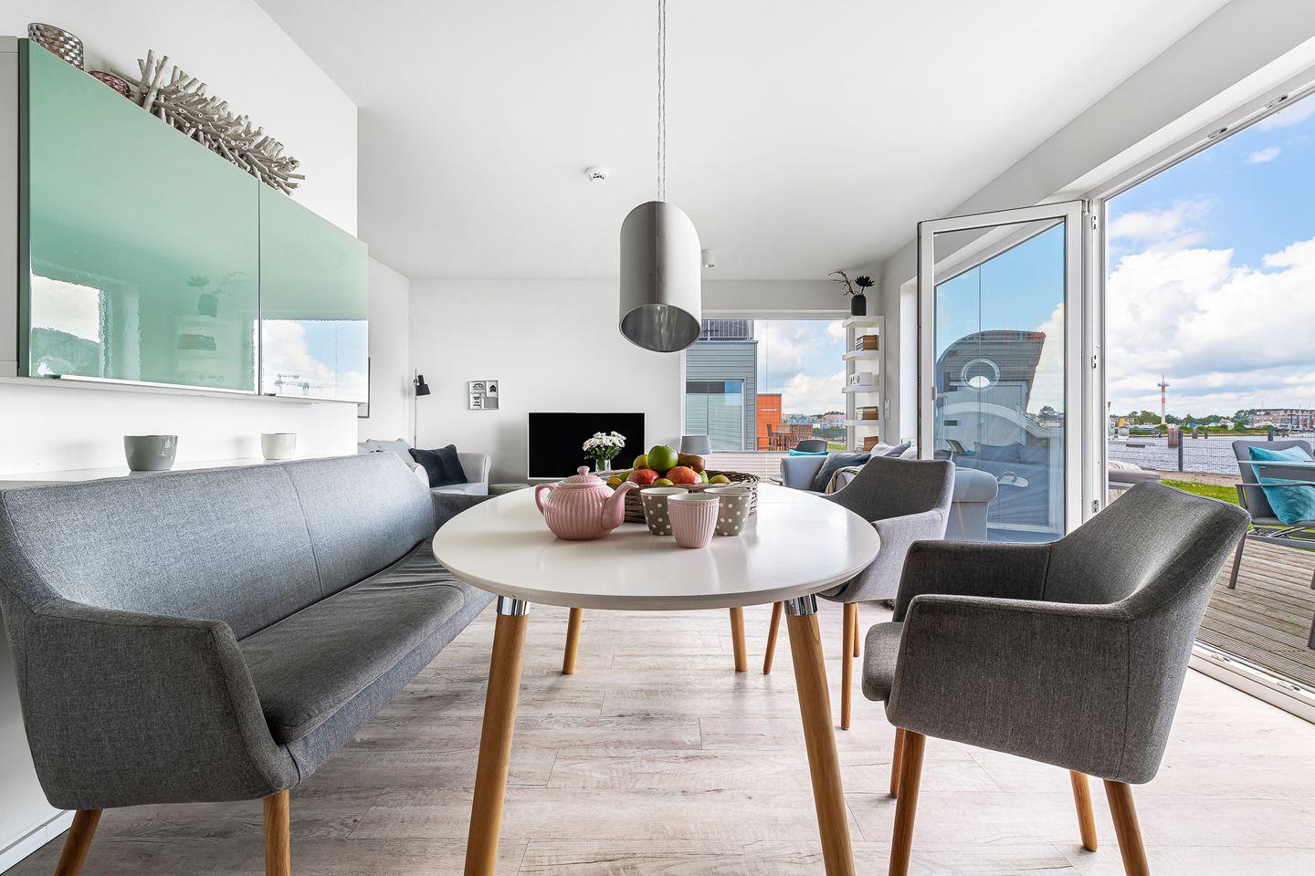 Die Ferienwohnung "Kleine Freiheit" in Olpenitz bietet Wellness mit Sauna, Terrasse am Wasser und modernen Komfort für entspannte Tage.