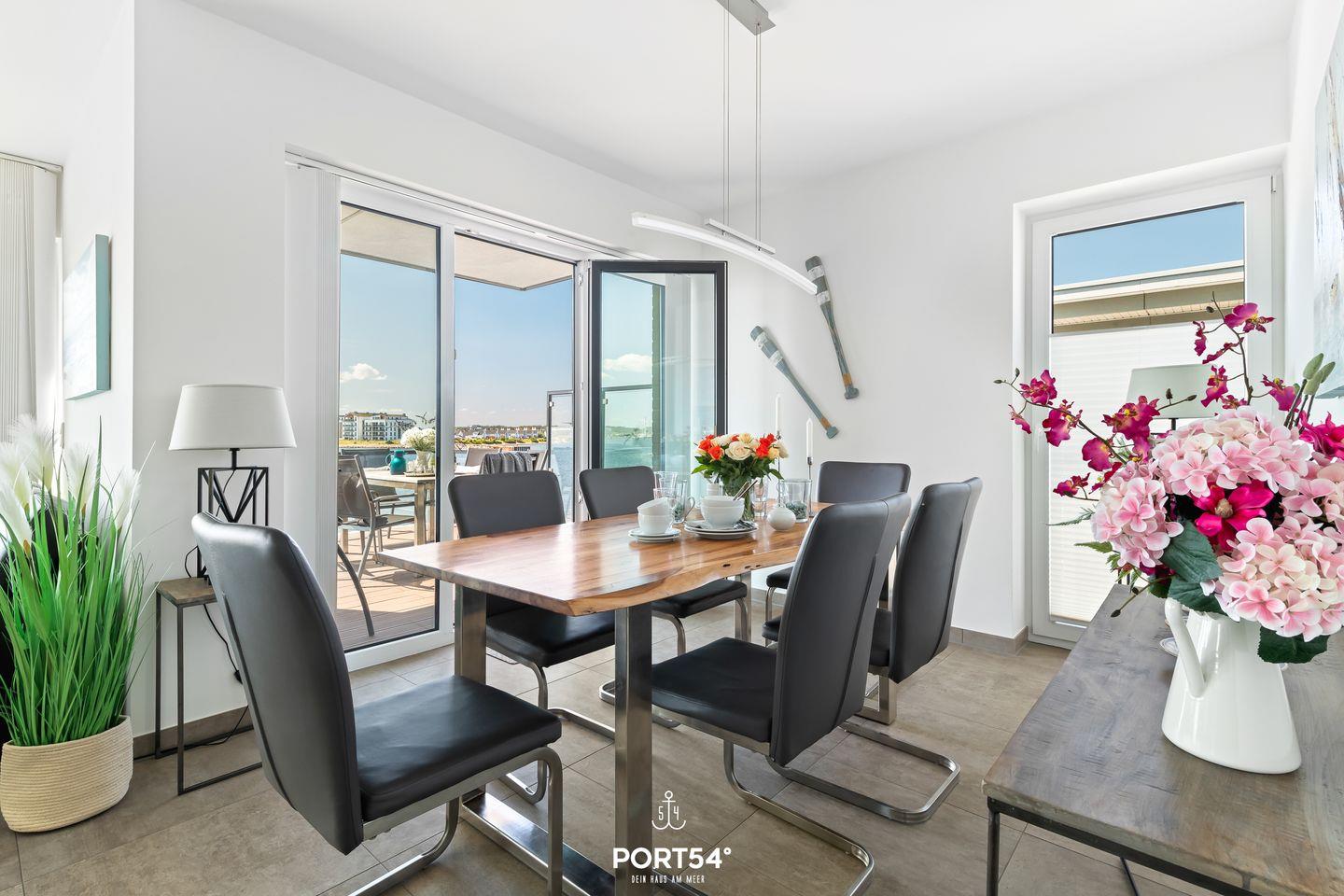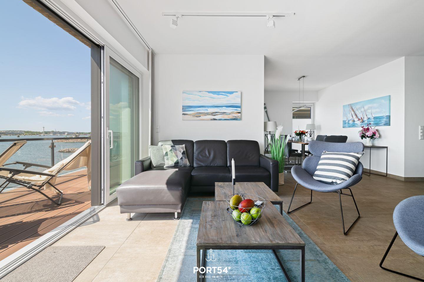 Die moderne Penthouse-Ferienwohnung "Dock 76 Promenade" in Olpenitz bietet auf 98m² höchsten Komfort und einen traumhaften Wasserblick auf Schlei und Ostsee. Der offene Wohn-/Essbereich mit Zugang zum großzügigen Balkon lädt zum Entspannen ein. Die Wohnung verfügt über drei Schlafzimmer mit Boxspringbetten, zwei Bäder mit Dusche, eine finn. Sauna und eine vollausgestattete Küche. Alle Schlafzimmer sind mit einem TV ausgestattet. Ihnen steht ein Parkplatz mit E-Ladesäule zur Verfügung.