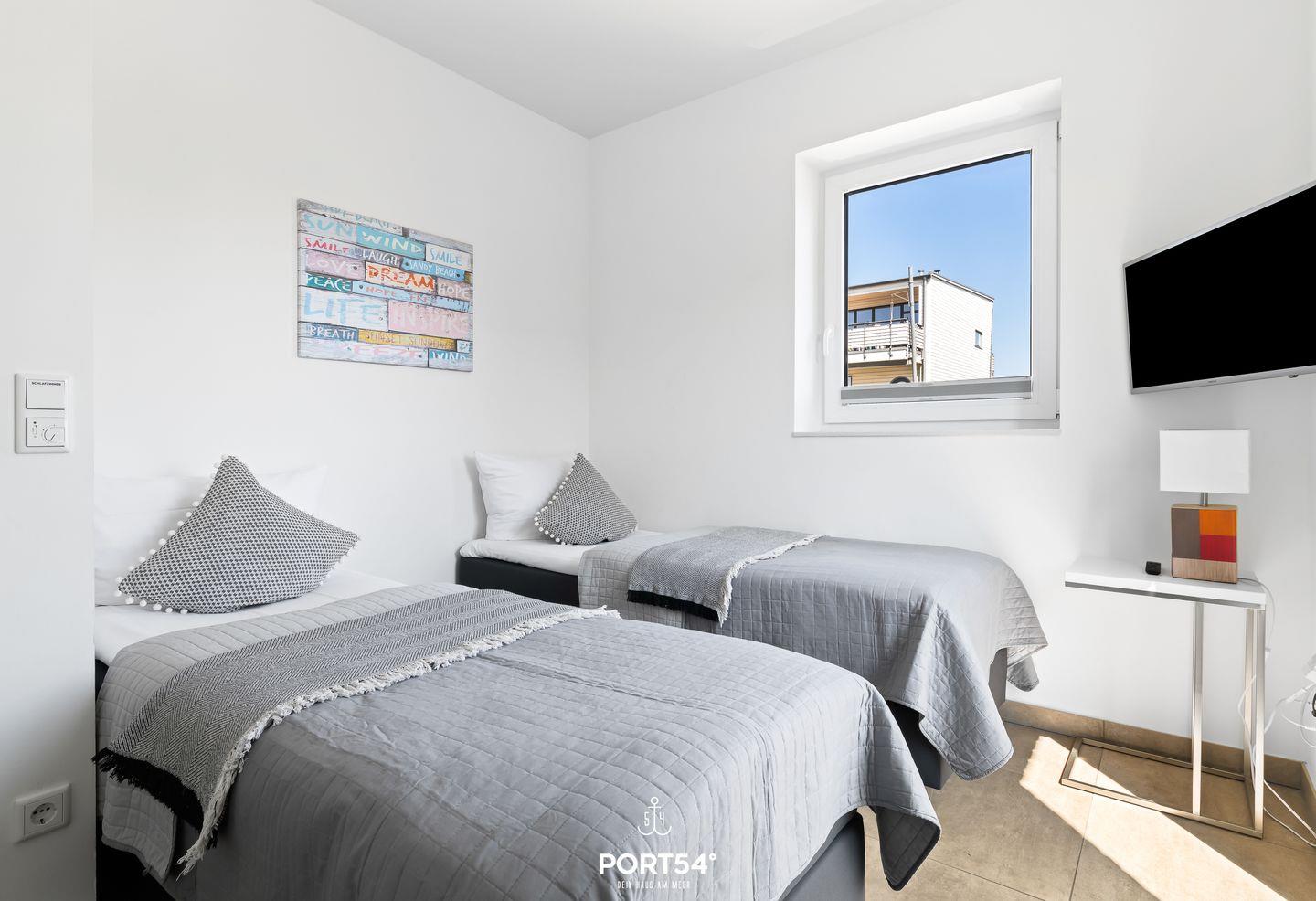 Willkommen in der exklusiven Ferienwohnung "Dock 76 Promenade", einer modernen und luxuriösen Unterkunft in Olpenitz, die Ihnen auf 98m² höchsten Komfort und ein einmaliges Wohnerlebnis bietet. Diese großzügige Ferienwohnung ist ideal für bis zu sechs Personen und überzeugt durch ihre hochwertige Ausstattung und die traumhafte Lage direkt am Wasser. Die Wohnung verfügt über einen offenen Wohn- und Essbereich, der durch seine geschmackvolle Einrichtung und die gemütliche Atmosphäre besticht. Der lichtdurchflutete Raum bietet direkten Zugang zu einem großzügigen Balkon, von dem Sie einen herrlichen Blick auf die Schlei und die Ostsee genießen können. Ob beim Frühstück oder beim abendlichen Glas Wein – der Balkon lädt zu entspannten Stunden mit atemberaubendem Panorama ein. Der Wohnbereich ist mit einem modernen Flachbild-TV und einem Blu-ray-Player ausgestattet, sodass auch an Regentagen für Unterhaltung gesorgt ist. Die vollausgestattete Küche lässt keine Wünsche offen. Hier finden Sie alles, was Sie zum Kochen und Genießen benötigen, einschließlich einer Geschirrspülmaschine, einen Backofen, Ceranfeld, Mikrowelle, Toaster, Kaffee- und Nespressomaschine, eines Kühlschranks mit Gefrierfach und allen notwendigen Küchenutensilien. Am Esstisch bietet sich ausreichend Platz für bis zu 6 Personen. Die Ferienwohnung bietet drei komfortable Schlafzimmer, die alle mit hochwertigen Boxspringbetten ausgestattet sind. Zwei der Schlafzimmer verfügen über Doppel-Boxspringbetten (1x180x200cm und 1x160x200), während das dritte Schlafzimmer mit zwei Einzel-Boxspringbetten eingerichtet ist. Jedes Schlafzimmer bietet zudem einen eigenen Flachbild-TV, sodass jeder Gast seinen persönlichen Rückzugsort hat. Ein besonderes Highlight der Wohnung sind die beiden modernen Badezimmer, die jeweils mit einer bodengleichen Dusche ausgestattet sind. Ein Badezimmer bietet zudem eine Finnische Sauna, in der Sie nach einem langen Tag am Strand oder einer Wanderung entlang der Küste entspannen können. Selbstverständlich darf auch eine Waschmaschine nicht fehlen und ist gerade bei längeren Aufenthalten ein praktischer Helfer. Ein Parkplatz an der Unterkunft der Ihnen zur alleinigen Nutzung zur Verfügung steht, bietet Ihnen die Möglichkeit Ihr Elektrofahrzeug über eine E-Ladesäule zu laden. Die Ferienwohnung "Dock 76" in Olpenitz ist der ideale Ort für einen erholsamen und unvergesslichen Urlaub an der Ostsee. Genießen Sie den erstklassigen Komfort, die hervorragende Ausstattung und die traumhafte Lage direkt am Wasser. Hier können Sie dem Alltag entfliehen und Ihre wohlverdiente Auszeit in vollen Zügen genießen.