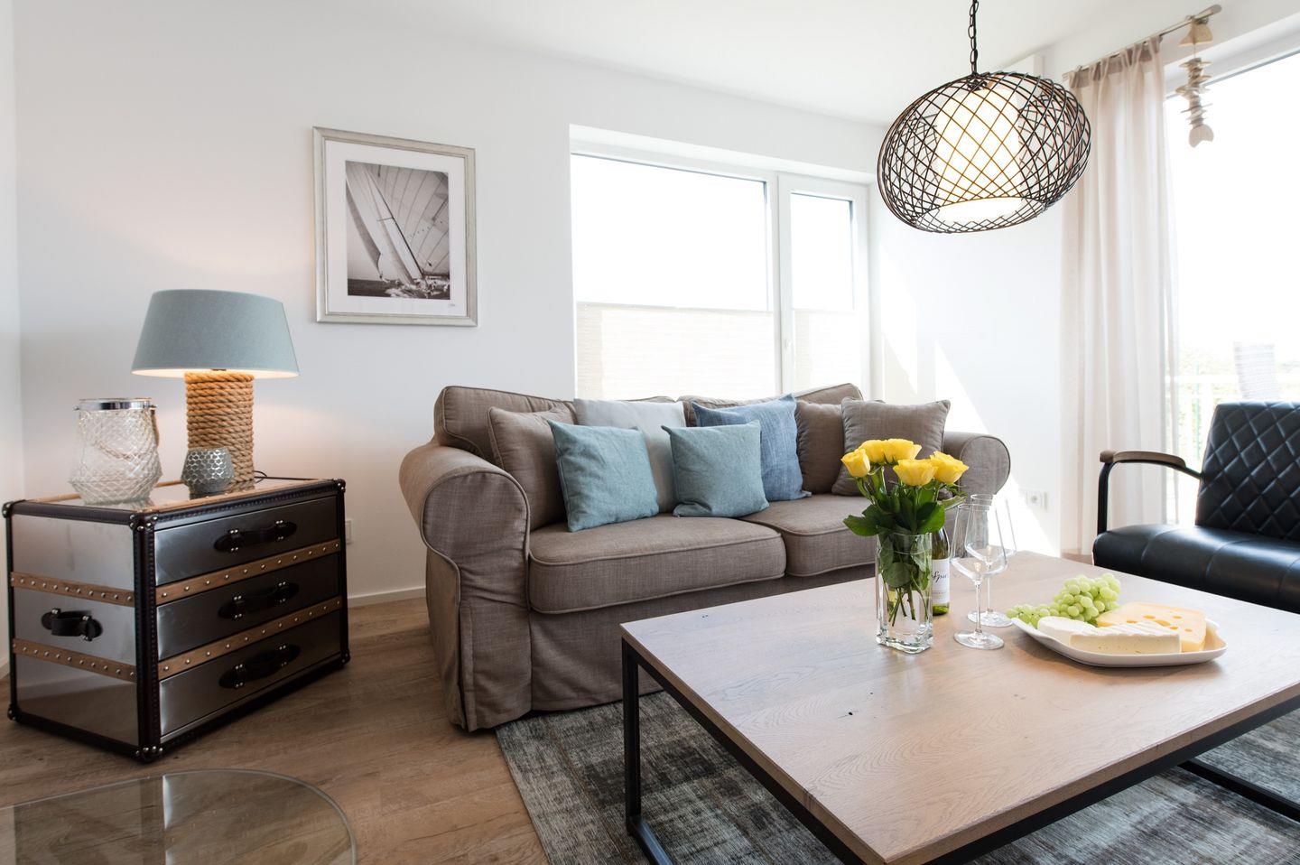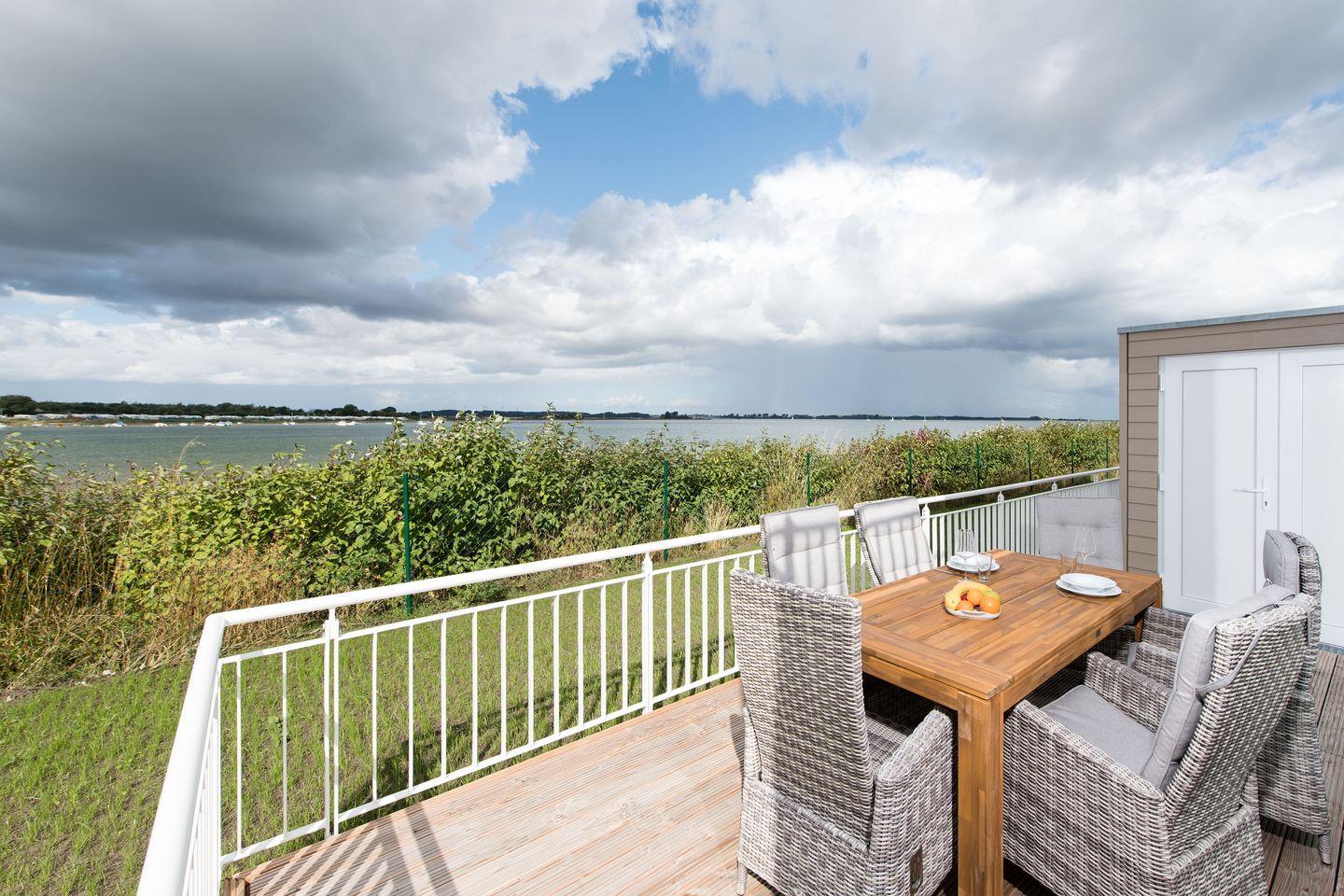 Das Hamptons Beach House in Olpenitz bietet Luxus, Panorama-Dachterrasse, Sauna, Kamin und traumhaften Meerblick.