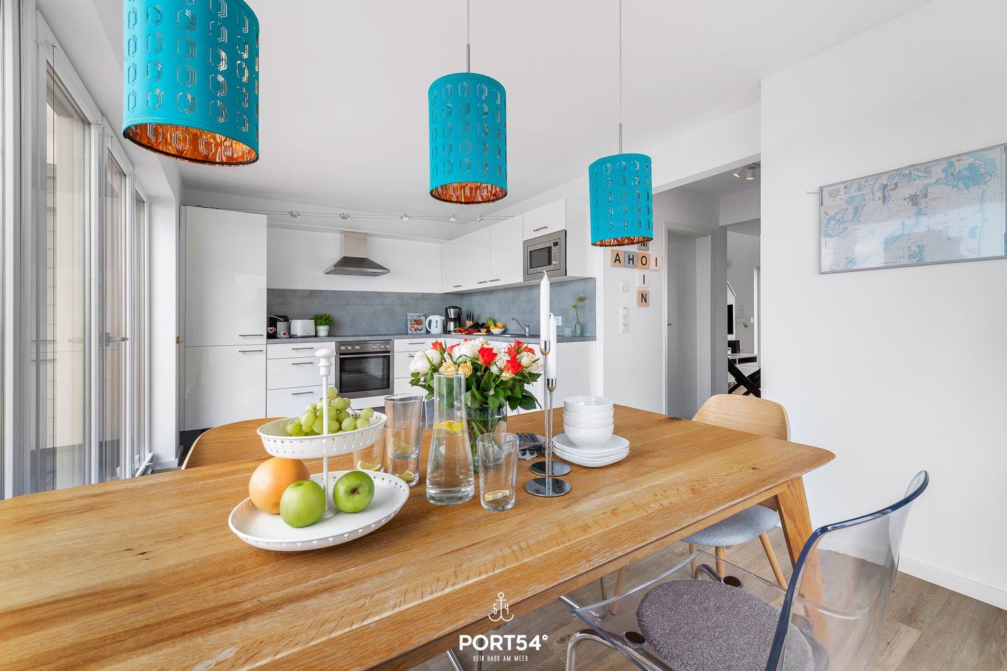 Die Küche mit Essbereich lädt Dich zu geselligen Stunden mit Familie und Freunden ein.