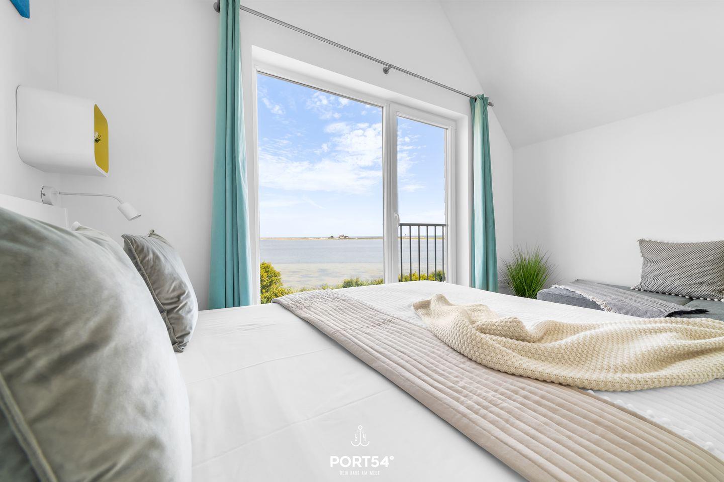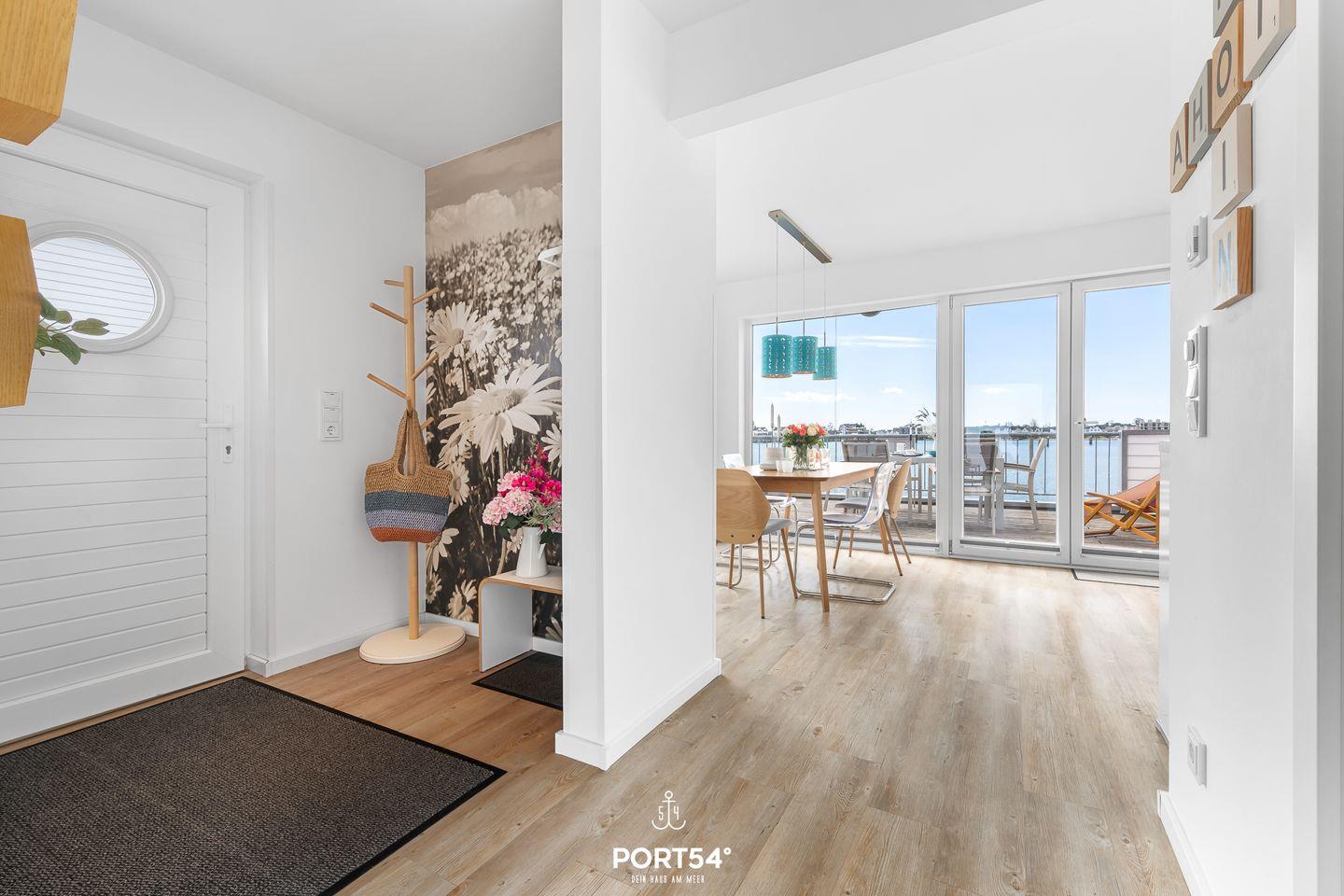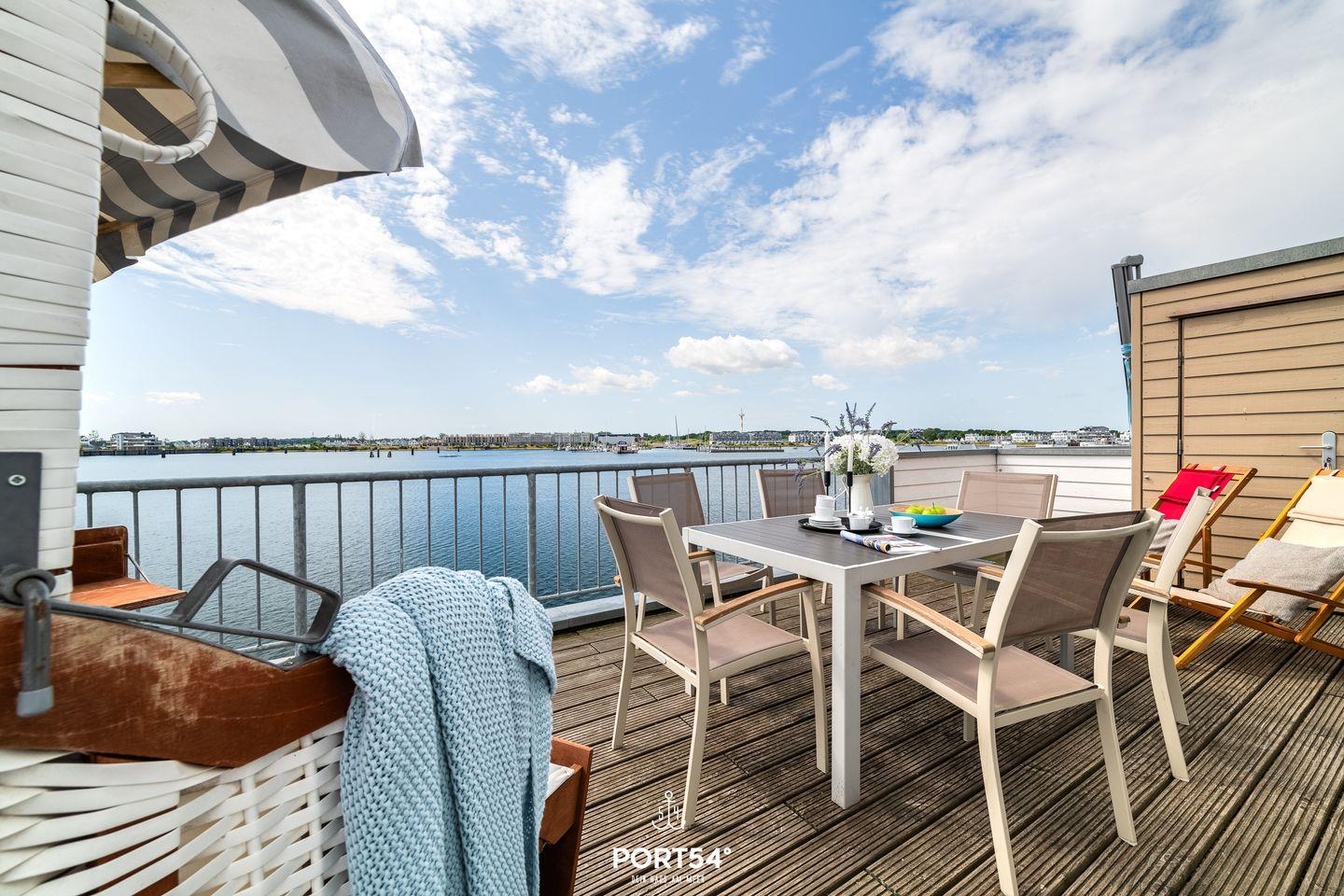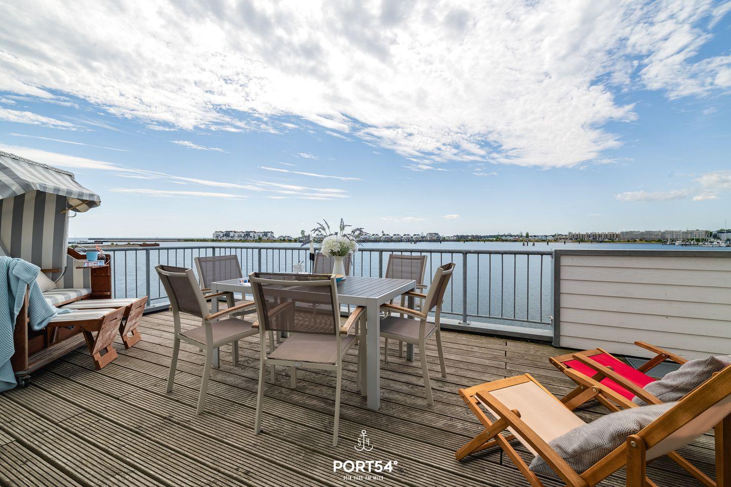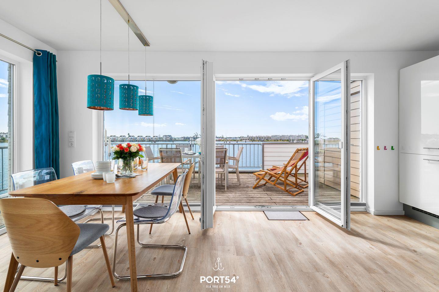 Von hier aus gelangst Du auf den Balkon, von dem Du einen traumhaften Blick auf das Hafenbecken des OstseeResorts genießt.