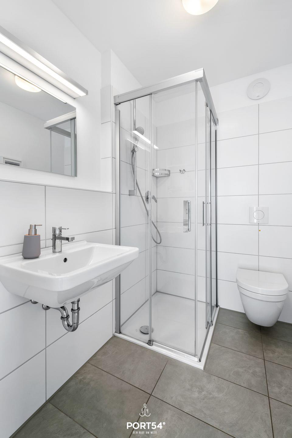 Zudem stehen Dir in diesem Bad eine Waschmaschine, ein Handtuchheizkörper und ein Fön zur Verfügung.