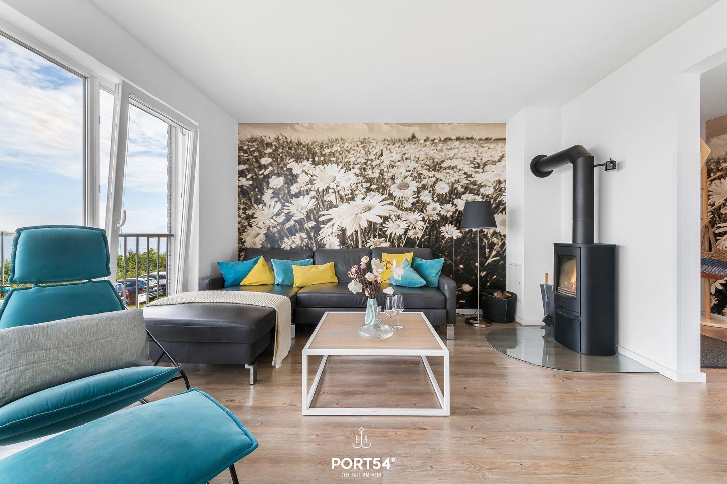 Eine Ferienwohnung – zwei Aussichten mit Wasserblick! Im ersten OG erwartet Dich neben einem Wohnbereich mit Kamin ein Duschbad sowie eine Küche mit Essbereich und Zugang zur Terrasse. Das zweite OG verfügt über zwei Schlafzimmer, ausgestattet mit einem Doppelbett und zwei Einzelbetten. Bei der fünften Schlafmöglichkeit handelt es sich um einen Schlafsessel, der nur für Kinder geeignet ist! Das große Bad bietet Dir eine Whirlwanne und eine Infrarot-Sauna.