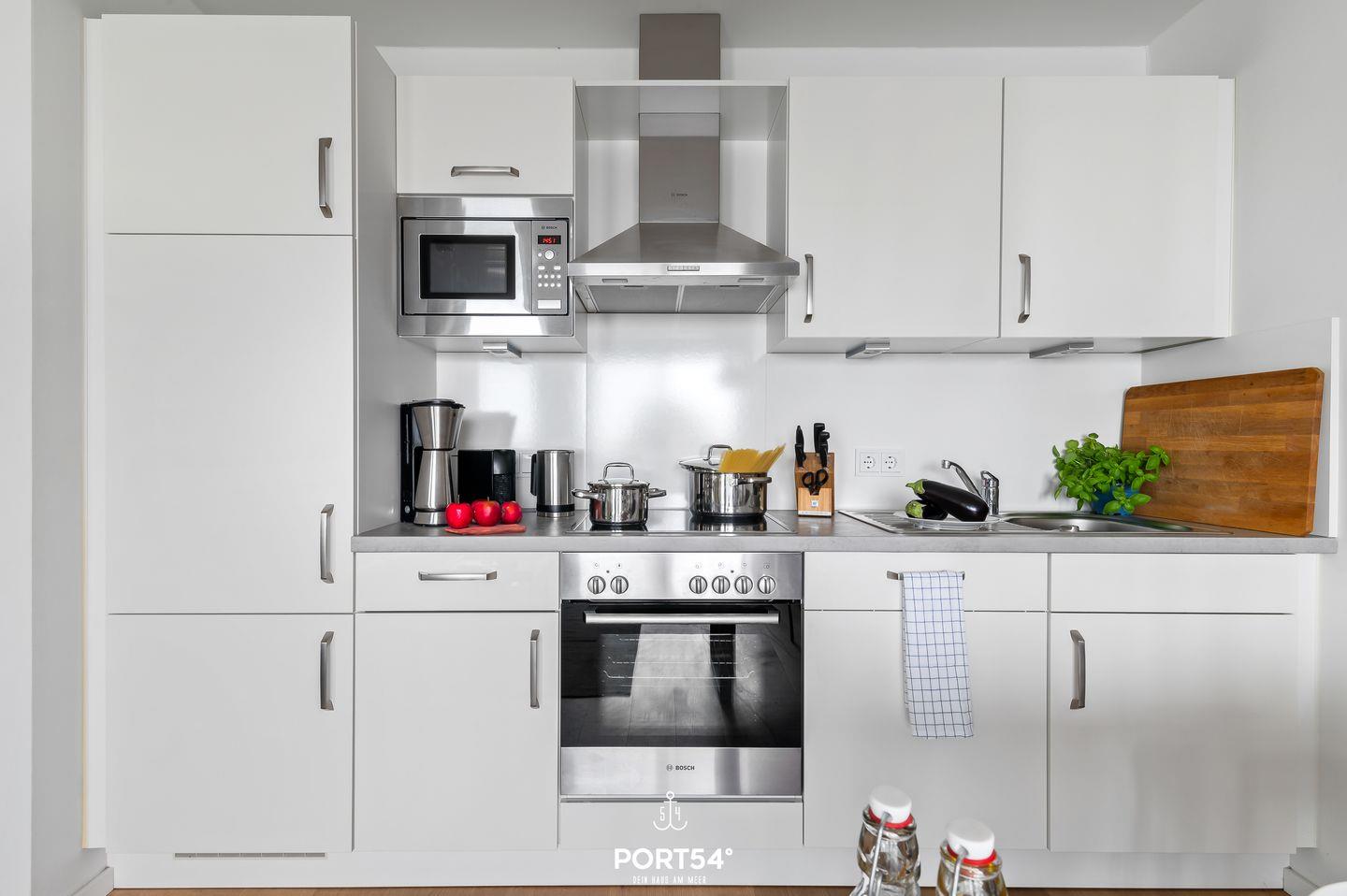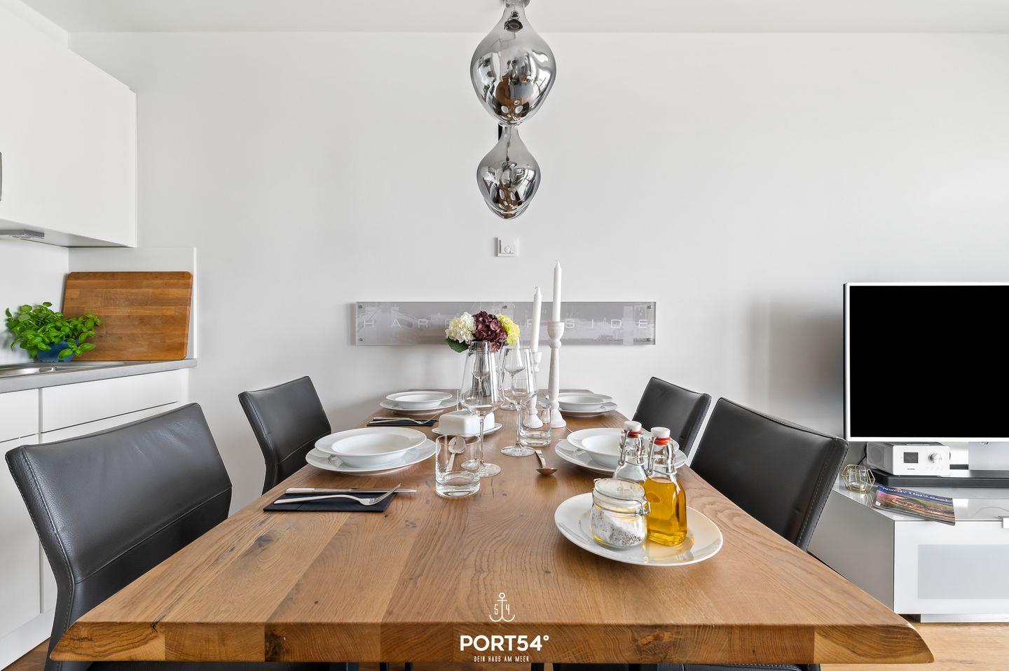 Willkommen in der Ferienwohnung "Harbour Side" in Olpenitz – einem idealen Rückzugsort für Paare, Familien und alle, die Erholung und ein Stück Luxus direkt am Meer suchen. Diese ansprechende Ferienwohnung befindet sich nur wenige Meter vom Meer und bietet Ihnen dadurch einen außergewöhnlich guten Blick auf das Meer. Nutzen Sie die Gelegenheit, die frische Brise des Nordens zu genießen und erleben Sie unvergessliche Sonnenuntergänge von Ihrem eigenen Balkon aus. Mit einer Größe von 51 m² präsentiert sich die Wohnung optimal für bis zu vier Personen und verfügt über ein Schlafzimmer sowie ein lichtdurchflutetes Wohnzimmer, das mit einem komfortablen Schlafsofa (140x190cm) und einem Esstisch ausgestattet ist. Die offene Küche ist modern gestaltet und bietet Ihnen alle notwendigen Küchenutensilien sowie praktische Elektrogeräte, einschließlich eines Cerankochfelds, Backofens, Geschirrspülers und einer Nespresso-Espressomaschine. Hier können Sie mit Leichtigkeit Ihre Lieblingsgerichte zubereiten. Die bodengleiche Dusche im Badezimmer sorgt für zusätzlichen Komfort, während die Fußbodenheizung in der gesamten Wohnung ein angenehmes Wohnklima bietet. Für Familienreisen ist die Ferienwohnung besonders geeignet, da sie mit einem Kinderhochstuhl und einem Babybett ausgestattet ist. Die entspannte Atmosphäre und der Sichtschutz an allen Fenstern garantieren Ihnen Privatsphäre und Entspannung. Die Lage der Ferienwohnung ist herausragend: Nach einem kurzen Fußweg haben Sie die Möglichkeit, sich am Strand zu entspannen. Einkaufsmöglichkeiten sind nur 50 Meter entfernt, während ein Restaurant in 100 Metern zu erreichen ist – ideal für kulinarische Ausflüge ohne lange Anfahrtswege. Der öffentliche Nahverkehr ist ebenfalls in unmittelbarer Nähe, was die Erkundung der Umgebung erleichtert. Die Ferienwohnung ist nicht nur modern und luxuriös ausgestattet, sondern bietet auch praktische Annehmlichkeiten wie WLAN, zwei digitale Fernseher, eine Waschmaschine samt Bügelbrett und -eisen sowie einen Privatparkplatz mit einer Parkmöglichkeit direkt an der Unterkunft. So können Sie sich während Ihres Aufenthalts um nichts kümmern und einfach die Zeit am Meer genießen. Verbringen Sie erholsame Tage in dieser herrlichen Ferienwohnung in Olpenitz. Ob für einen Kurzurlaub oder einen längeren Aufenthalt – die Kombination aus schöner Lage, komfortabler Ausstattung und vielfältigen Freizeitmöglichkeiten macht diese Ferienwohnung zur perfekten Wahl. Sichern Sie sich Ihren Aufenthalt und erleben Sie die atemberaubende Küstenlandschaft der Ostsee in voller Pracht. Wir freuen uns darauf, Sie willkommen zu heißen!
