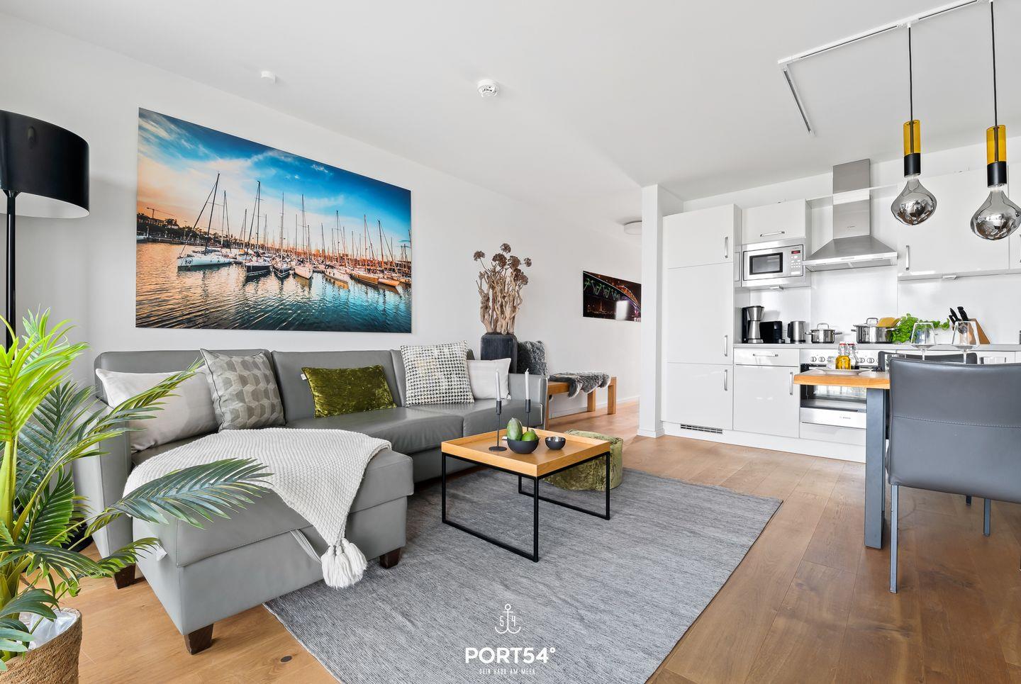 Die Ferienwohnung "Harbour Side" liegt im Ostsee Resort Olpenitz und ist nur wenige Meter vom Wasser entfernt. Auf knapp 51m² finden hier 4 Personen Platz. Sie bietet Ihnen ein Schlafzimmer mit einem Doppelbett, einen offenen Wohn-/Essbereich, eine Küche & ein gemütliches Schlafsofa. Das großzügige Badezimmer verfügt über eine ebenerdige Dusche. Das Highlight ist der Balkon mit Wasserblick, auf dem Sie die Sonnenaufgänge genießen können. Ein kostenfreier Parkplatz befindet sich vor dem Haus.