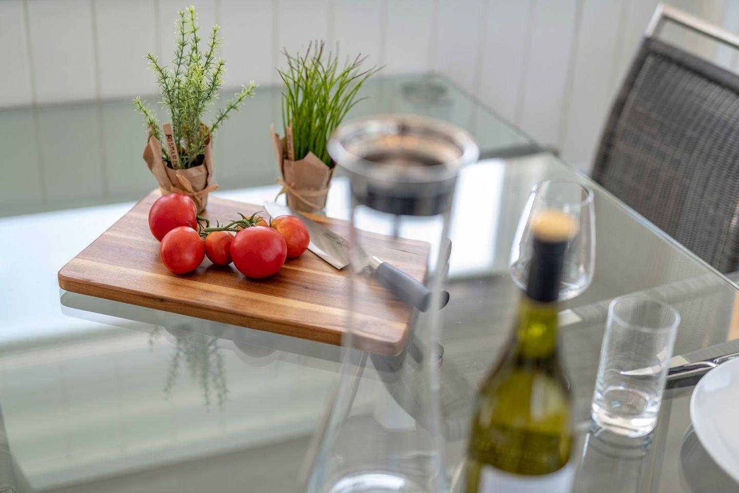 Willkommen an Bord - auf dem schwimmenden Haus "Haus im Meer" beginnt Ihr Ostsee-Traumurlaub! Auf 97m² bietet dieses Hausboot einen offenen Wohn-/Essbereich, zwei Schlafzimmer, ein Badezimmer und eine gigantische Dachterrasse mit einem atemberaubenden Rundum-Wasserblick, der für unvergessliche Momente sorgt! In dem Wohnbereich lassen sich herrlich die Tage bei einer mitreißenden TV-Serie oder einem spannenden Buch ausklingen. Die vollausgestattete Küche lässt keine Wünsche offen, hier können leckere Gerichte gezaubert werden. Der Esstisch bietet sich auch ideal an, um gesellige Spieleabende mit den hauseigenen Spielen zu verbringen. In den zwei Schlafzimmern können Sie in Ihrem Urlaub ausgiebig ausschlafen. Das eine Schlafzimmer ist mit zwei Boxspring-Einzelbetten (je 100x200cm), Verdunkelungsmöglichkeiten und einem Flachbild-Fernseher ausgestattet. Das andere Schlafzimmer bietet Ihnen ein Boxspring-Doppelbett (180x200cm) und einem Kleiderschrank. Um den Tag perfekt zu beginnen, können Sie von diesem Schlafzimmer aus, direkt auf das Wasser schauen und gelangen von hier aus auch auf die Terrasse. Morgens mit einem Kaffee und einem atemberaubenden Blick in den Tag starten – was gibt's Schöneres? Falls Gäste bei Ihnen übernachten möchten kann das Schlafsofa im Wohnbereich genutzt werden. Das Badezimmer bietet neben einer ebenerdigen Dusche, einen kleinen Kosmetikspiegel, einen Handtuchheizkörper und einen Fön. Auch eine Finnische Sauna ist vorhanden - Wellness pur! Die Dachterrasse mit 360-Grad-Wasserblick ist der perfekte Ort, um wunderschöne Sonnenuntergänge zu bestaunen. Genießen Sie den traumhaften Ausblick auf das Hafenbecken und die Marina des OstseeResorts ober lassen Sie Ihren Blick Richtung Ostsee und Schleimünde schweifen. Zusätzlich lädt die Terrasse zu ausgiebigen Sonnenbädern und unvergesslichen Grillabenden ein. Und für alle Seefahrer: Direkt am schwimmenden Haus gibt es einen eigenen Liegeplatz mit Zugang zu Strom und Wasser und eine Badeleiter. Wer mit dem Auto anreist, findet seinen kostenfreien Stellplatz am Steg.