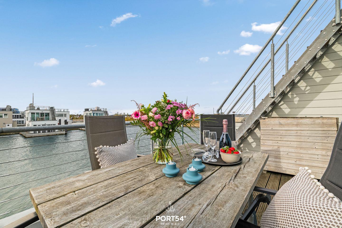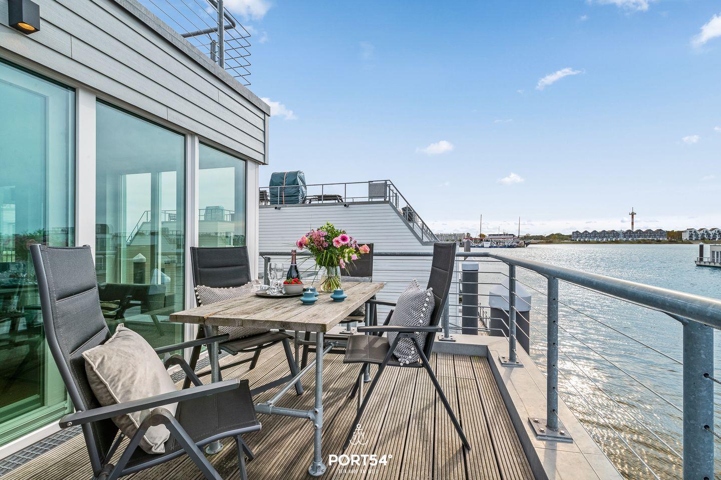 Am Pier - schwimmendes Ferienhaus, Dachterrasse mit 360° Blick, finnische Sauna