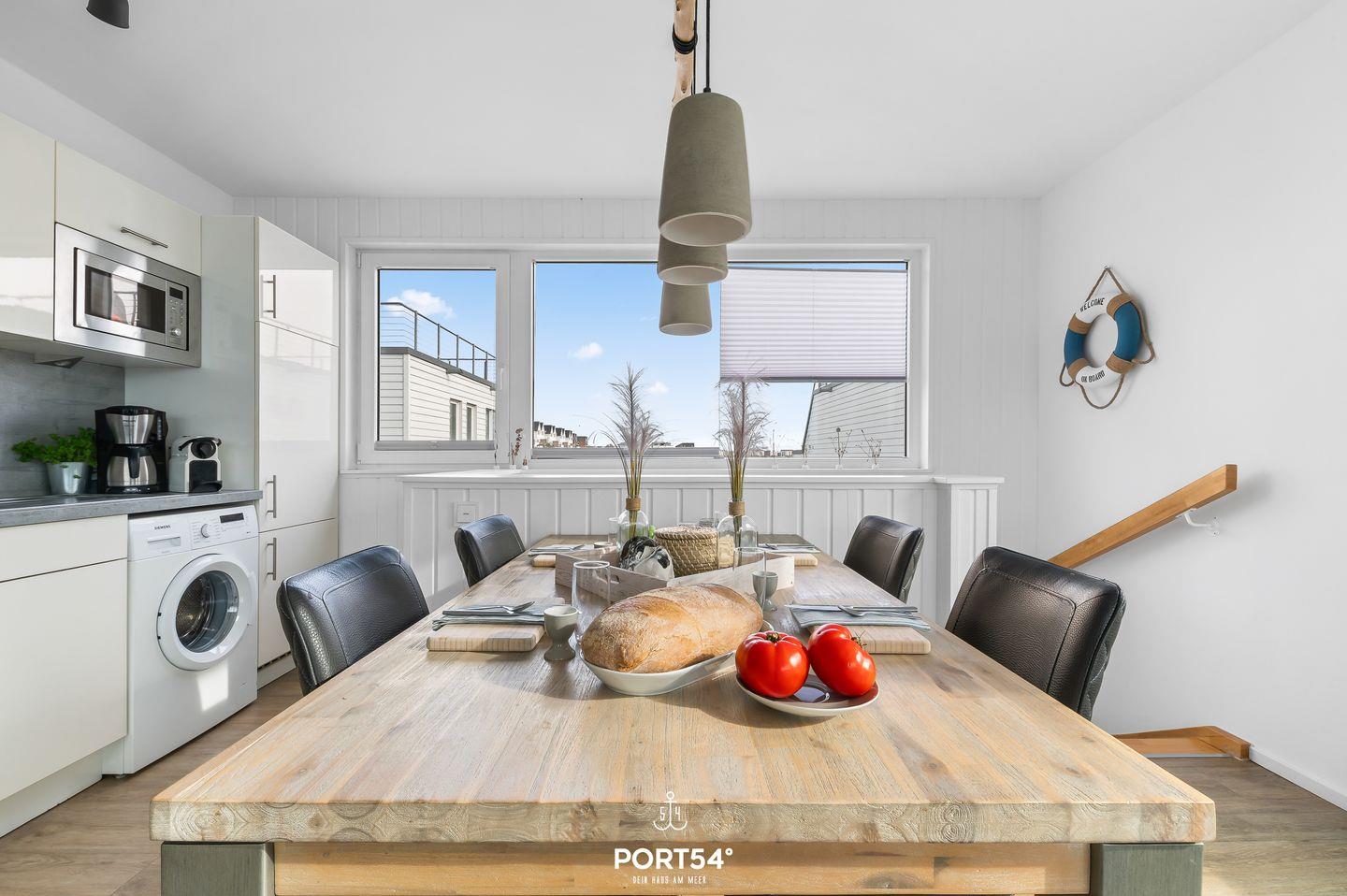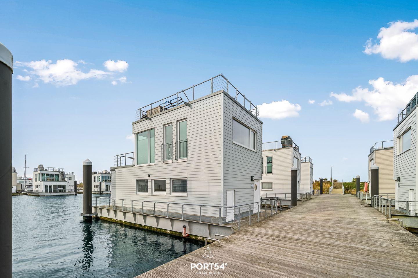 Schwimmendes Ferienhaus "Am Pier" mit finnischer Sauna, Dachterrasse und 360° Wasserblick in Olpenitz.