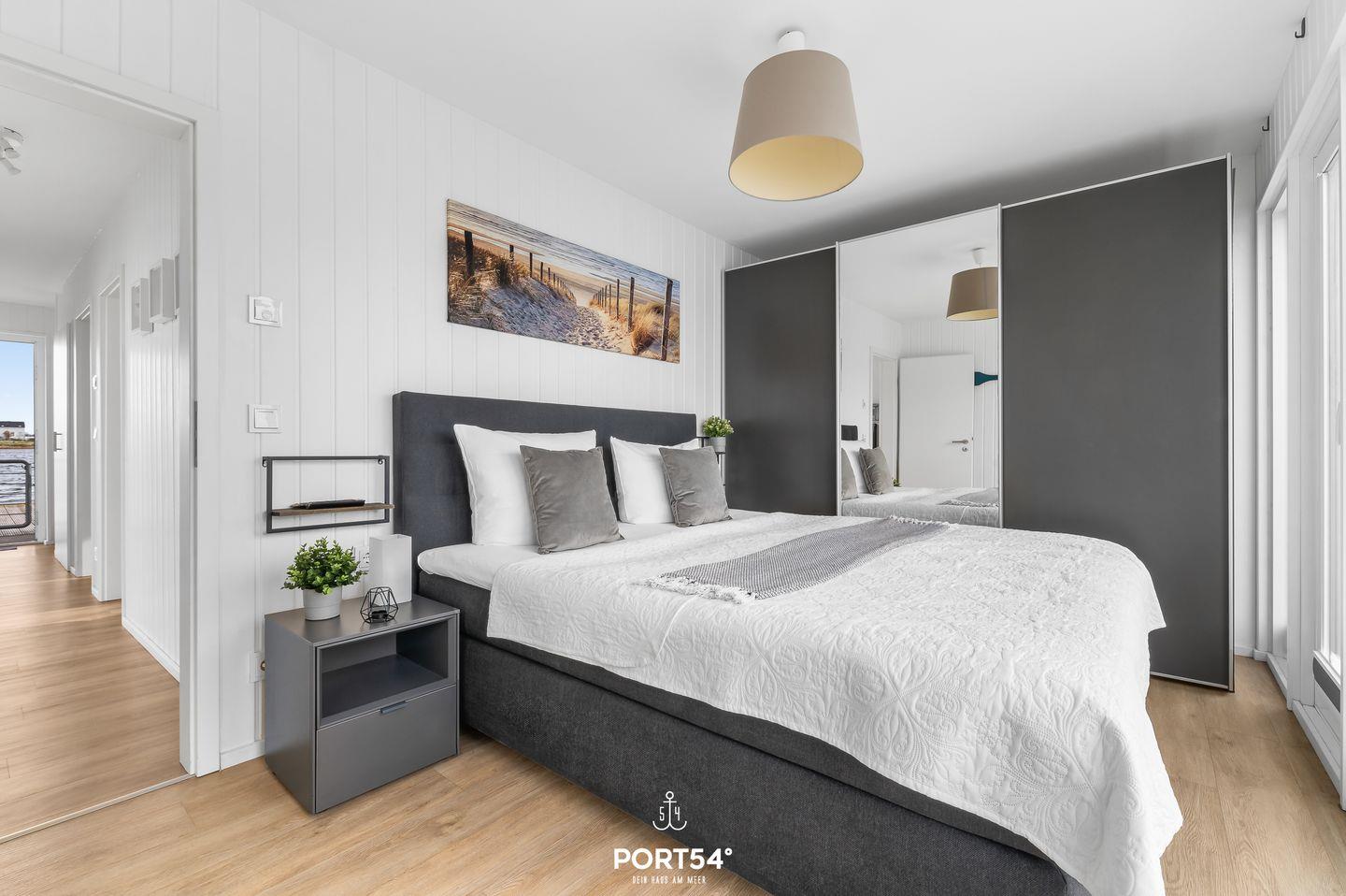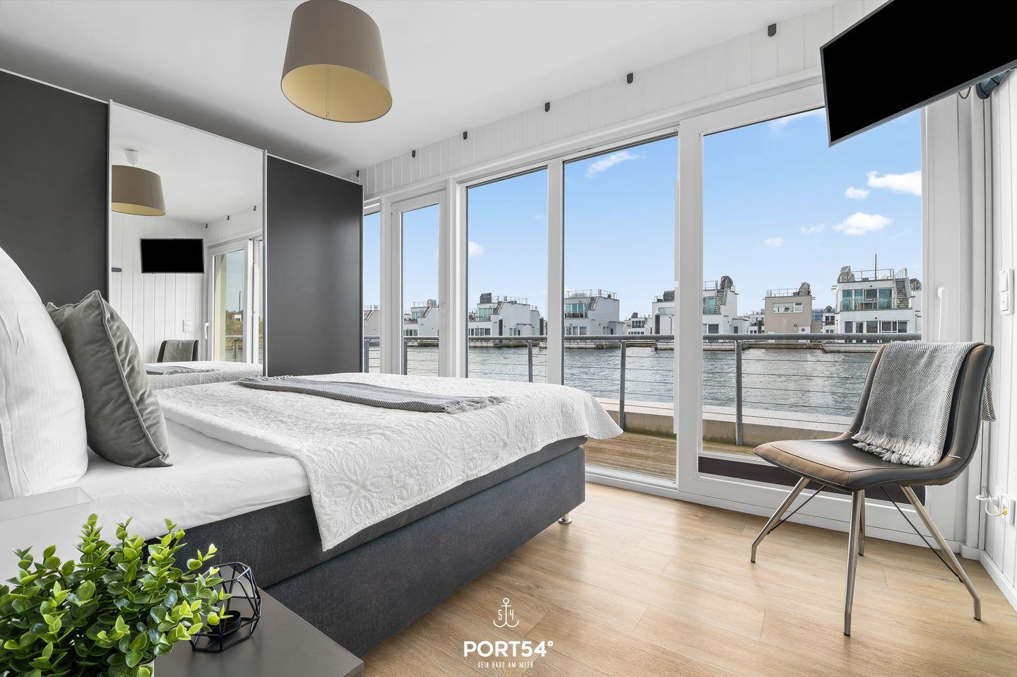 Das Hauptschlafzimmer bietet Dir einen exklusiven Blick auf das Wasser direkt aus dem Bett.