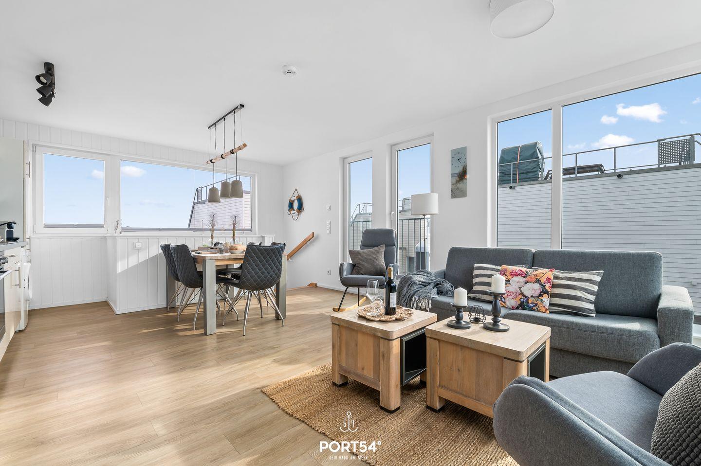 Die 30m² große Dachterrasse bietet Dir einen atemberaubenden 360°-Blick auf die malerische Schönheit der Ostsee sowie des Ostseefjords Schlei und ist der perfekte Ort, um den Sonnenuntergang in der Hängematte zu genießen.