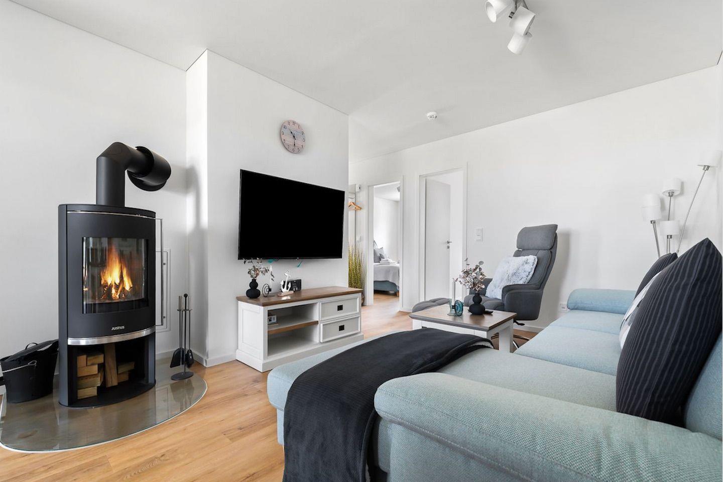 Maltes Ostseekoje in Olpenitz bietet moderne Ferienwohnung mit Sauna, Kamin und Terrasse nahe Ostsee-Strand.