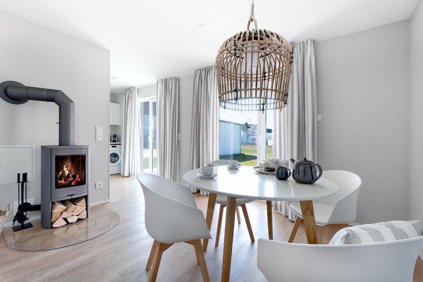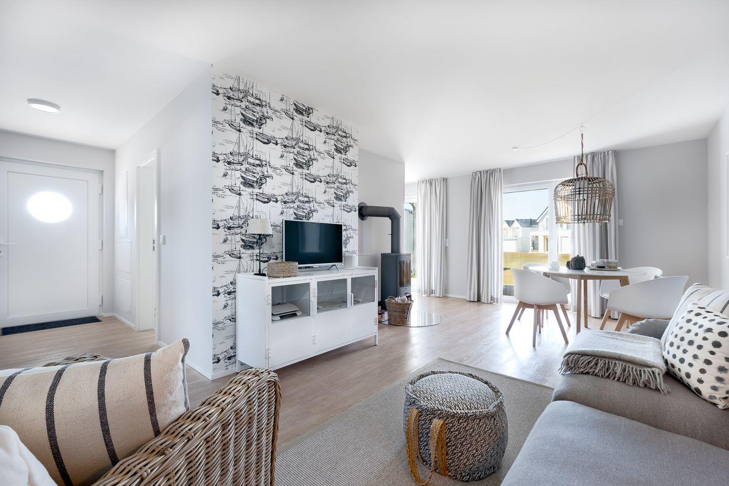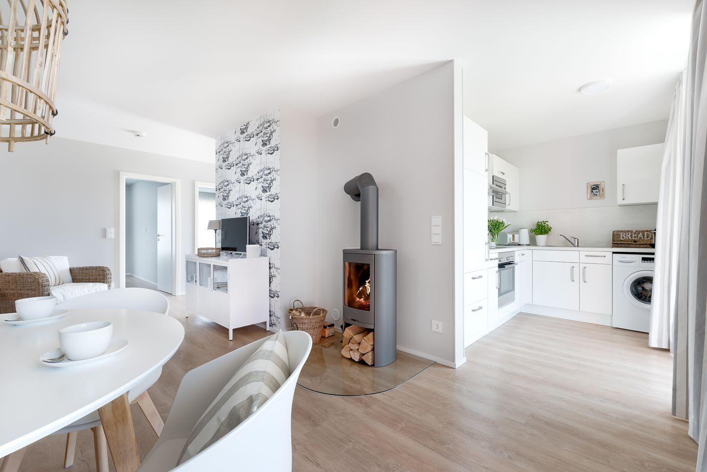 Egal, ob Sie die Sonne genießen oder lange Spaziergänge unternehmen möchten – in der Ferienwohnung "Nis Puk" erleben Sie erholsame und unvergessliche Urlaubstage. Die gemütliche Wohnung liegt nur ca. 600m vom Weidefelder Sandstrand und ist die perfekte Ausgangsbasis für Ihren Urlaub. Auch die Hafenpromenade mit ihren wachsenden Angeboten und die Marina des Ostsee Resorts Olpenitz sind bequem erreichbar. Zwei Sonnenterrassen mit Holzboden, umgeben von einer gepflegten Grünfläche, laden zum Entspannen und Sonnenbaden ein. Der Strandkorb bietet sich ideal für ruhige Lesestunden an oder um einfach die frische Meeresbrise zu genießen. Der Elektro-Grill ermöglicht Ihnen unvergessliche Grillabende zu verbringen. Der lichtdurchflutete Wohn- und Essbereich schafft mit der großen Fensterfronten eine helle und freundliche Atmosphäre. Die moderne, vollständig ausgestattete Küche lässt keine Wünsche offen und bietet neben Mikrowelle und Gefrierfach alles, was Sie für ausgedehnte Kochabende benötigen. Auch bei schlechtem Wetter ist für Abwechslung gesorgt: Ein Glasfaseranschluss und ein Smart TV mit Magenta sorgen für Unterhaltung an Regentagen. Die Ferienwohnung bietet zwei Schlafzimmer. Eines ist mit einem großen Doppelbett (180x200cm) mit getrennten Matratzen und einem Flachbild-Fernseher ausgestattet. Das andere Schlafzimmer verfügt über ein Einzelbett (90x200cm). Zusätzlich befindet sich hier ein Schreibtisch, der das Zimmer auch ideal für diejenigen macht, die während des Urlaubs arbeiten möchten. Beide Schlafzimmer sind jeweils mit einem Kleiderschrank und Verdunkelungsmöglichkeiten ausgestattet. Für Entspannung nach einem Spaziergang am Meer sorgt die Infrarot-Wärmekabine mit integriertem Hifi-Soundsystem. Eine bodentiefe Regendusche rundet das Wellness-Erlebnis ab. Zudem befinden sich im Badezimmer auch ein Handtuchheizkörper, ein kleiner Kosmetikspiegel und ein Föhn. Die Fußbodenheizung sorgt das ganze Jahr über für ein angenehmes Wohnklima. Ein privater PKW-Stellplatz direkt vor dem Haus, sowie ein abschließbarer Fahrradschuppen machen Ihren Aufenthalt noch bequemer.