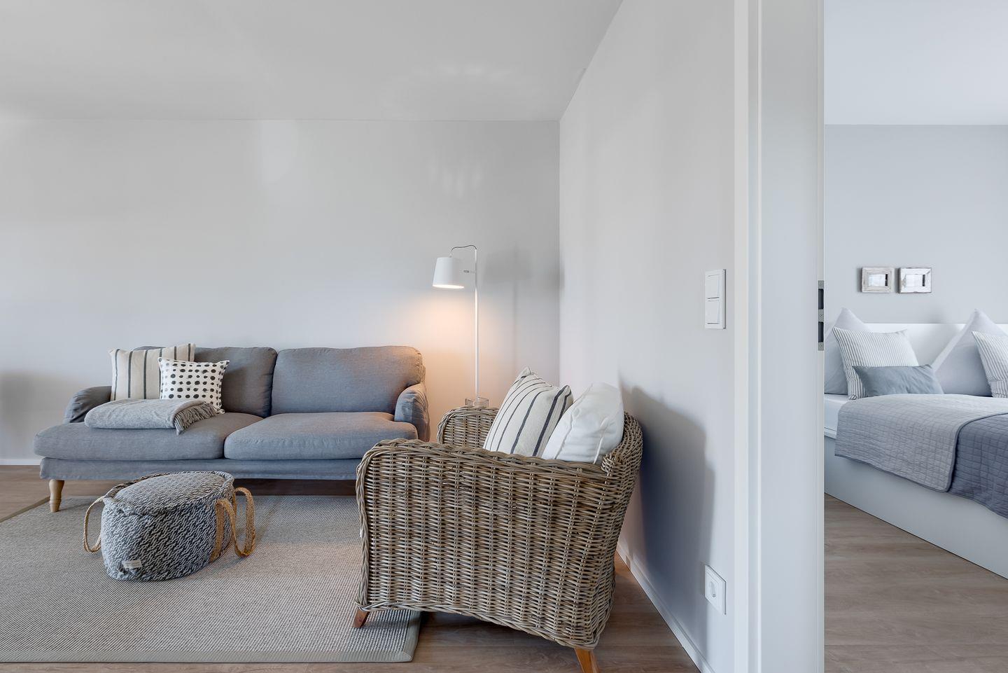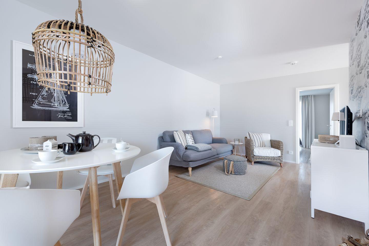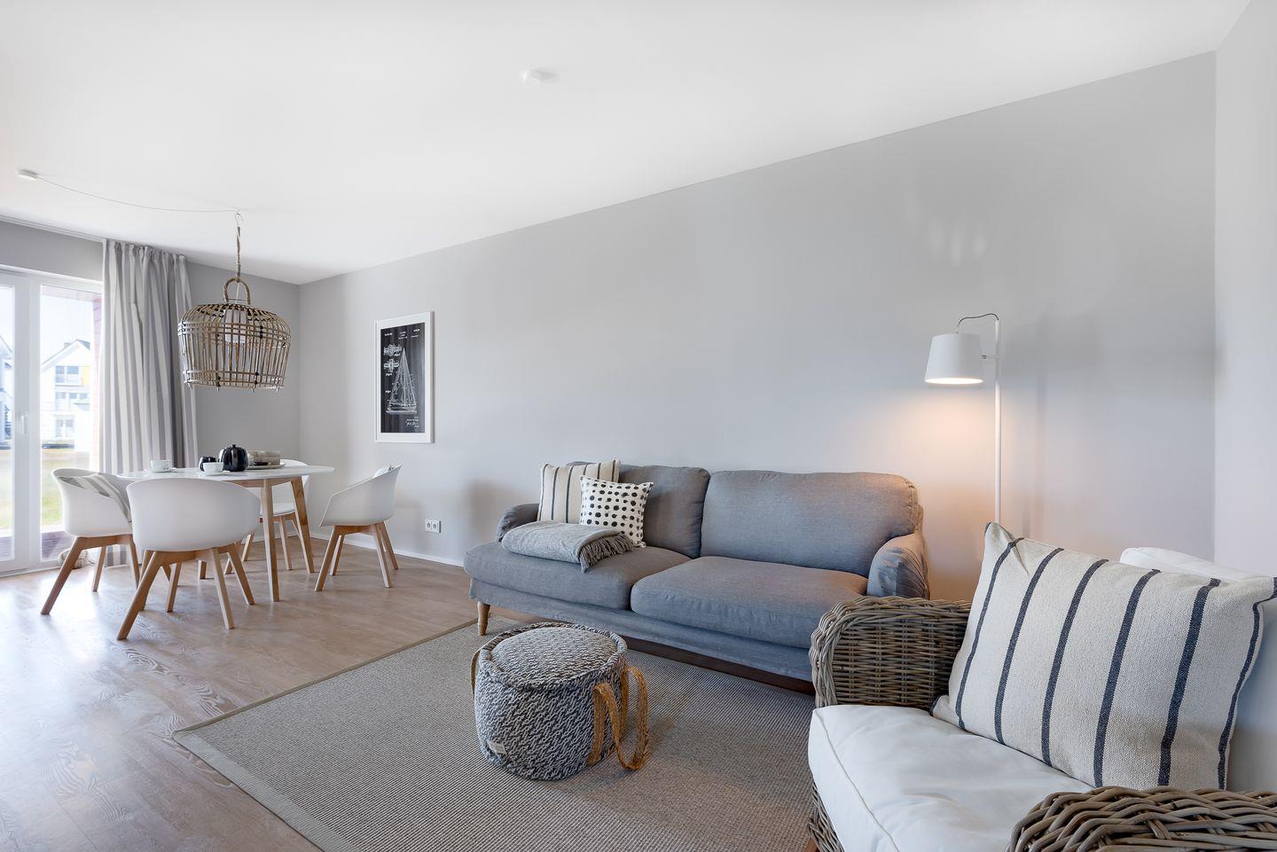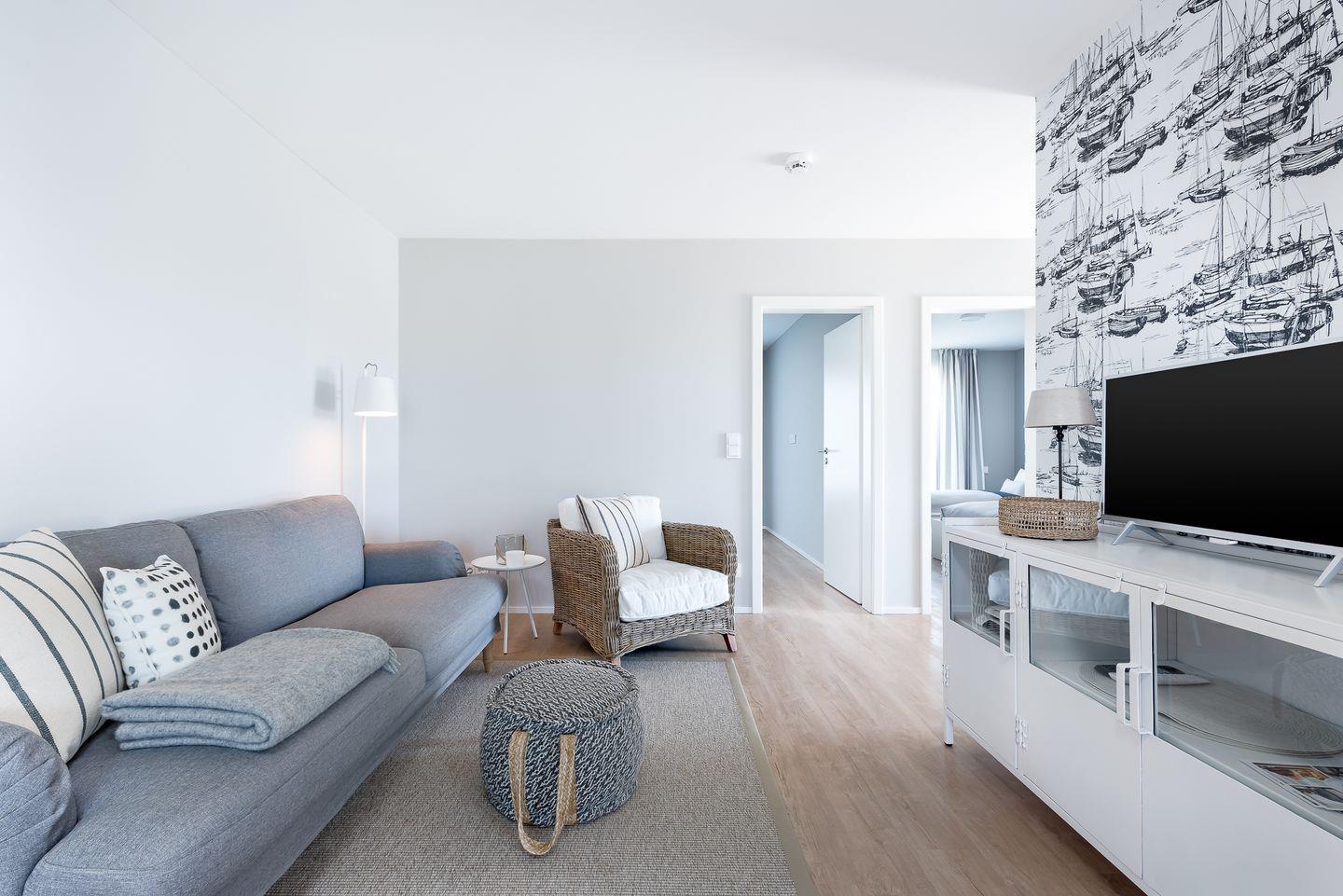 Egal, ob Sie die Sonne genießen oder lange Spaziergänge unternehmen möchten – in der Ferienwohnung "Nis Puk" erleben Sie erholsame und unvergessliche Urlaubstage. Die gemütliche Wohnung liegt nur ca. 600m vom Weidefelder Sandstrand und ist die perfekte Ausgangsbasis für Ihren Urlaub. Auch die Hafenpromenade mit ihren wachsenden Angeboten und die Marina des Ostsee Resorts Olpenitz sind bequem erreichbar. Zwei Sonnenterrassen mit Holzboden, umgeben von einer gepflegten Grünfläche, laden zum Entspannen und Sonnenbaden ein. Der Strandkorb bietet sich ideal für ruhige Lesestunden an oder um einfach die frische Meeresbrise zu genießen. Der Elektro-Grill ermöglicht Ihnen unvergessliche Grillabende zu verbringen. Der lichtdurchflutete Wohn- und Essbereich schafft mit der großen Fensterfronten eine helle und freundliche Atmosphäre. Die moderne, vollständig ausgestattete Küche lässt keine Wünsche offen und bietet neben Mikrowelle und Gefrierfach alles, was Sie für ausgedehnte Kochabende benötigen. Auch bei schlechtem Wetter ist für Abwechslung gesorgt: Ein Glasfaseranschluss und ein Smart TV mit Magenta sorgen für Unterhaltung an Regentagen. Die Ferienwohnung bietet zwei Schlafzimmer. Eines ist mit einem großen Doppelbett (180x200cm) mit getrennten Matratzen und einem Flachbild-Fernseher ausgestattet. Das andere Schlafzimmer verfügt über ein Einzelbett (90x200cm). Zusätzlich befindet sich hier ein Schreibtisch, der das Zimmer auch ideal für diejenigen macht, die während des Urlaubs arbeiten möchten. Beide Schlafzimmer sind jeweils mit einem Kleiderschrank und Verdunkelungsmöglichkeiten ausgestattet. Für Entspannung nach einem Spaziergang am Meer sorgt die Infrarot-Wärmekabine mit integriertem Hifi-Soundsystem. Eine bodentiefe Regendusche rundet das Wellness-Erlebnis ab. Zudem befinden sich im Badezimmer auch ein Handtuchheizkörper, ein kleiner Kosmetikspiegel und ein Föhn. Die Fußbodenheizung sorgt das ganze Jahr über für ein angenehmes Wohnklima. Ein privater PKW-Stellplatz direkt vor dem Haus, sowie ein abschließbarer Fahrradschuppen machen Ihren Aufenthalt noch bequemer.