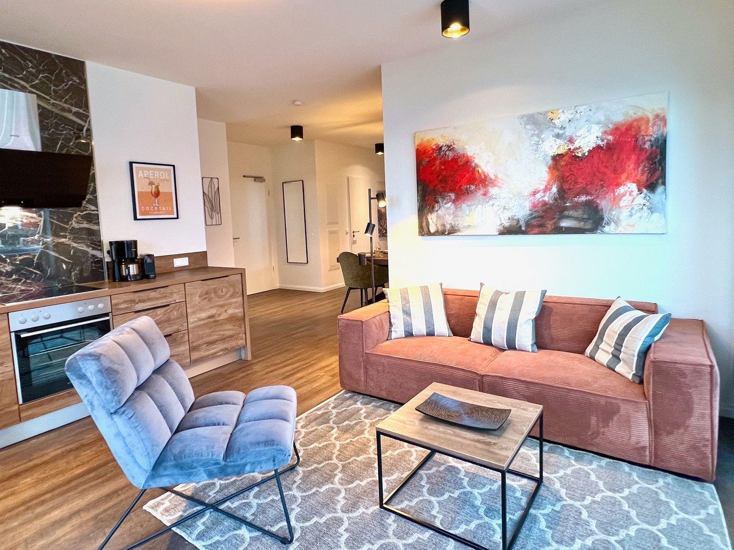 Modernes Penthouse in Olpenitz mit Meerblick, Sauna, Balkon und Tiefgaragenstellplatz für entspannte Ostseeferien.