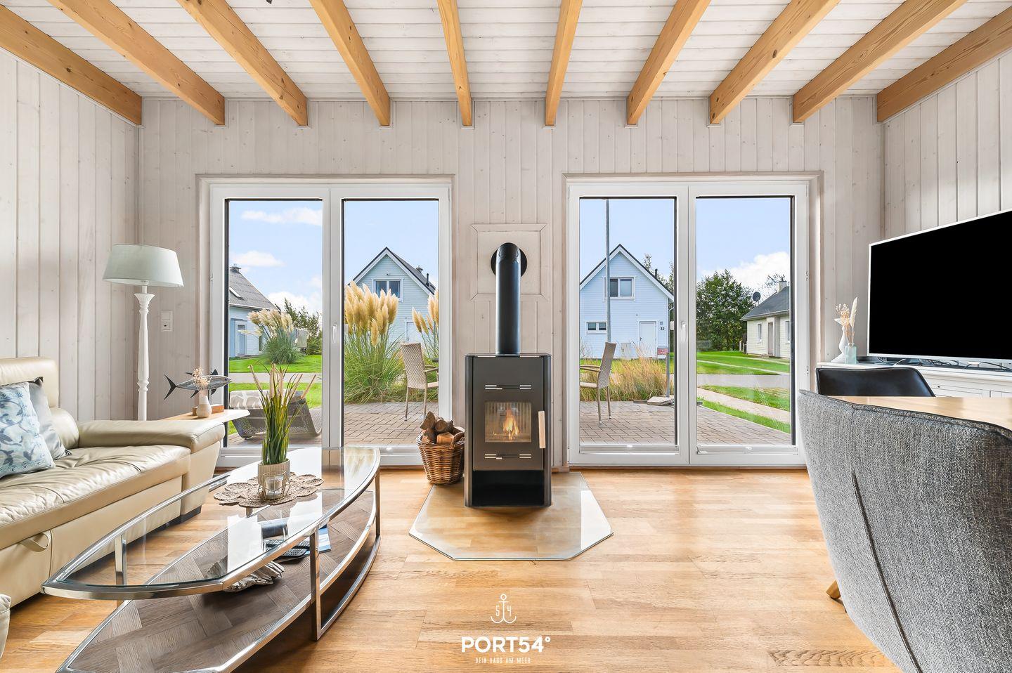 Das Ferienhaus Meeresmuschel bietet 82m² Komfort mit Kamin, Infrarot-Sauna und Terrasse nahe der Ostsee.