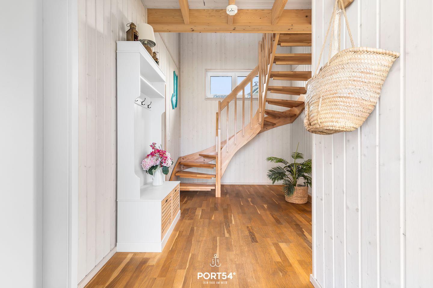 Das Ferienhaus Meeresmuschel bietet auf 82m² einen Rückzugsort in unmittelbarer Nähe zur Ostsee. Der lichtdurchflutete Wohn- und Essbereich mit Kamin und umbaubarem Schlafsofa lädt zum Entspannen ein. Die Küche ist voll ausgestattet. Im Erdgeschoss erwartet Sie ein Badezimmer mit Infrarot-Sauna und ebenerdiger Dusche. Im Obergeschoss befinden sich zwei Schlafzimmer mit Boxspringbetten. Die Terrasse ist ausgestattet mit Outdoor-Möbeln und einem Grill. Ein eigener Parkplatz steht zur Verfügung.