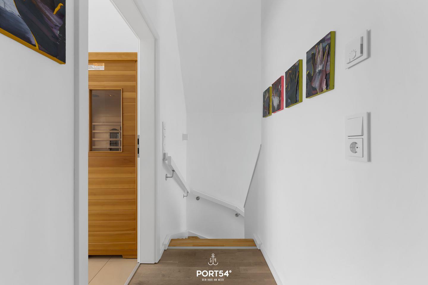 Die Ferienwohnung "Durchblick" bietet auf 97m² Platz für bis zu fünf Personen und liegt in erster Reihe am Wasser. Im ersten Obergeschoss befinden sich eine voll ausgestattete Küche mit Essbereich, ein Balkon mit Hafenblick, ein Duschbad sowie der Wohnbereich mit TV und Kaminofen. Eine Treppe führt in die zwei Schlafzimmer im zweiten Obergeschoss. Highlight ist das Wellnessbad mit Whirlpool und Infrarotkabine. Ein Schlafsofa und ein kostenloser PKW-Stellplatz ergänzen das Angebot.