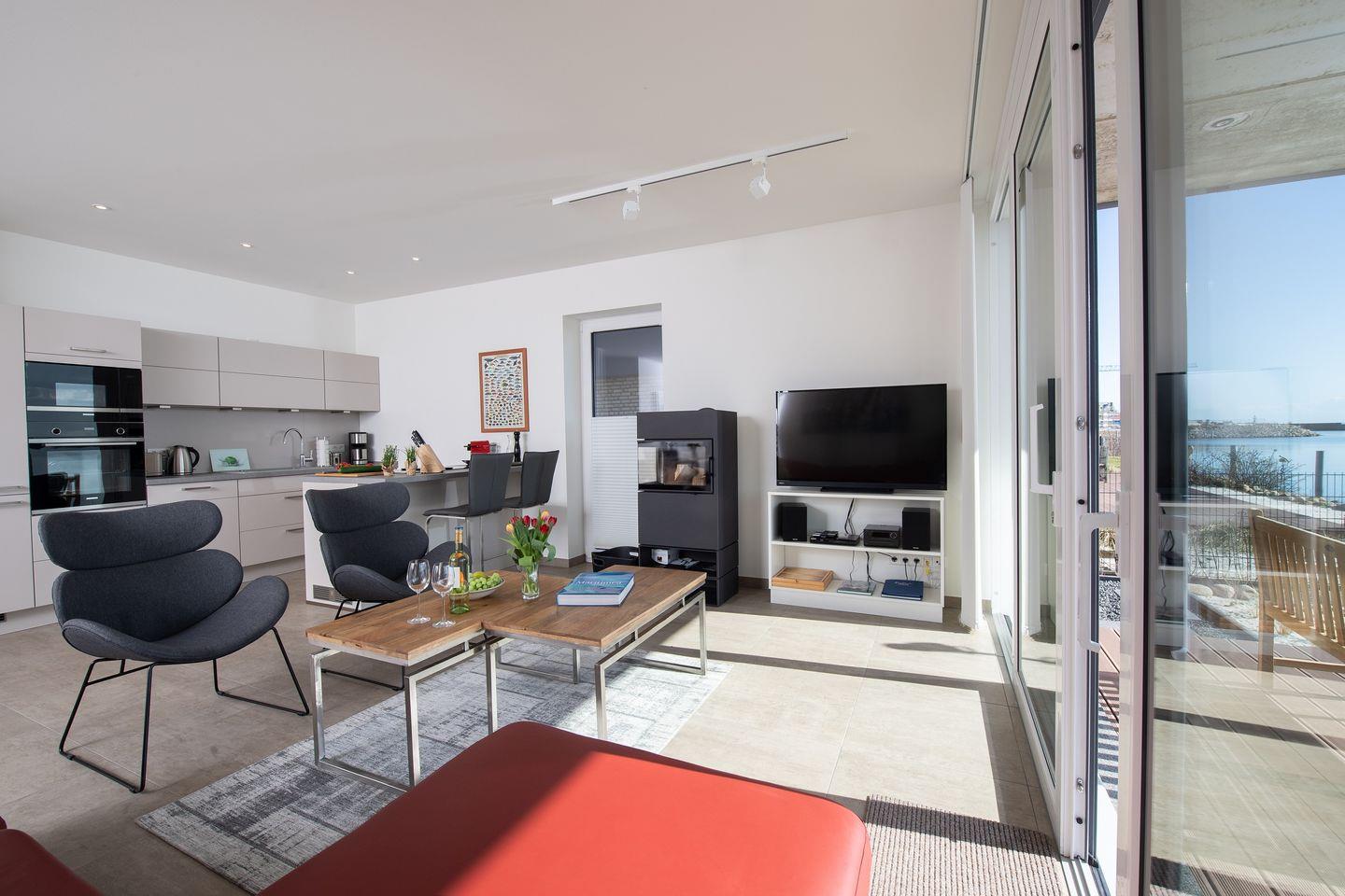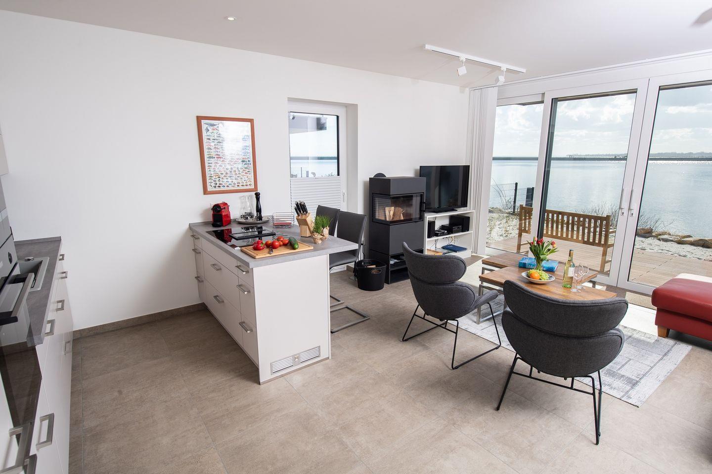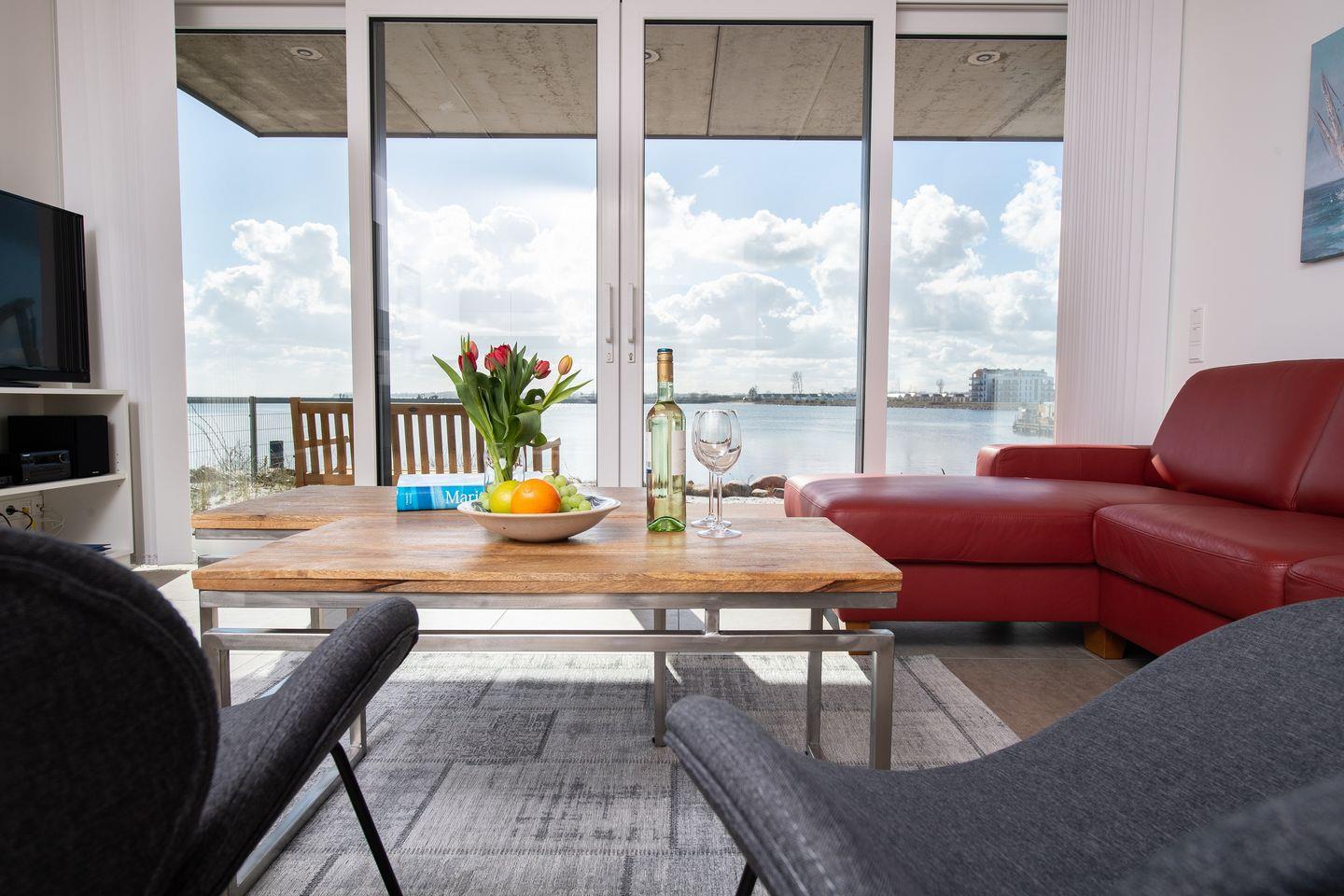 Moderne Ferienwohnung Dock 76 Main in Olpenitz mit Meerblick, Sauna und Strandnähe für eine unvergessliche Auszeit.