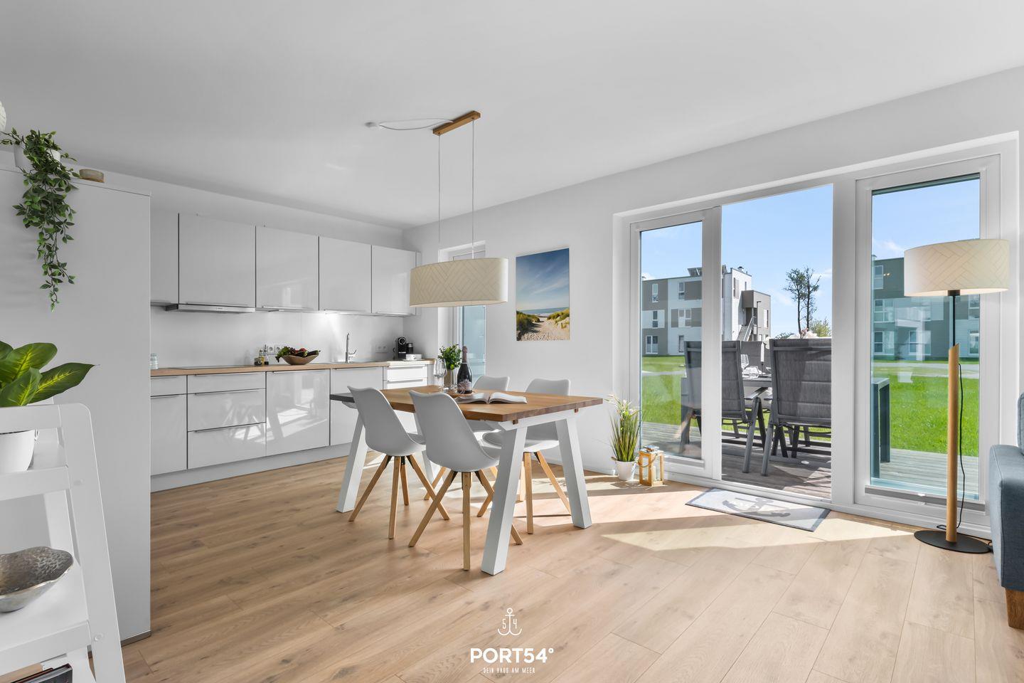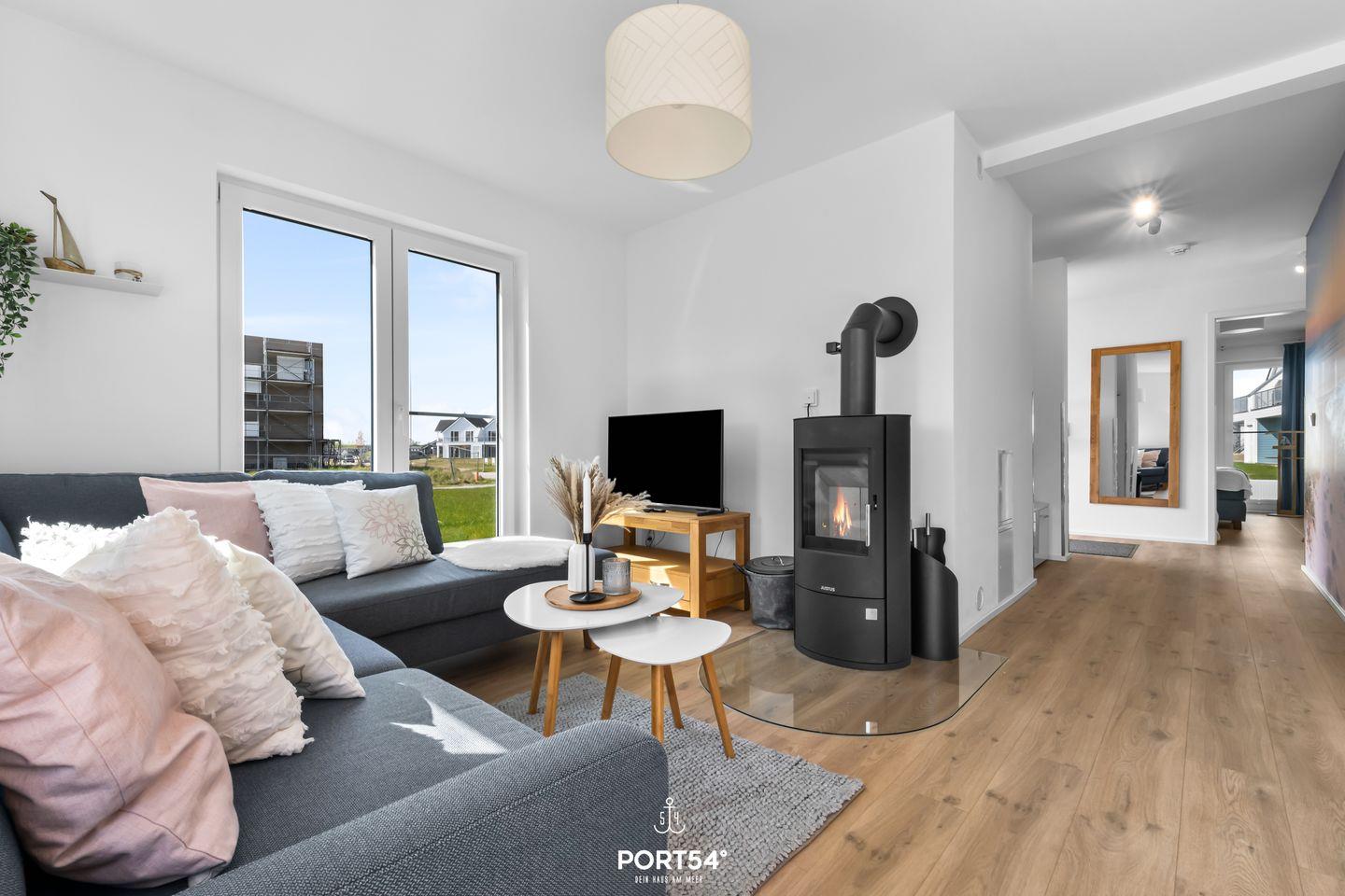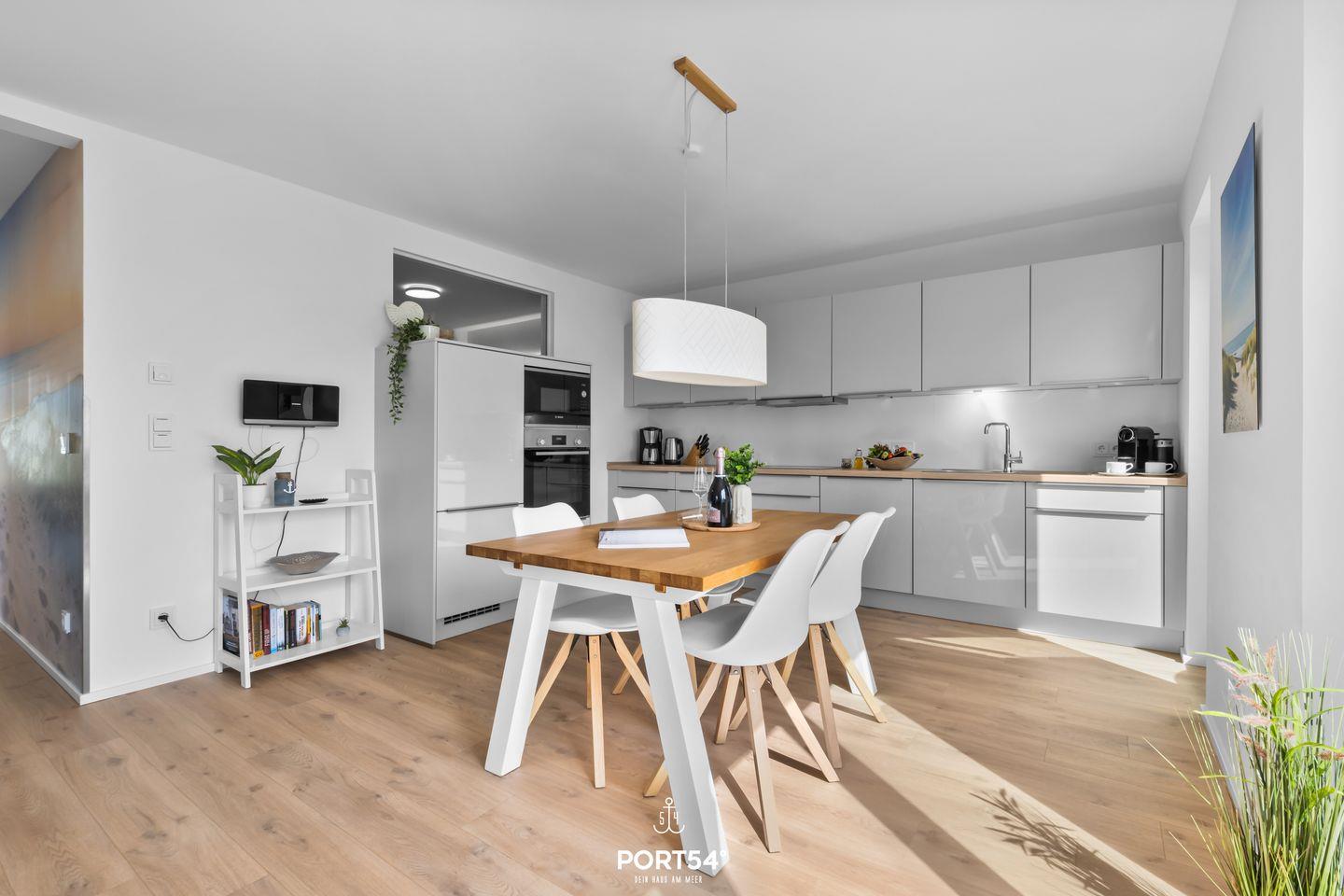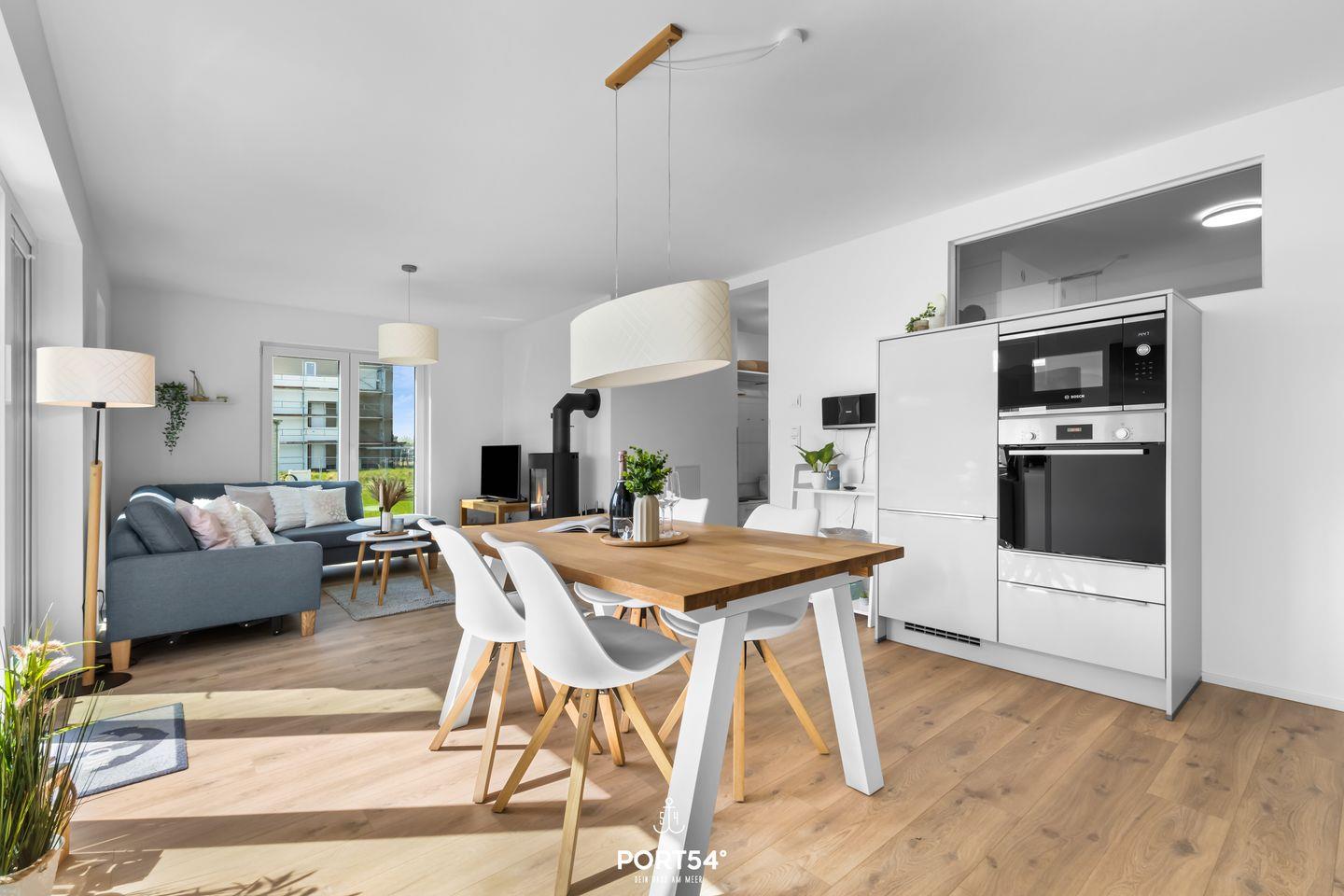 Die Ferienwohnung Mien Leevste in Olpenitz bietet auf ca. 85 m² ein komfortables und modernes Zuhause für bis zu 5 Personen. Sie besticht durch eine durchdachte Raumaufteilung und hochwertige Ausstattung. Der großzügige Wohn- und Essbereich bildet das Herzstück der Wohnung. Hier können Sie nach einem erlebnisreichen Tag entspannen, vor dem Kamin ein gemütliches Feuer genießen und sich in der Sofaecke oder am Essplatz niederlassen. Die vollausgestattete Küche ist ideal für einen gelungenen Kochabend und bietet alles, was man für einen erholsamen Aufenthalt benötigt.
