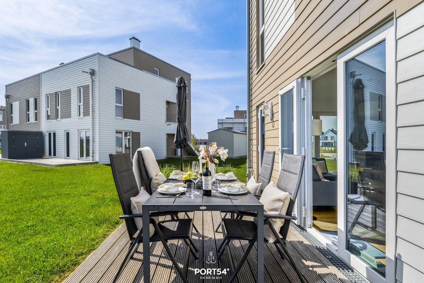 Modernes Ferienhaus Mien Leevste in Olpenitz mit Kamin, Infrarotsauna und Terrasse, ideal für erholsame Urlaubstage.