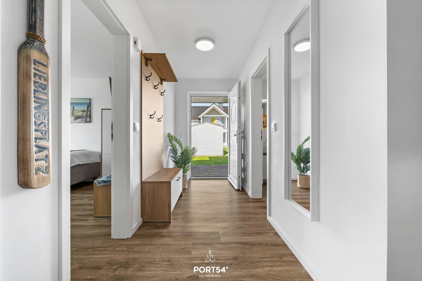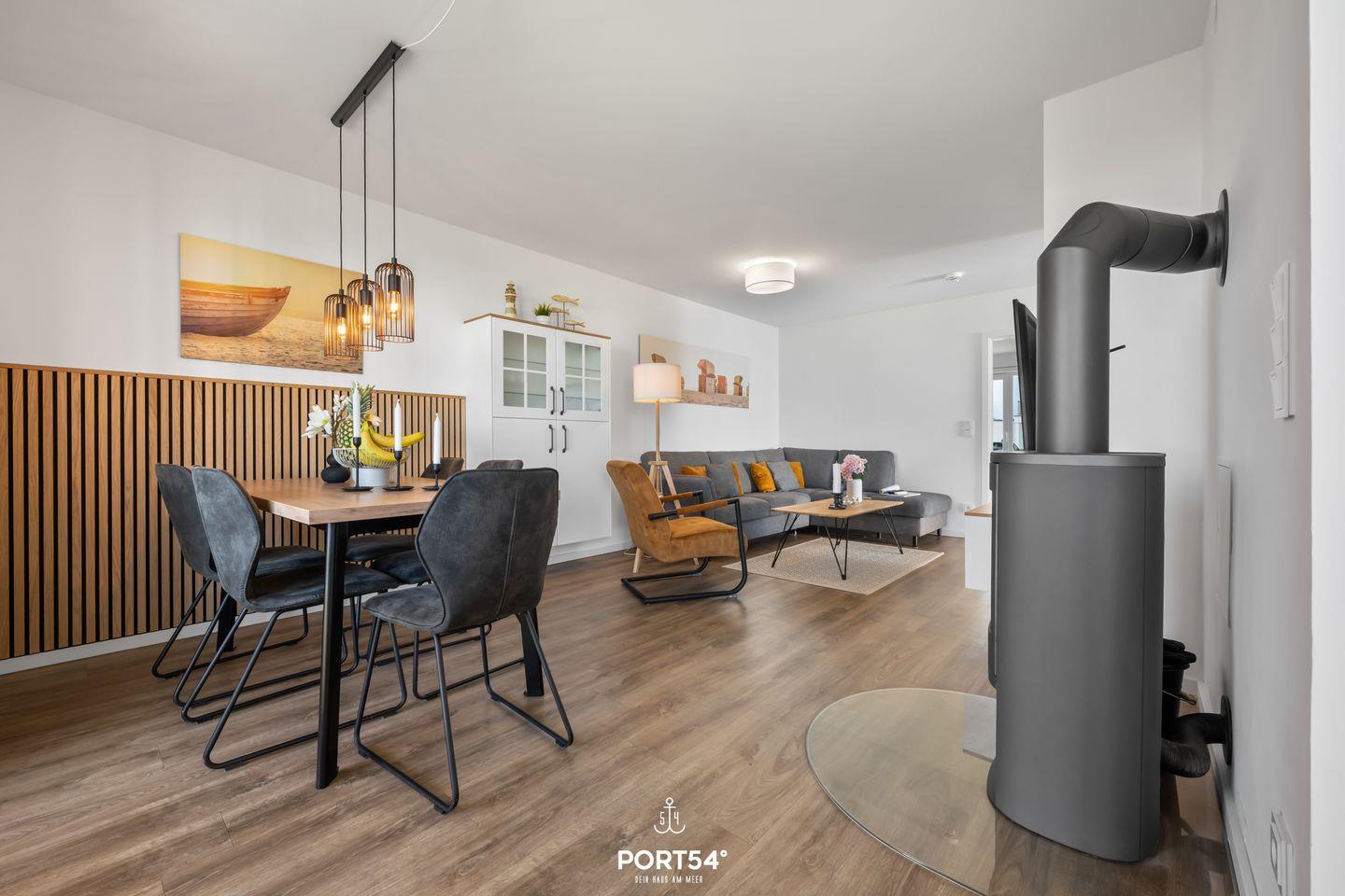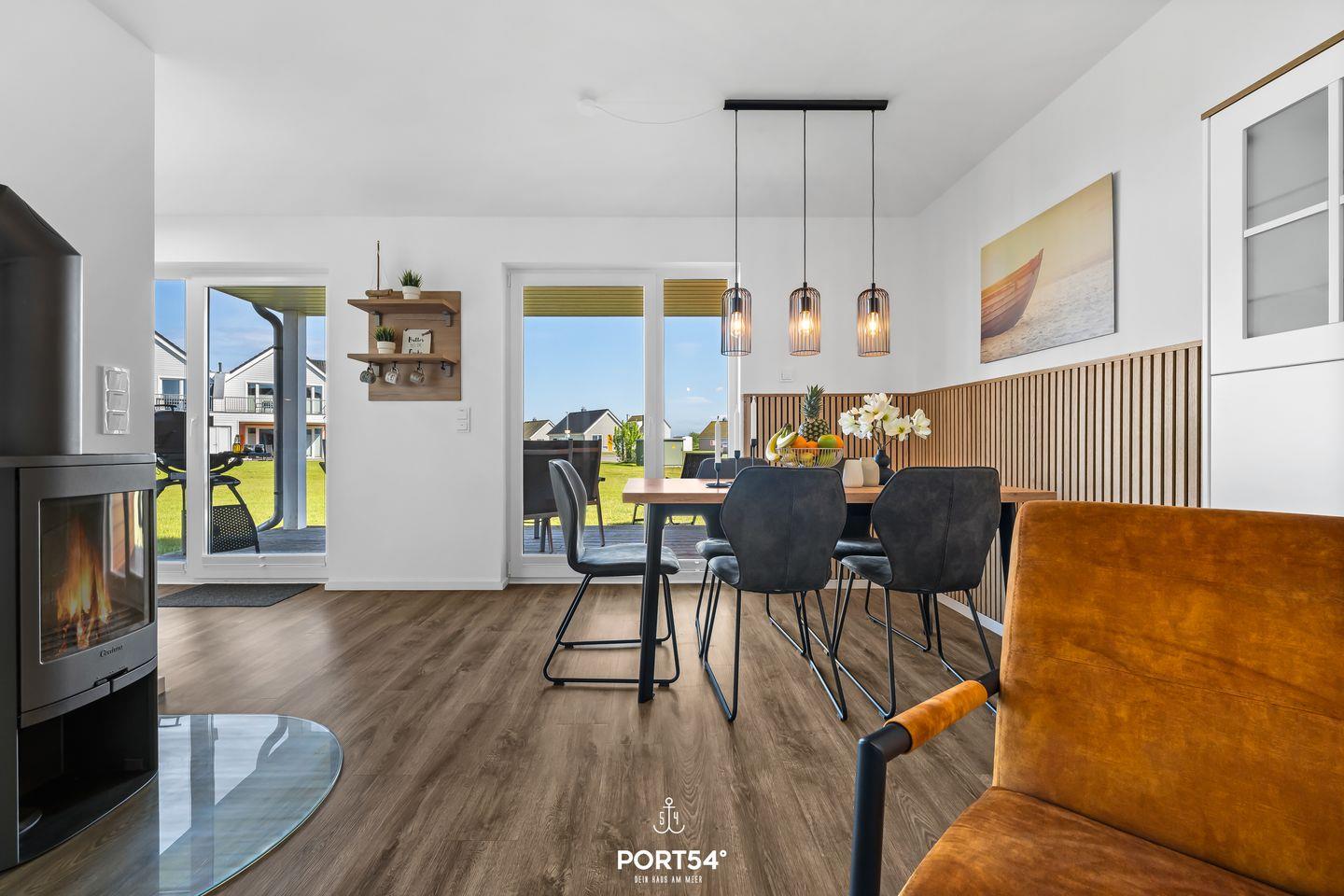 Gemütliche Ferienwohnung Nordisch 54 mit Kamin, Sauna, Terrasse und Meerblick im OstseeResort Olpenitz.